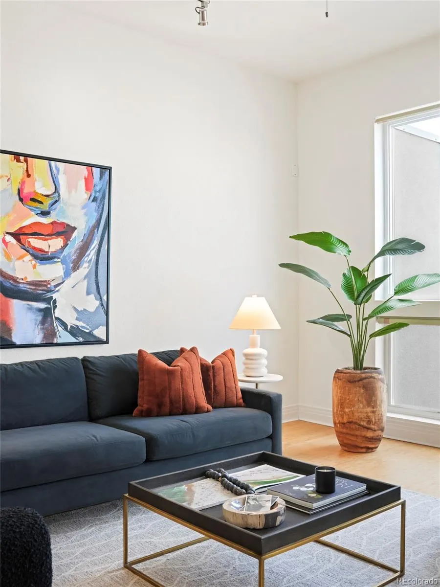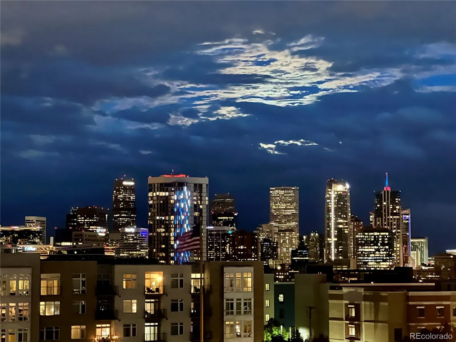 Elevated city living meets modern comfort in this sophisticated LoHi condo, where sweeping downtown views create an unforgettable backdrop. Designed for both style and function, the open-concept floorplan is bathed in streams of natural light from expansive windows and a newly replaced sliding door, leading to a spacious outdoor balcony with a gas fire pit and grill. Inside, the sleek kitchen features stainless steel appliances, a tiled backsplash and a generous center island, flowing seamlessly into a bright living area. The serene bedroom is enhanced with plush carpeting and custom Elfa closets, while the bathroom offers a contemporary walk-in shower. Thoughtful upgrades include new paint, electric window coverings, a built-in workstation and abundant storage with additional space in the one-car attached garage. Residents enjoy the convenience of building amenities including a private dog park and gym, all just moments from LoHi’s vibrant dining, shops, entertainment and nightlife.