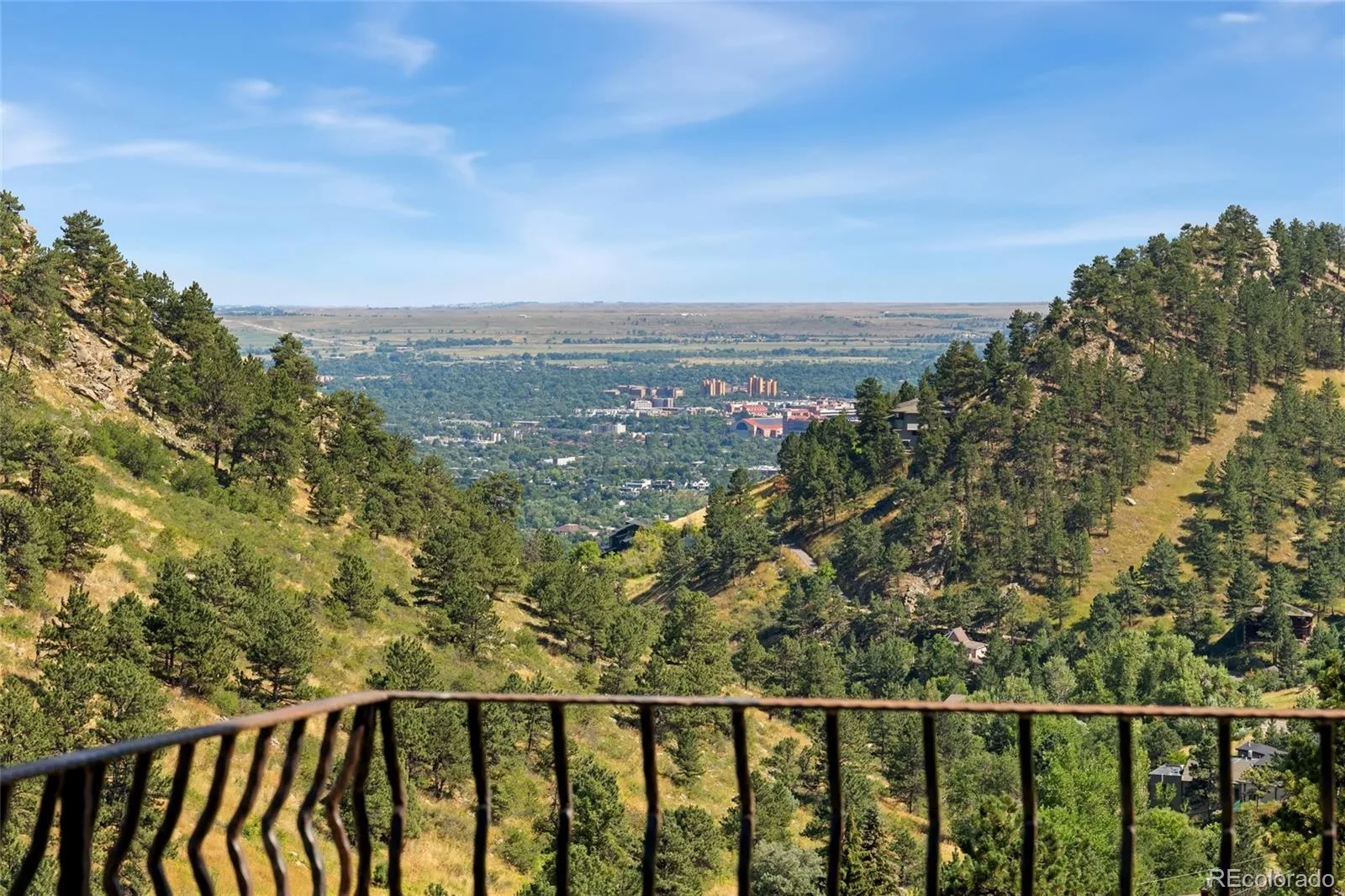 This architectural masterpiece delivers an unparalleled blend of mountain serenity and world-class views on 3 private acres with no neighbors in sight. From the moment you arrive, the setting feels extraordinary, with terraced gardens and an incredible sense of privacy. Step inside to a bright and open sunroom with skylights that fills the entry with natural light, setting the tone for the home’s stunning details throughout. The living room is a showstopper, with soaring ceilings, a wall of windows framing unbeatable vistas, and an airy, open feel that connects seamlessly to the rest of the home. A dramatic staircase anchors the space, adding both architectural interest and a sense of grandeur. Hardwood floors, exposed wooden beams, and thoughtful finishes bring warmth to the expansive interior. The remodeled kitchen is a chef’s dream, featuring Viking appliances, sleek cabinetry, and an intuitive layout that makes both everyday living and entertaining effortless. Upstairs, you’ll find two bedrooms, including a primary suite with vaulted ceiling, private balcony with incredible views, walk-in closet with built-ins, and an adjoining bathroom with a separate soaking tub and step-in shower. The additional bedroom also has a walk-in closet and access to the bathroom. Two spacious secondary bedrooms are located on the main floor, while the walk-out lower level offers a versatile flex room with a bathroom and steam shower, a climate-controlled wine room perfect for intimate gatherings, and a cozy family room for movie nights. Expansive decks and beautifully designed outdoor spaces create an ideal setting for relaxation, entertaining, and connecting with nature. This private retreat offers complete seclusion while being less than 10 minutes from the shops, dining, and culture that make Boulder one of the most sought-after places to live.