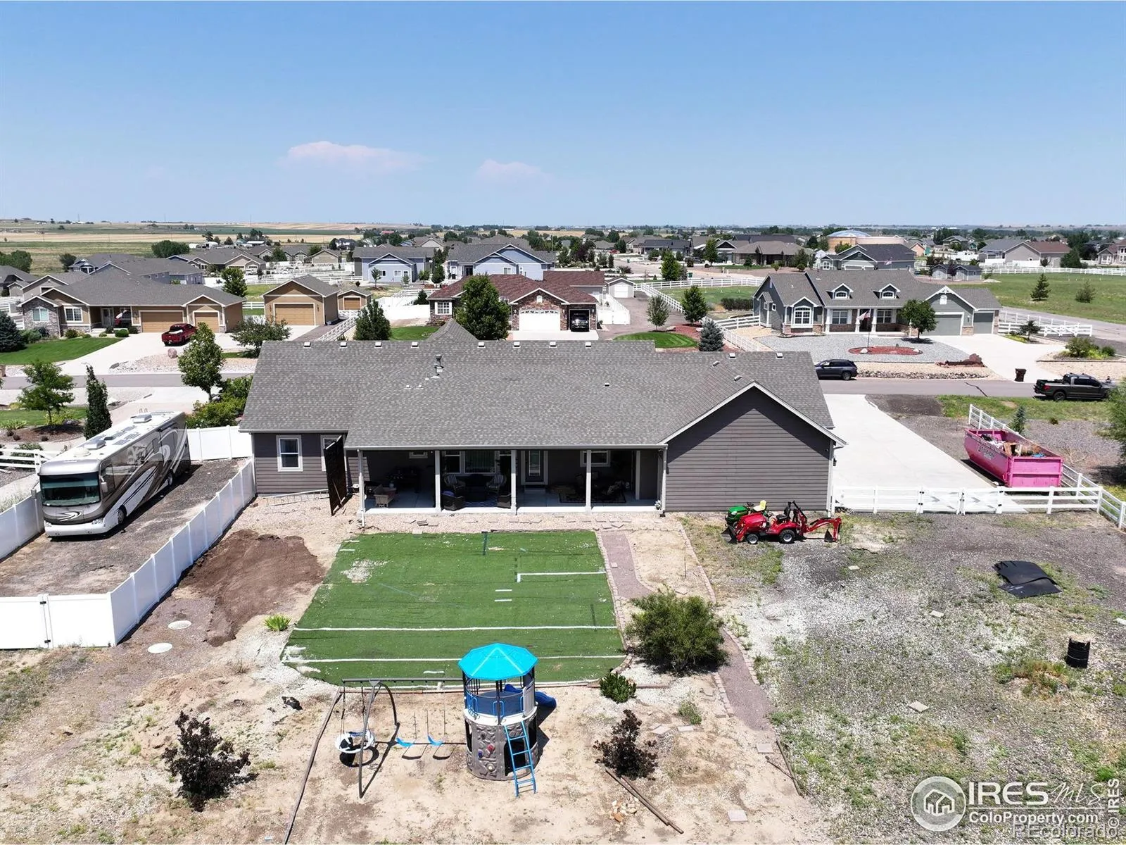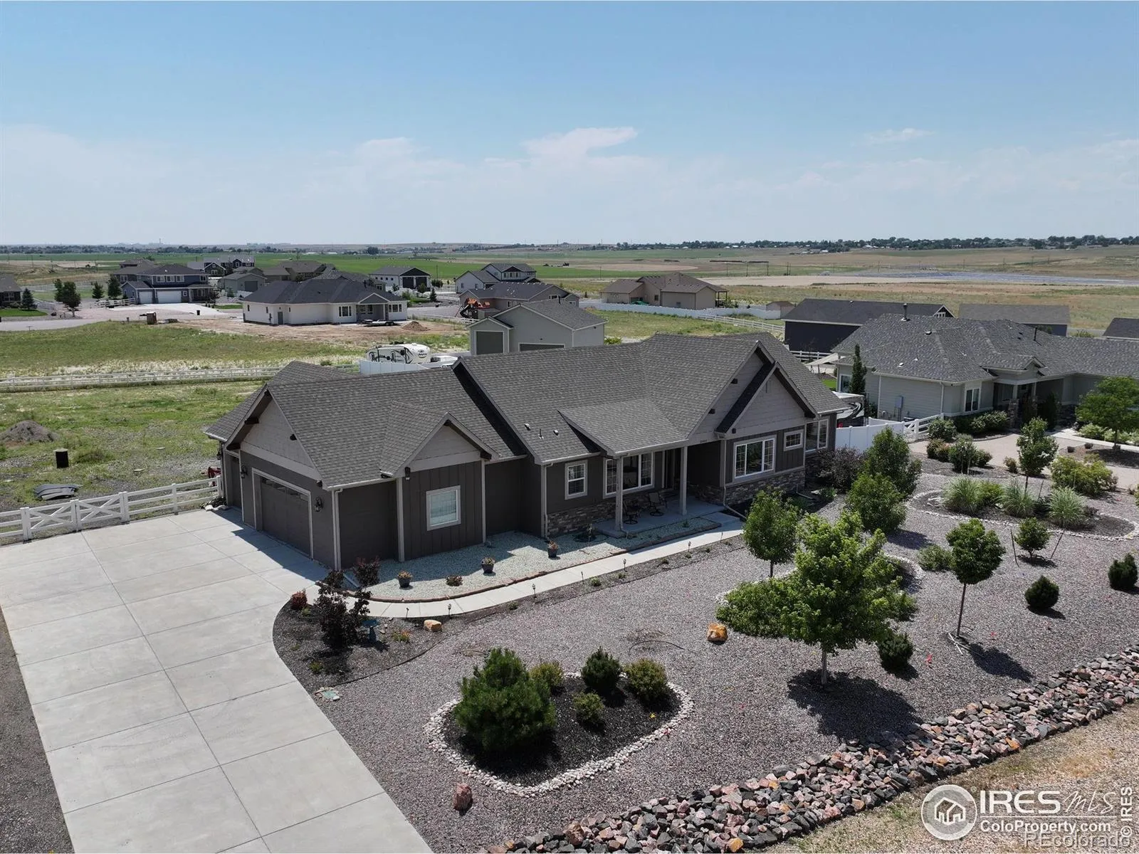 Box Elder Creek stunning ranch-style home nestled on a sprawling acre! As you step inside, natural light floods the great floor plan!! Elegant entry way! Entertaining with a spacious living room, Custom stone gas fireplace, T & G Cathedral ceiling, open & bright! Custom design kitchen is a chef’s dream…large center island, sleek quartz countertops, 42″ cabinetry, soft close drawers/cabinets, large pantry and Stainless steel appliances! Retreat to your main floor primary suite, featuring a spacious walk-in closet and a luxurious 4-piece bath complete with a stunning walk-in shower! 2nd & 3rd Bedrooms have a custom walk-in shower/bath combo w/ jacuzzi features! Farmhouse mudroom! Large laundry room! Beyond the main floor, the unfinished basement presents endless possibilities, offering an abundance of extra living space that doubles the home’s square footage! Step outside with views off the back patio, turf grass, covered patio overlooking the vast acre-lot with a ton of potential! RV Corral per HOA guidelines! New Roof! This front yards professionally xeriscaped landscaping! Quick & easy access to Hwy 76 & 85.. minutes to DIA, Barr Lake & Restaurants! This property is Move in ready!
