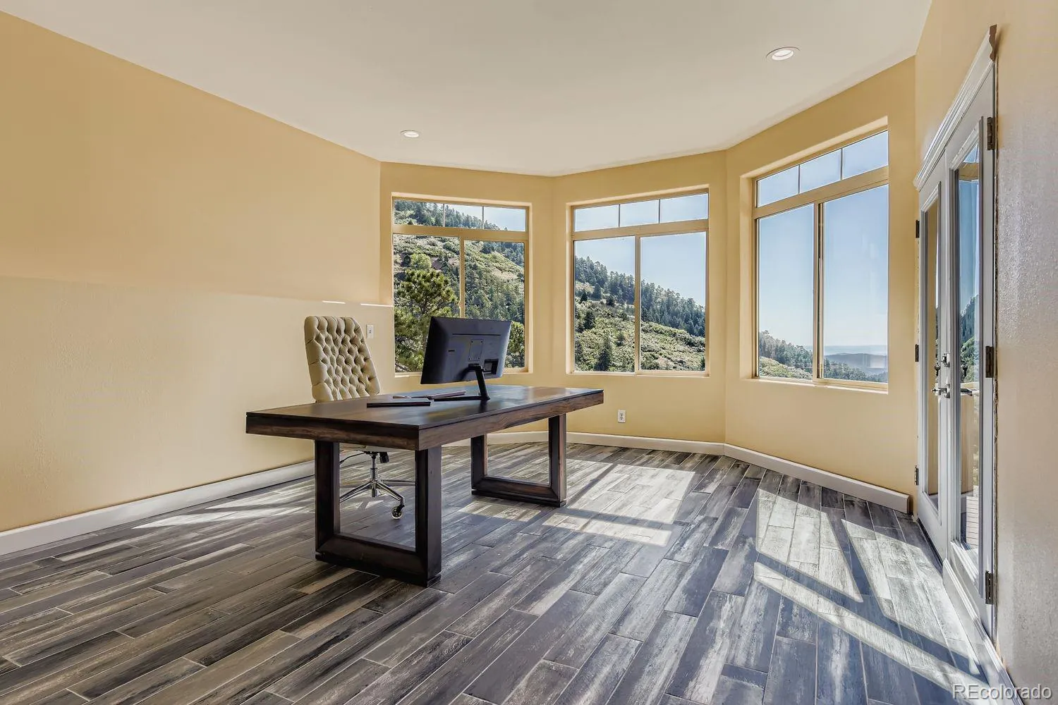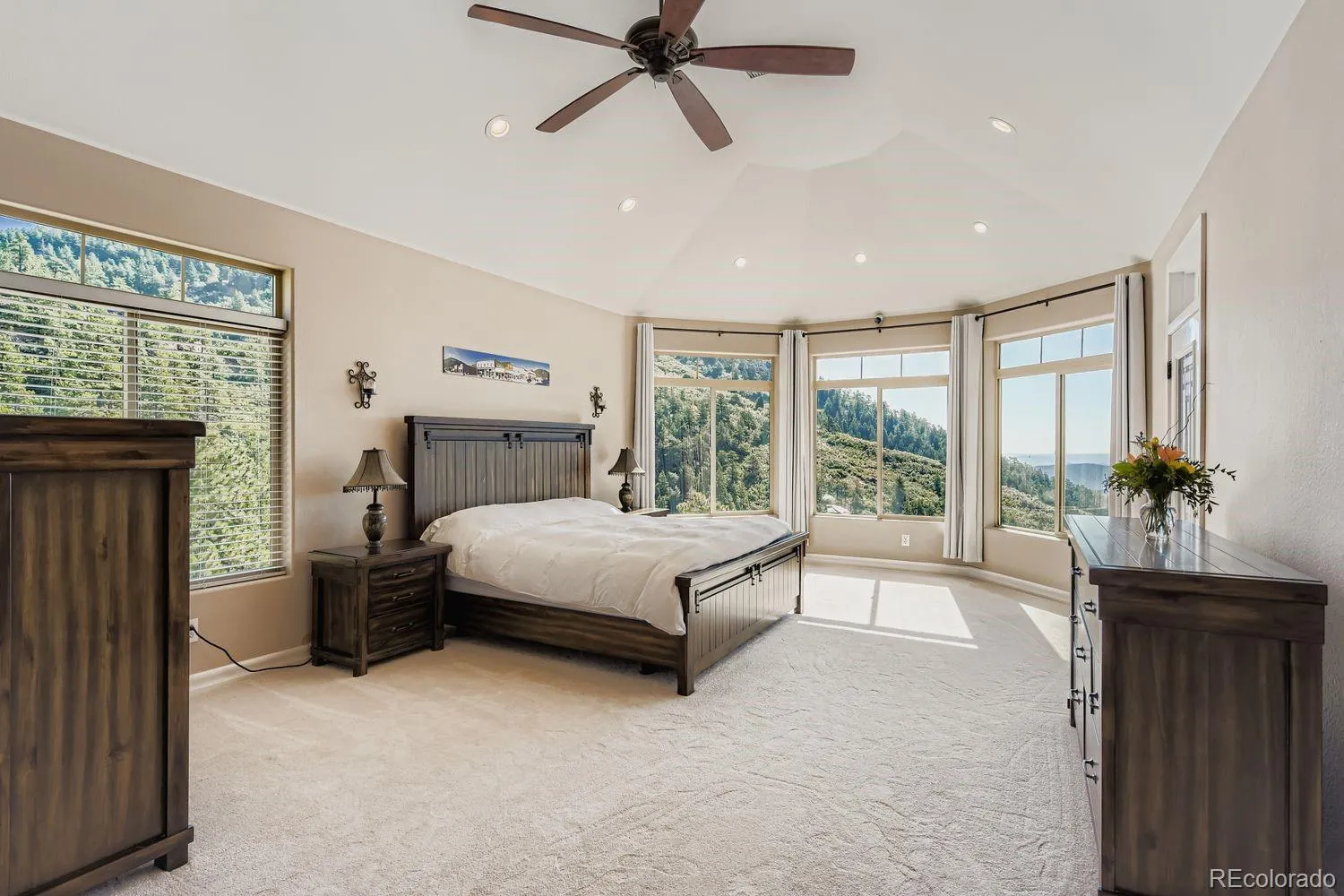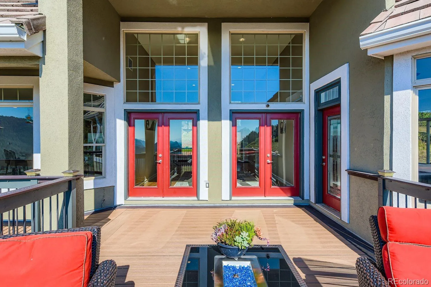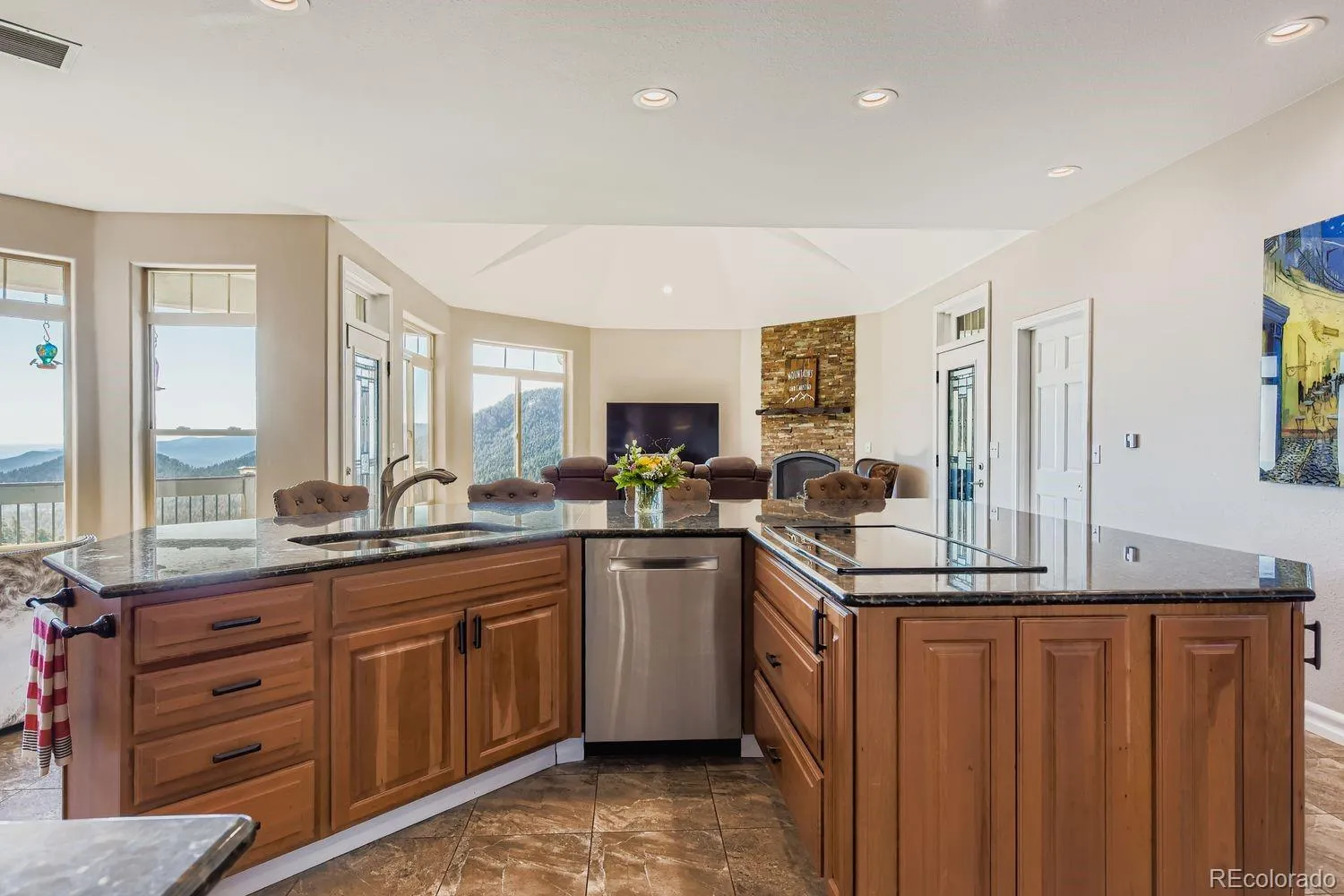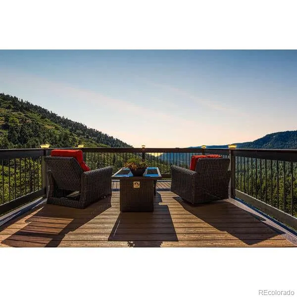 Move-in ready, beautifully updated, and exceptionally private—this mountain contemporary sits on 5.7 secluded acres with sweeping Front Range and valley views. Fresh exterior paint, a long-lasting concrete tile roof, newer high-efficiency gas boiler, updated kitchens and baths, air conditioning, and Starlink high-speed internet make this home truly turn-key. The gated drive leads to a stunning ranch-style design with main-level living and a full walk-out lower level. Inside, soaring ceilings, walls of windows, and sun-filled open spaces frame the natural beauty surrounding the home. The kitchen is a centerpiece with a large granite island, cherry cabinetry, stainless appliances, and effortless flow into the hearth room and out to the view deck for grilling or sunset dining. The main-floor primary suite is a serene retreat with a spa-like bath featuring heated floors, jetted tub, granite vanities, and direct deck access. Two additional en-suite bedrooms plus a powder bath complete the main level. The expansive walk-out level offers tall ceilings, a large rec room perfect for theater, gym, or billiards, and a guest suite with its own private patio. Enjoy an oversized 3-car garage, RV parking, wired generator capability, and no HOA. Peaceful, secluded, and surrounded by nature—yet minutes to Deer Creek Canyon trails, Chatfield Reservoir, and C-470. A rare blend of privacy, beauty, and effortless living—this one is a must-see.