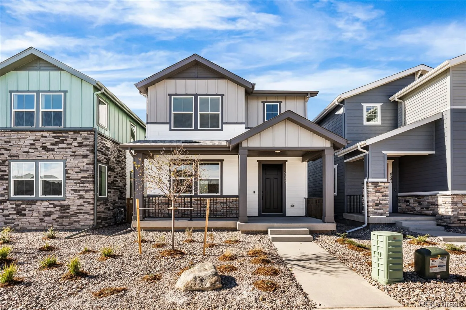 Pulte Homes is proud to present this lovely two-story home in Aurora’s premier neighborhood, Painted Prairie! The Rowen floorplan has a room for everyone! The Rowen is our largest plan in Painted Prairie and hosts a main floor bedroom and ¾ bath, great for guests or family. The Gathering room is spacious and offers a fireplace for those cozy evenings in! The kitchen hosts a gas range, a refrigerator and flows perfectly into the café space, which is large enough for everyday or formal dining! The patio offers an outdoor retreat. Upstairs, a large loft provides additional living space or home office space. The laundry room is located upstairs for added convenience. The primary suite has dual sinks, a shower enclosure, and a large walk-in closet. The two additional bedrooms upstairs share a large full bath and both host walk-in closets! Landscaping and fencing are taken care of in this low maintenance community. Painted Prairie is full of parks and walking trails and the community hosts neighborhood events daily! Enjoy easy access to Denver and DIA with main arterials located just down the street! Ready this fall, you can be in before the holidays!