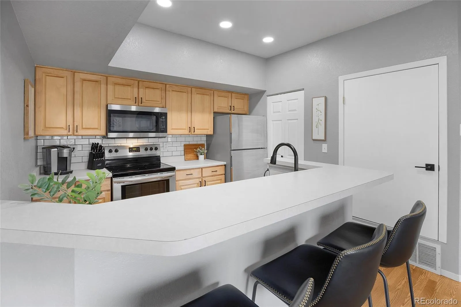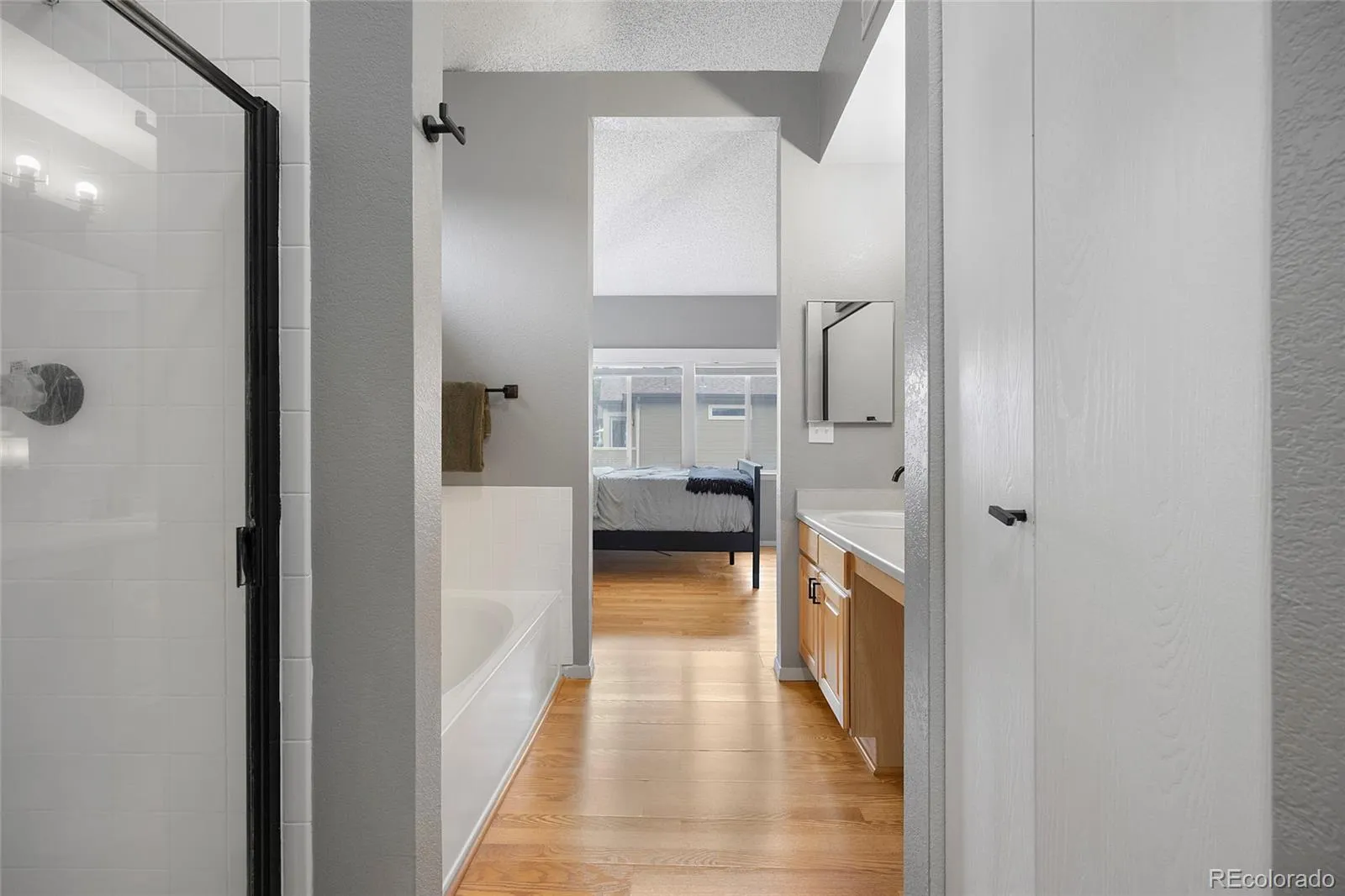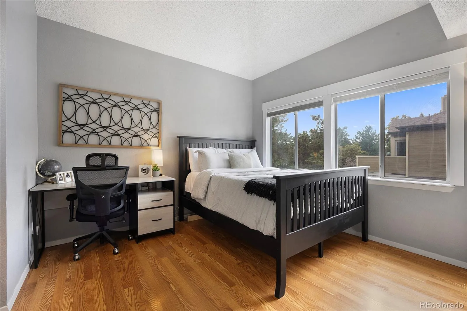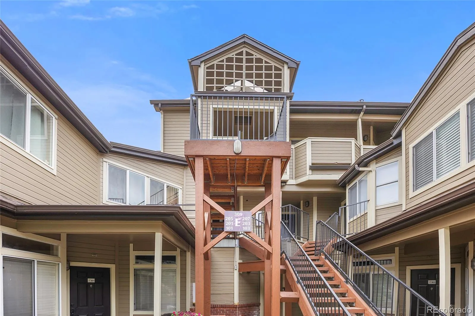 PRICE IMPROVEMENT! Welcome to this beautifully updated end unit, 2 story, 2 bed, 2 bath condo that lives like a townhouse in highly sought after Greenwood Village near the DTC! Freshly painted w/ updates, this home features a spacious, light-filled floor plan designed for comfort and style. As you enter from the new tiled foyer, your are welcomed by the spacious family room with newly stoned gas fireplace, coat closet & newer recessed lighting. The dining area, accented with a new pendant light, flows to a large covered balcony—perfect for morning coffee, al fresco dining, or relaxing outdoors. Wood inspired laminate flooring flows throughout the entire home & beautiful new tile has been added to the bathroom water closets. As you make your way to the kitchen you will notice the spacious eat at breakfast bar, adding extra seating and a great space for entertaining. The kitchen features updated stainless steel appliances, new lighting, stylish new door pulls, shelved kitchen pantry & convenient laundry room. A standout feature of this home are the two primary bedroom suites; one on the main level & one upstairs with vaulted ceilings (upper bedroom suite includes a separate entrance–perfect for roommate). Both bedroom suites feature walk in closets, linen closets, soaking tubs, showers, new faucets, new shower heads, & new mirrors. Enjoy having your own 1 car attached garage that includes a large storage closet. The attached garage is accessible from the stairs that lead you to the main floor. Guest parking is available throughout the community. Community amenities include a clubhouse, gym, swimming pool, and hot tub. HOA dues include trash, snow removal, exterior maintenance, water and grounds maintenance. Located in the Award winning Cherry Creek School District! Near DTC, dining, shopping, 2 blocks to light rail, and I-25/Orchard Rd access just down the street! Don’t miss this beautifully updated and move-in-ready home.