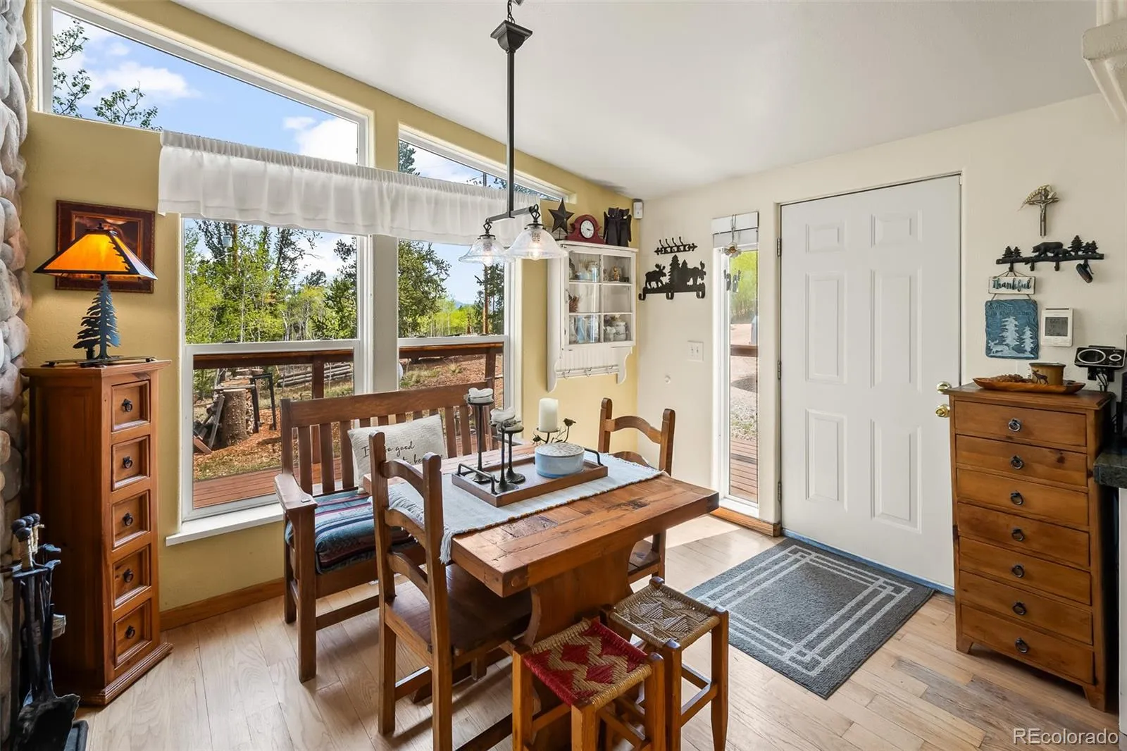 VIEWS, VIEWS, VIEWS!! Nestled On A Majestic 7 Acres W/ Huge Continental Divide Views, This Home Is Ready For Full Time Living Or A Turnkey Second Home! Hardwood Floors & HUGE Views Out The Back Slider Greet You As You Walk Through The Front Door. Kitchen/Dining/Living Room Offers Open Living Concept, Perfect For Entertaining. Cozy Up By The Wood Burning Fireplace Or Enjoy A Cup Of Coffee Or Glass Of Wine At The Kitchen Island W/ Seating. Kitchen Includes White Cabinets, Granite Tile Counters, Gas Stove & Stainless Steel Appliances. Walk Down The Hall To The Primary Bedroom W/ Attached 4 Piece Bathroom & Walk In Closet. Wake Up Every Morning W/ Views Of The Mountains & Access To The Back Deck From The Primary Bedroom! A Second Bedroom, ¾ Hall Bath & Main Floor Washer/Dryer Complete The Main Floor. Head Downstairs To The 3rd Bedroom W/ Walk In Closet, Still Having Views Of Aspens & Pines! Basement Includes A Small Sitting Area Which Could Be A Great Office Or Card Room & The 3rd Bathroom (¾ Bath). Wait, There’s More…An Attached Finished 2 Car Garage & Shed W/ Electricity, Great For Workshop. Enjoy Sunsets & Watch/Hear The Humming Birds Fly By From Your Deck. All Of This 1.5 Hrs From Denver Or Colo. Springs, 1 Hr From Breckenridge, 30-40 Mins To World Class Fishing At 11 Mile, Spinney & Tarryall Reservoirs, As Well As The Renowned Dream Stream. All Roads Maintained By The County, So Enjoy All Year Long! Hurry Before It’s Too Late!!! Well Pump Replaced 2019, Roof, Sliding Glass Doors, Exterior Paint & Deck Refinished All 2024!! All That’s Left To Do Is Move In & Enjoy Colorado Summers.