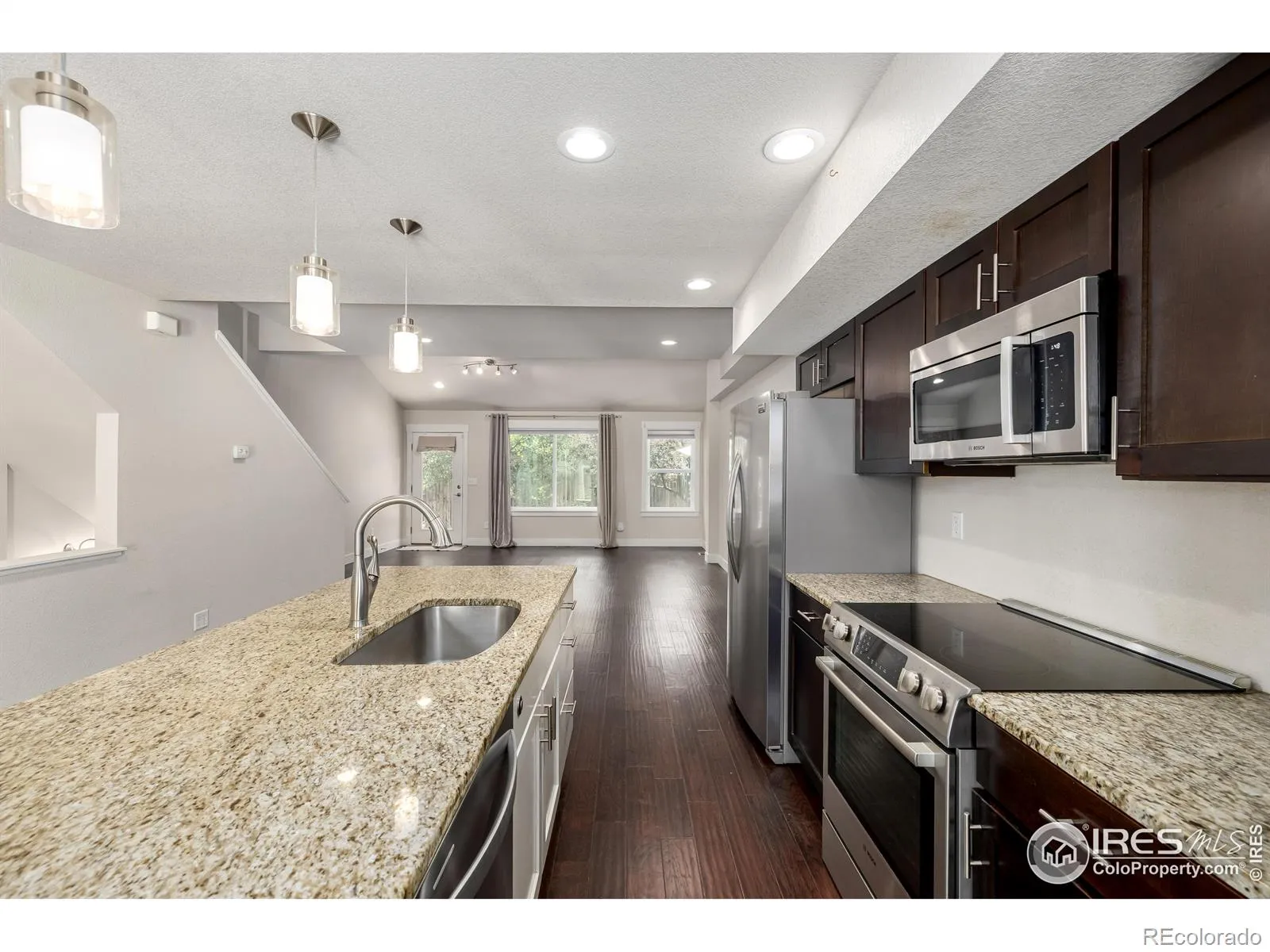 Location and lifestyle converge beautifully in this turnkey townhome, set just two blocks from Main Street in Longmont and three blocks from Roosevelt Community Park. With dining, shopping, and community life right outside the door, this residence blends convenience with comfort in a setting that feels both welcoming and accessible. Inside, thoughtful design and abundant natural light define the open floor plan. Warm wood flooring, brand new carpet, neutral tones, and expansive windows create a bright and inviting atmosphere that feels immediately at ease. The kitchen is designed for both function and flow, featuring stainless steel appliances, granite counters, recessed lighting, a pantry, and a prep island with seating that makes everyday meals simple and social. The dining and living areas connect seamlessly, offering sensible space for gathering while maintaining a relaxed energy throughout the home. Upstairs, the primary suite is airy and inviting, with vaulted ceilings, a generous walk-in closet, and a private ensuite bath with a glass-enclosed shower. A second-story balcony extends the living space outdoors, offering a quiet perch for morning coffee or evening reflection. Additional bedrooms and a finished basement provide flexible living options, with a spacious family room that opens to the secured lower-level private patio-an ideal low-maintenance space. Practical conveniences, including an included washer and dryer, add ease to daily routines, while the low-maintenance design makes this home a sensible choice for both full-time living and lock-and-leave simplicity. With its prime location near the heart of Longmont’s vibrant downtown and its thoughtful interior flow, this townhome offers a lifestyle defined by connection, comfort, and convenience.