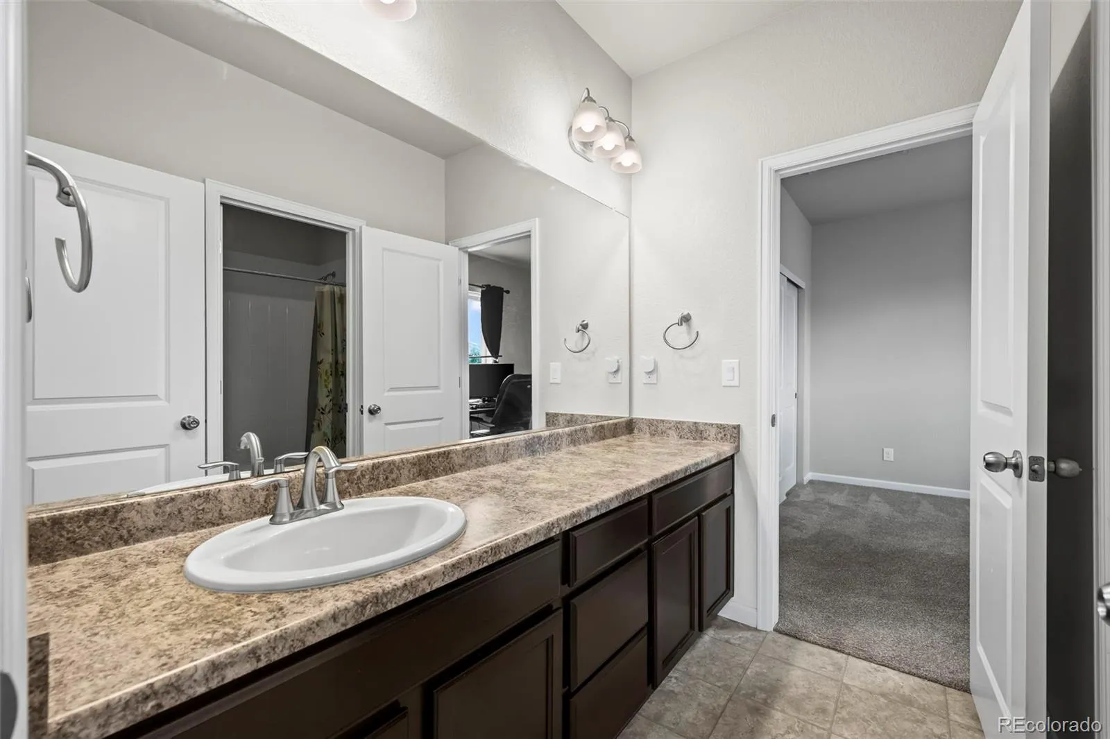 Upstairs you’ll find a large loft, a primary suite, two additional bedrooms that include a Jack-and-Jill setup, and a conveniently located laundry room. Outside the backyard backs to a walking path, is fully fenced, landscaped, provides a grass area, garden beds, and a covered patio perfect for outdoor living. Enjoy community amenities including a park, trails, pool, clubhouse, and fitness center for year-round recreation and convenience.
