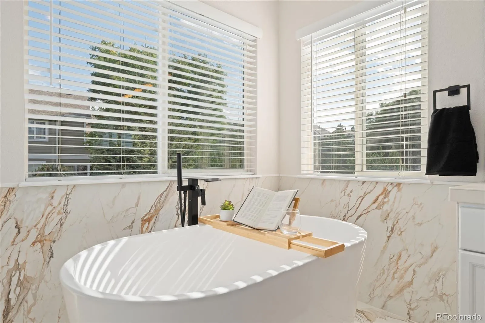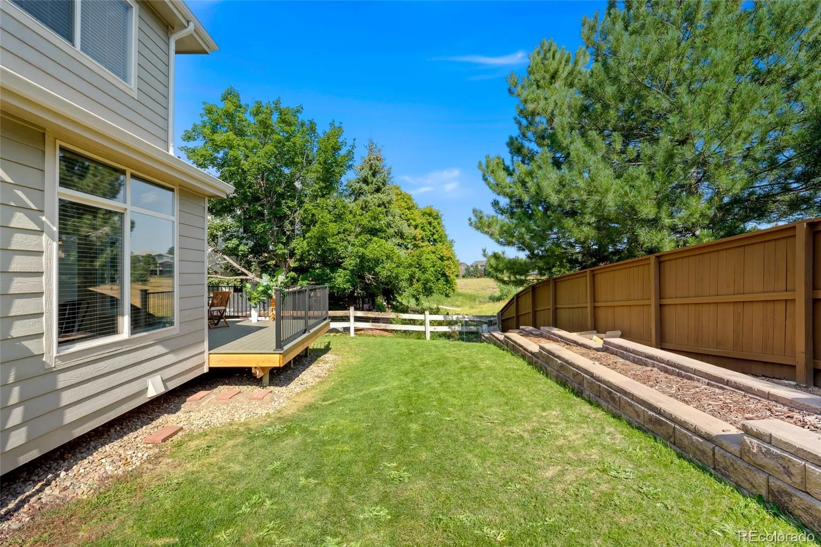 Welcome to this stunning completely redone home in the heart of Highlands Ranch, a quiet community surrounded by trails, greenbelts, and beautiful landscaping. With fresh updates inside and out, this move-in ready home perfectly blends modern style, functionality, and comfort. Step inside to an open main living area where soaring vaulted ceilings and large windows fill the formal living and dining rooms with natural light. The kitchen has been fully updated with quartz countertops, new dovetail soft-close cabinetry, stone backsplash, a coffee bar, new Whirlpool gas oven/range, extended island with seating, and stainless steel appliances. The eat-in kitchen opens to a sunny new deck for seamless indoor-outdoor living. A warm family room with gas fireplace and stacked stone accent wall sits just off the kitchen, while a dedicated office with a second fireplace, half bath, and garage access complete the main floor. Upstairs, the spacious primary suite features vaulted ceilings, a huge walk-in closet, and a luxurious 5-piece bath with a stand-alone soaking tub, Italian tile, and dual vanities. Two additional bedrooms and a beautifully updated full bath provide plenty of space. The finished basement offers a large living area with a wet bar, a conforming bedroom, and a ¾ bath, perfect for guests or entertaining. The backyard is a peaceful retreat with a lush lawn, mature trees, and a brand-new deck with rails and steps. Recent upgrades (July–Sept. 2025) include new gutters and downspouts, interior and exterior paint, new gutters, mudjacked walkway/driveway, new kitchen and bathroom fixtures, new door hardware throughout, repaired sprinklers, cleaned HVAC/ductwork, new window screens, and more. Enjoy the amazing Highlands Ranch lifestyle with nearby trails, parks, shopping, and dining just minutes away. This home is truly spectacular—inside and out!
