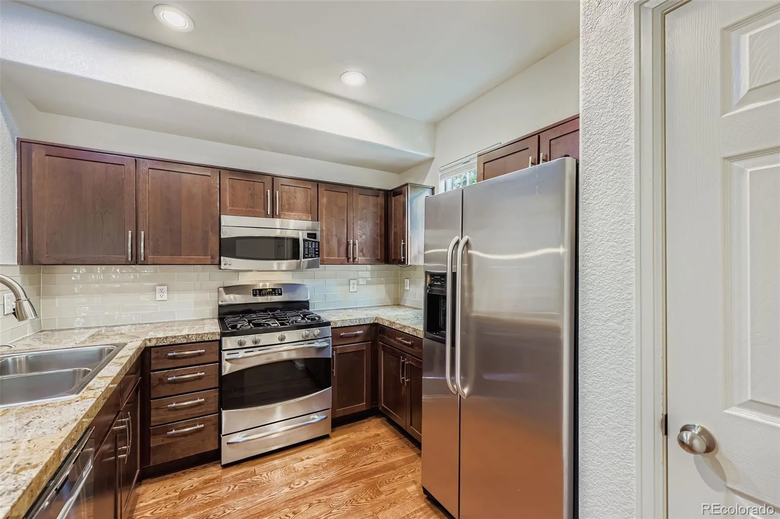 Fabulous 2-story contemporary townhome in desirable Creekside! This 2-bedroom 3-bath END unit comes turnkey ready boasting an open floor plan, stainless steel appliances, granite countertops, wood floors, wet bar, gas range 8 ft ceilings, large vaulted primary suite with 5 piece master bath. Newer improvements include dishwasher, sink faucet, furnace, AC in 2024, tankless hot water heater 2023! Oversized 2 car garage,shady tree-lined, fenced front porch deck/patio area for your landscaping desires. Roof replaced by HOA in 2024. Warrantable. Walking distance to Old Town, Erie Rec Center and the up and coming Erie town center which will boast a variety of walkable business centers, retail, small grocer, civic space. See https://erieco.gov/1428/Town-Center.