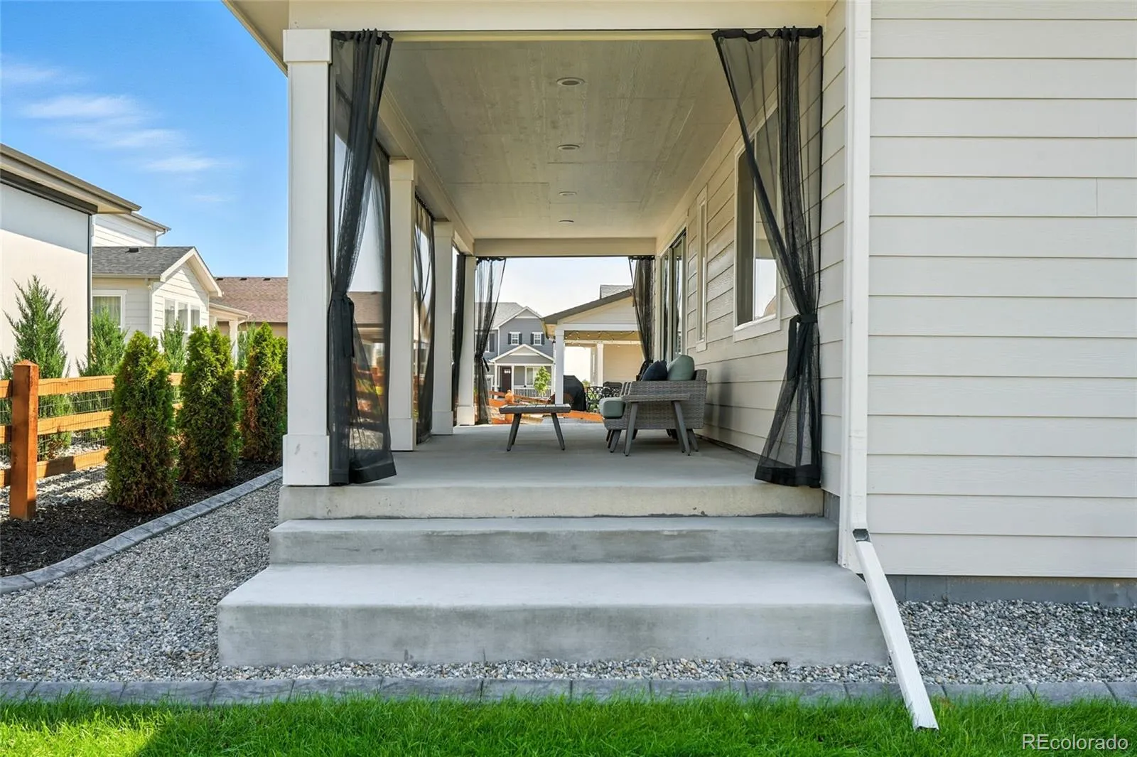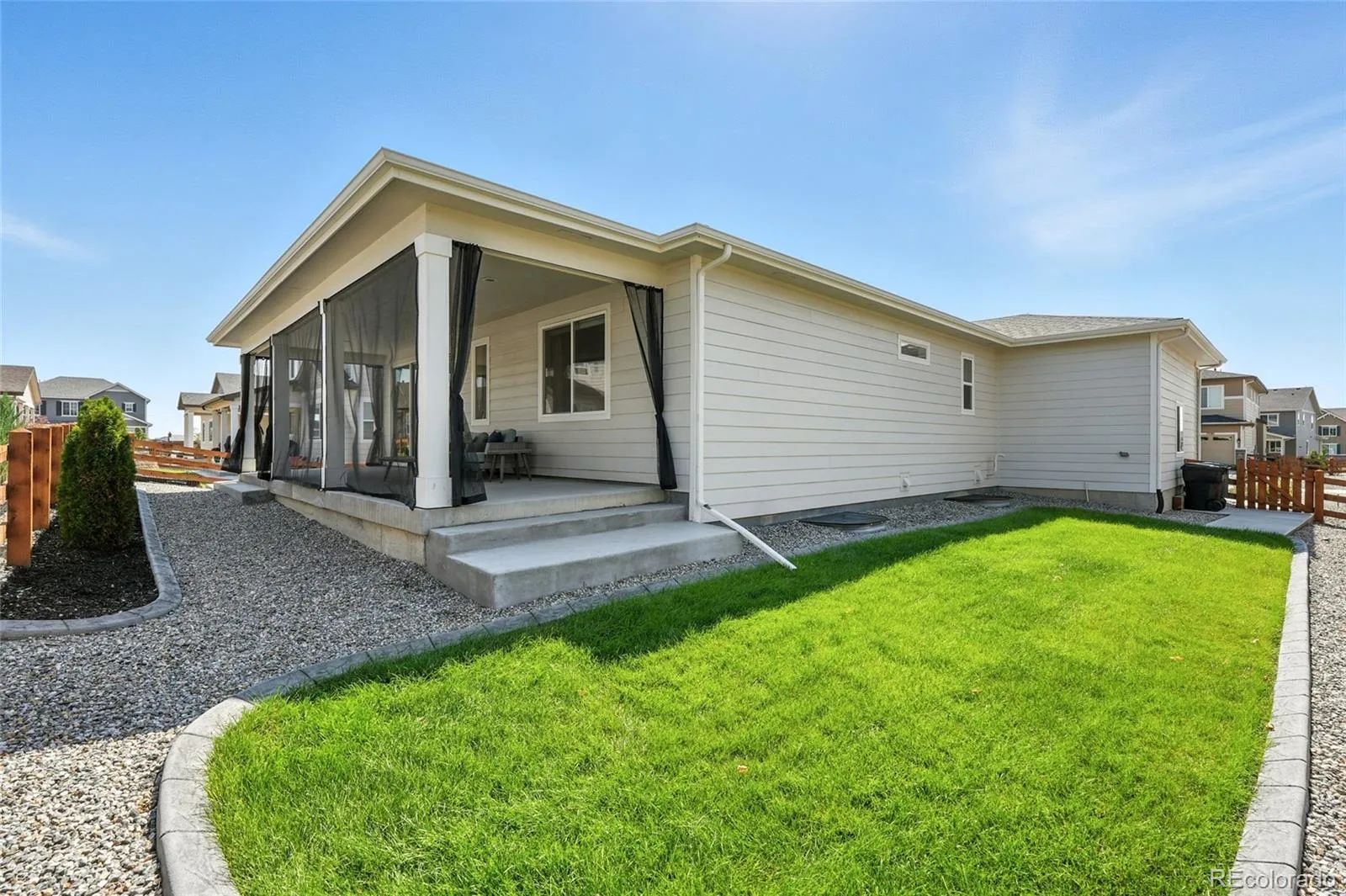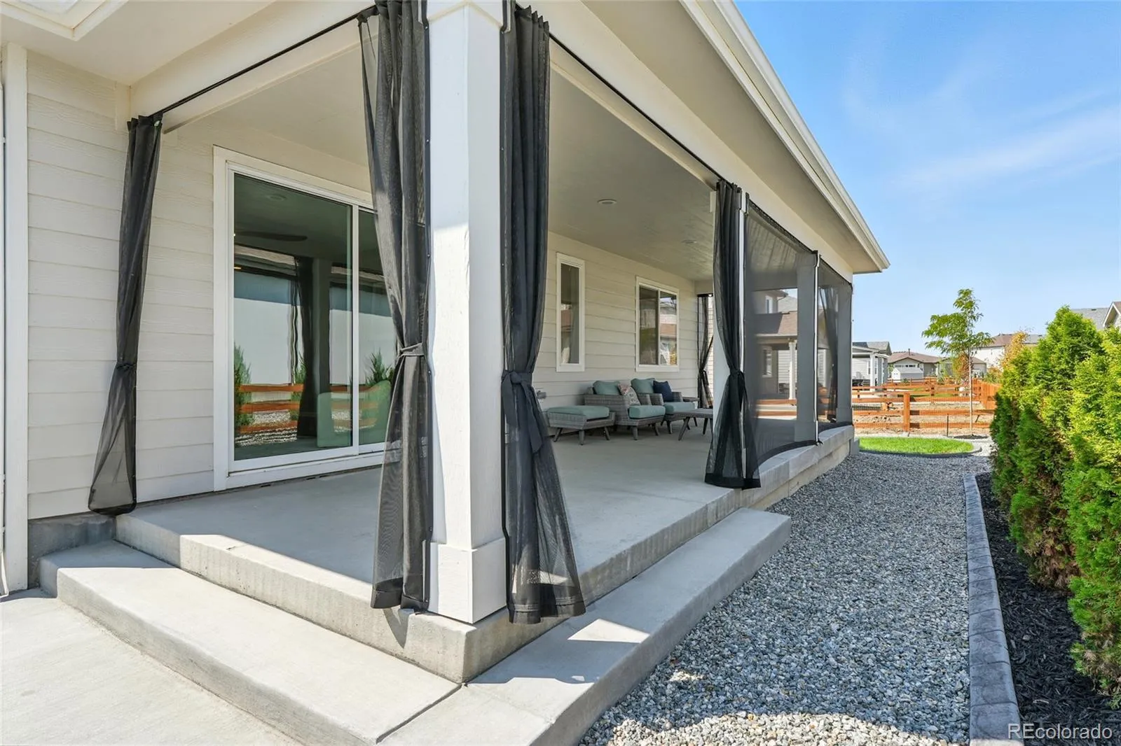 Step outside to a covered, mesh-screened patio for shaded dinners or quiet mornings, with mountain views from both the front porch and the back patio. An extended concrete patio provides additional space to gather, grill, or relax, and decorative stamped concrete curbing in both the front and back landscaping adds a clean, elevated look. There’s even a built-in doggy door with outdoor steps for your furry companion.