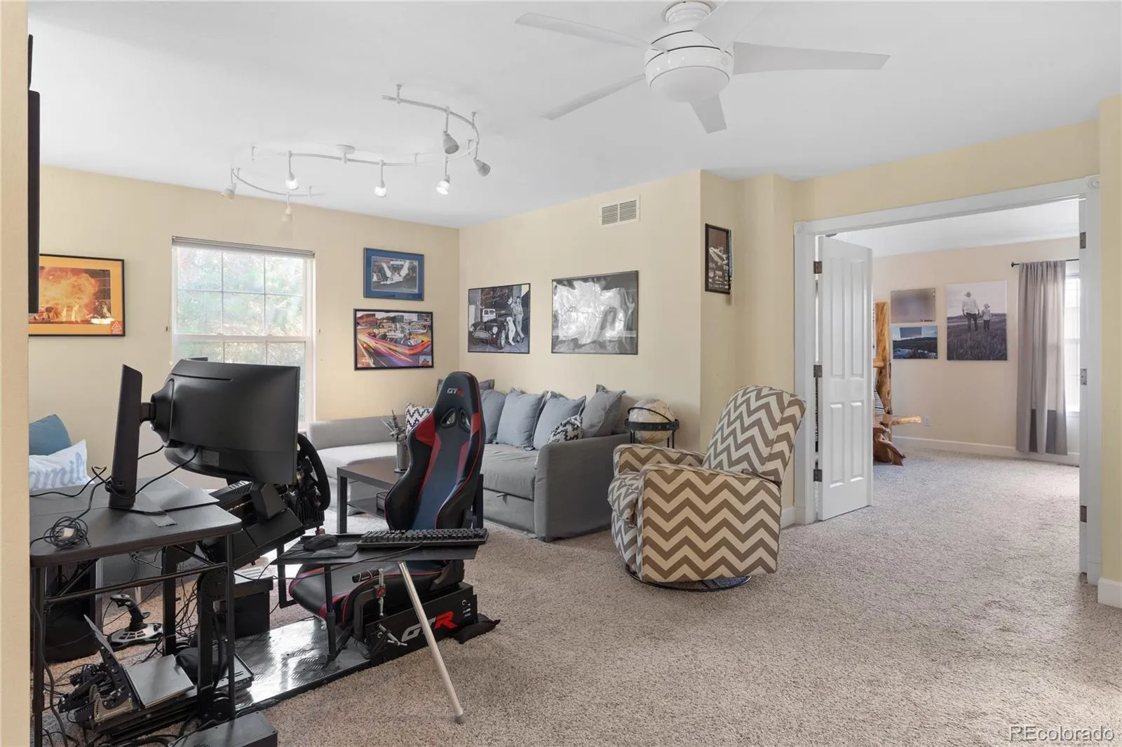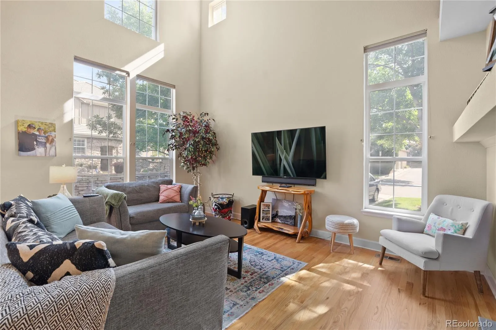 Stunning End Unit Townhome in Turnbury at Highlands Ranch Golf Club just steps from the golf course clubhouse. With 1,843 finished square feet of thoughtfully designed living space with 2 bedrooms, an oversized loft, 3 bathrooms and unfinished basement this model was the largest built within Turnbury and is not often available. From the moment you step inside, you’ll be greeted by soaring ceilings in the 2-story living room, complete with beautiful wood floors and a cozy gas log fireplace. In the kitchen you’ll find Stainless steel appliances including oven, refrigerator, microwave and dishwasher, hardwood flooring and abundant 42-inch cabinetry. Adjoining the kitchen, the dining area provides ample space for entertaining, 1/2 bathroom and main-level laundry room with washer and dryer included for added convenience complete your main level. Upstairs you’ll find Primary Suite complete with closet and 5 piece primary bathroom. There is also a secondary bedroom, full bathroom and oversized loft to finish out the upstairs. The unfinished basement has room for a spacious family room, exercise area, bedroom, 3/4 bathroom or storage areas, you decide. You will also love the Highlands Ranch Amenities in this low maintenance neighborhood which is close to Mercy Park, many great restaurants and shopping including Target, the Town Center, a library, Aspen Grove shopping center, and the light rail, easily accessible at the Mineral and Santa Fe Station. Hard to find a better location! This stunning home is ready to move into and is waiting to be your future dream home!