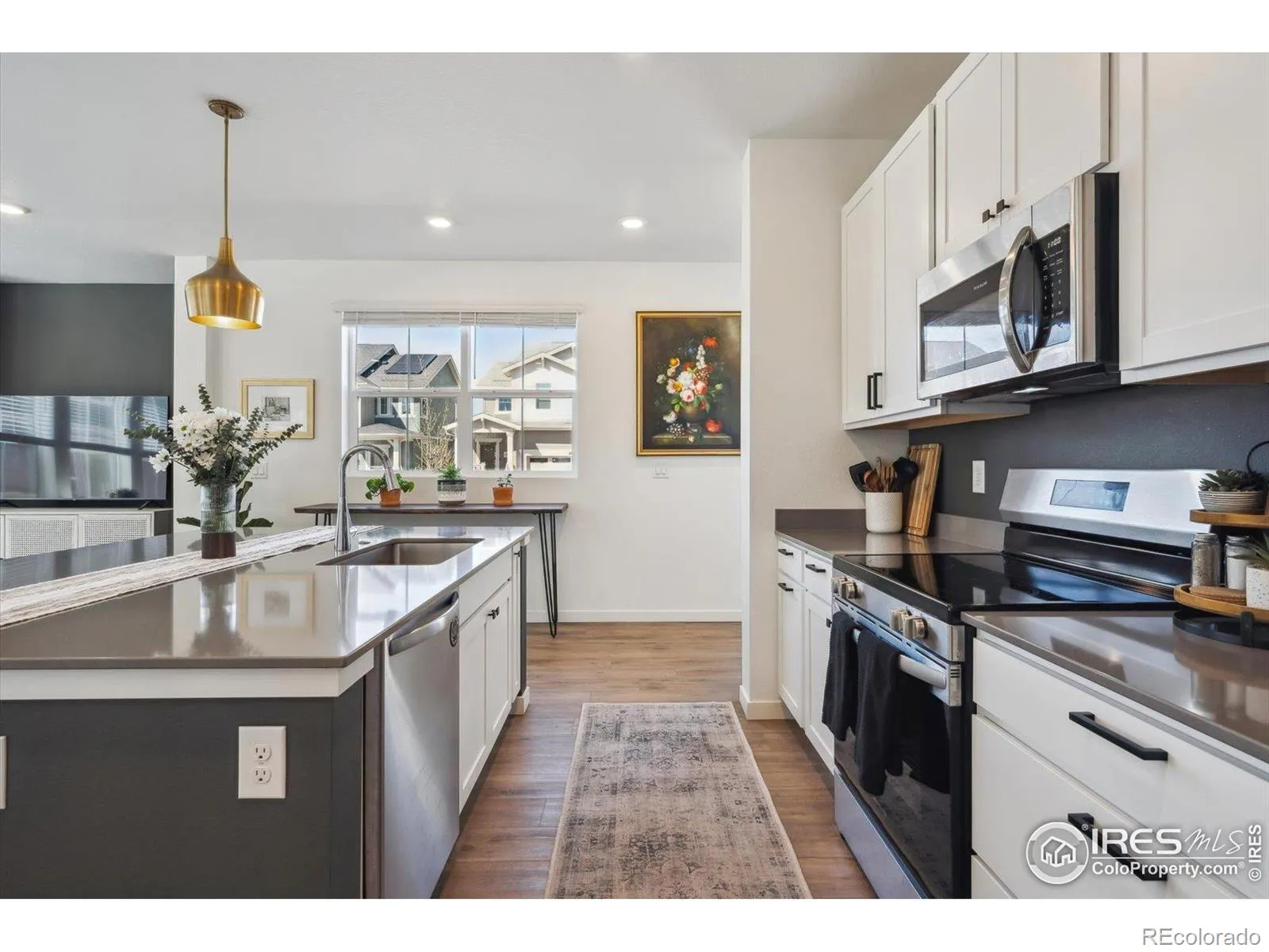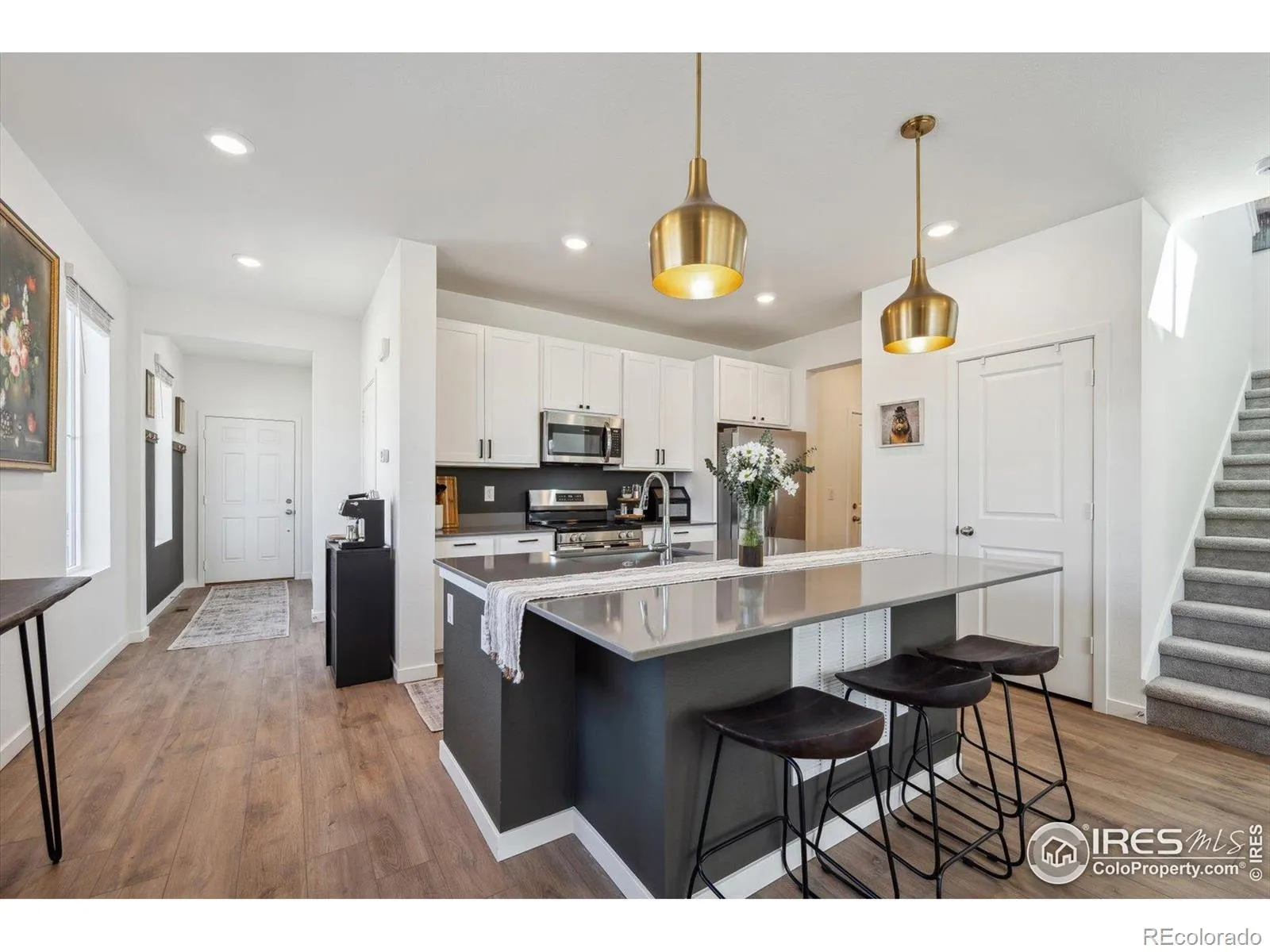 Back on the Market – No Fault of the Home! Their Loss, Your Gain – Best Value in Parkdale! Nestled on a highly sought-after, quiet corner lot with stunning sunset views in Parkdale, this ‘Plateau’ model features an inviting and open layout with curated finishes throughout. Upgraded laminate floors, high ceilings, a gourmet style kitchen, and beautiful designer lighting are just some of the features on the main level. The heart of the home is the well appointed kitchen featuring quartz counters, an oversized center island, upgraded cabinetry, a stainless steel appliance package, and a walk-in pantry. Step out the living room sliders to your own backyard oasis with an oversized covered patio overlooking a low-maintenance outdoor space. This modern home boasts 2 spacious secondary bedrooms, a private primary suite with a large walk-in glass shower, a desirable upper level laundry room, a full unfinished basement for future expansion, and an attached 2-car garage. Parkdale is moments from major roads, open space trails, a dog park, a community pool, and is located near highly coveted Boulder County Schools. Why wait for new construction when this meticulously maintained home is ready without delays or additional post-closing costs. Contemporary living with endless sunset views are waiting for you, book your showing today!