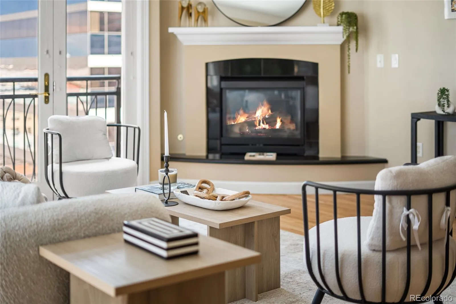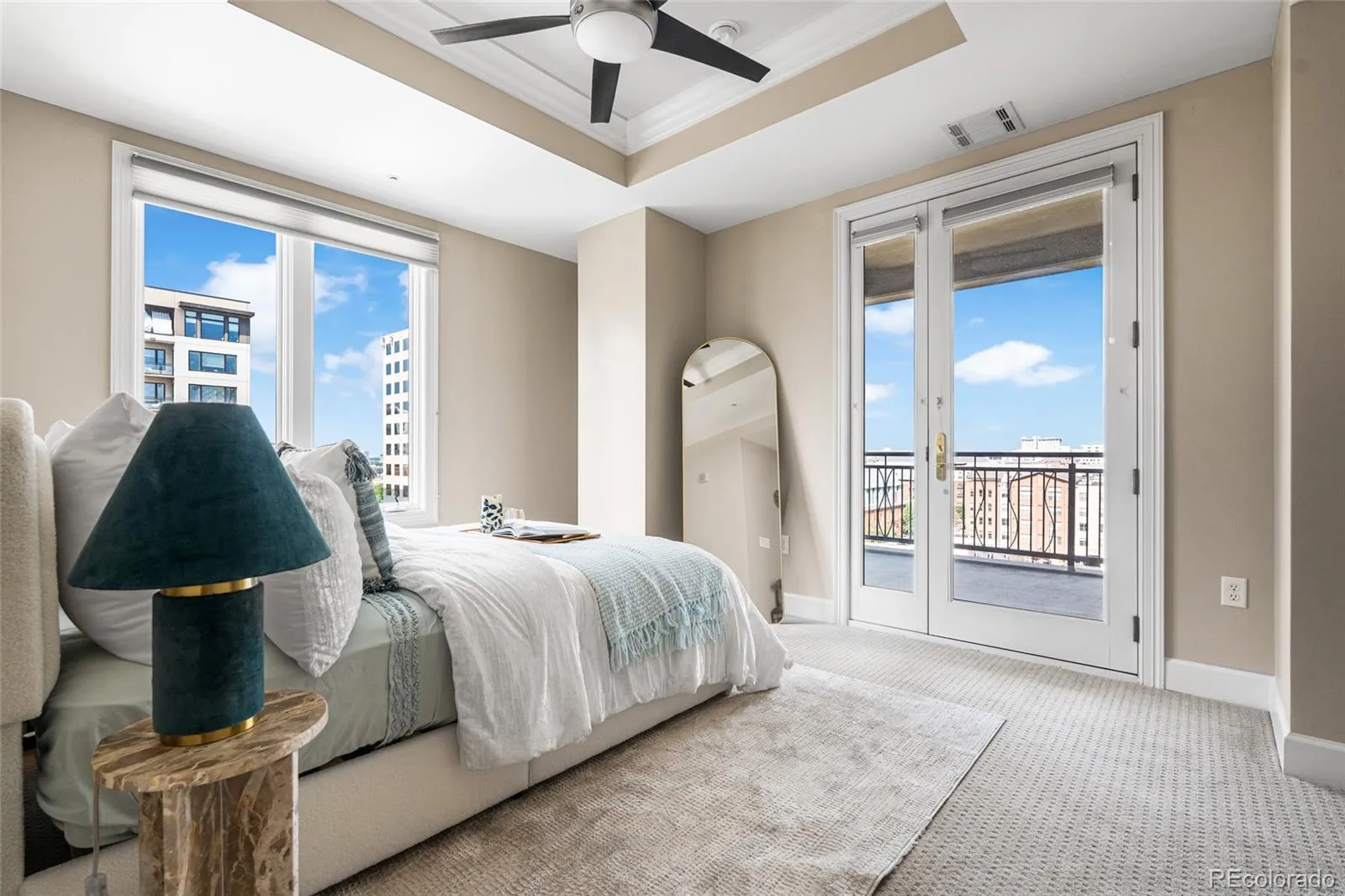 The quiet primary suite offers a full bath, walk in closet, stacked laundry, and private balcony access. A true flex room works as an office, den, or guest space. There is a proper entry with stone flooring and a convenient powder room. Newer carpet in the bedroom and flex room.