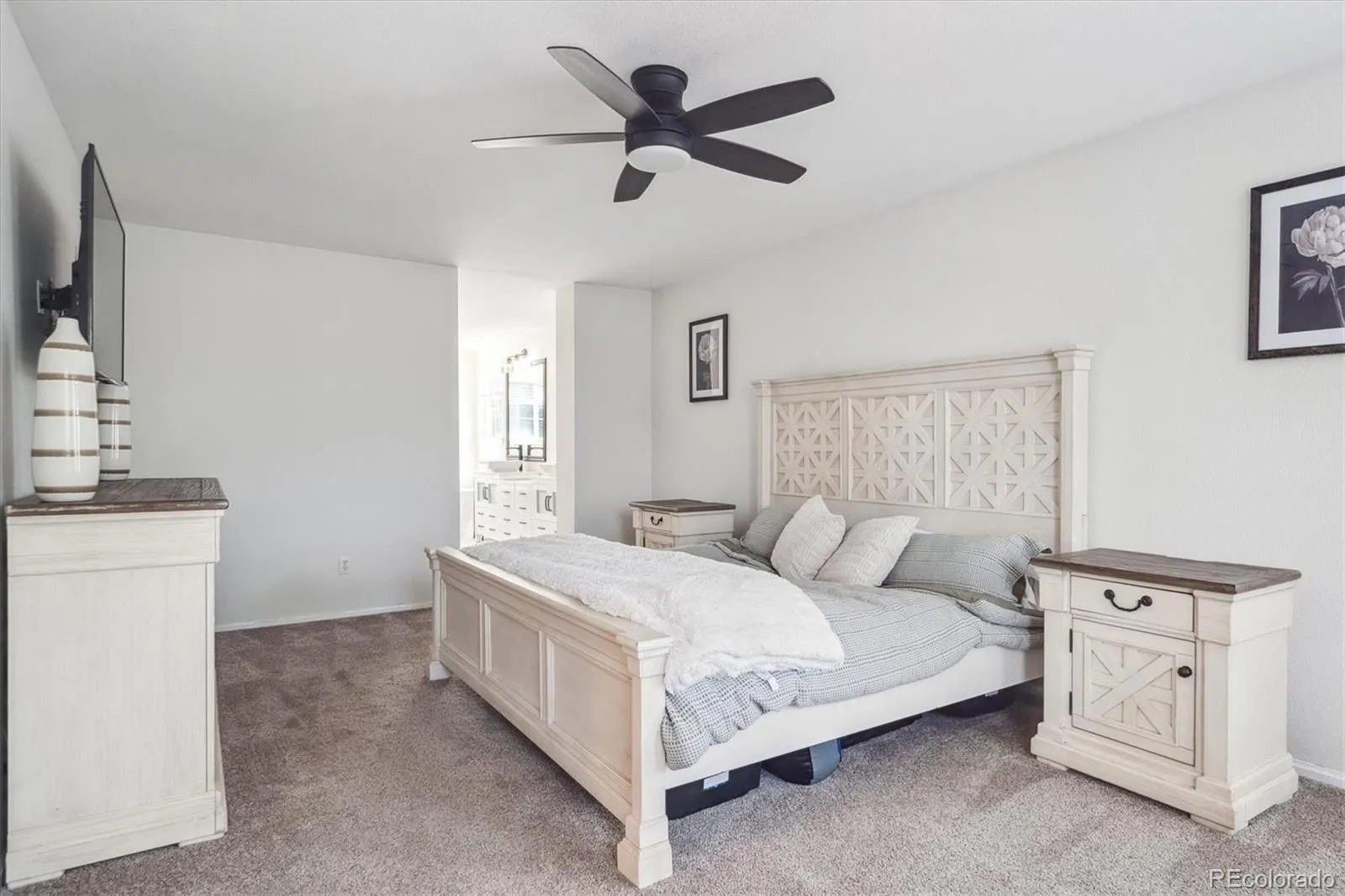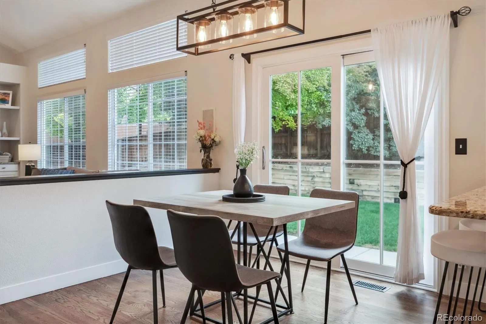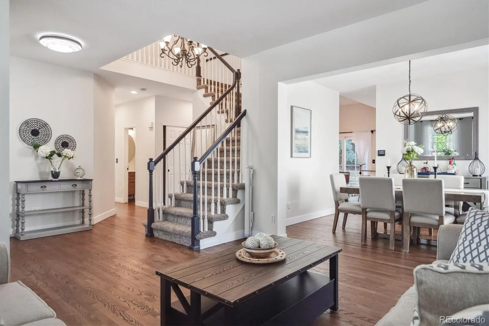Pottery Barn perfect, this extensively updated 2-story residence in Highlands Ranch’s Westridge community perfectly blends modern amenities with timeless, classic design. All-new hardwood floors (2022), fresh interior paint (2022), upgraded lighting, and abundant natural light greet you at the foyer, unfolding to over 2,400 sqft of finished living and entertaining space. Enjoy preparing a meal in the well-appointed kitchen featuring granite counters, new upper soft-close cabinetry, undermount lighting, new tile backsplash, a stainless steel appliance package (new fridge 2022 and microwave 2023), along with a walk-in pantry. Family movie nights or cozying up by the gas fireplace, flanked by built-ins, is ideal in the great room, which is complemented by vaulted ceilings and oversized windows. Step outside to a fenced-in backyard. The patio overlooks mature trees, a retaining wall with professional landscape, and a Wi-Fi-enabled sprinkler system. Upstairs, brand new carpet (2022) unfolds to the private living quarters: three generously sized secondary bedrooms, a fully renovated bathroom, and the primary suite. This spacious sanctuary features dual walk-in closets and a remodeled 5-piece bath, complete with a freestanding tub, dual vanities, and a custom walk-in shower. Additional features of this turnkey residence include a large laundry room with built-ins and a utility sink, an attached 2-car finished garage with an EV charging station, a newer HVAC system, an unfinished basement plumbed for future expansion, and smart-home technology. 9409 S Hackberry Lane is steps from Redstone Park and Trailblazer Elementary, and only minutes from Town Center for shopping, dining, and community rec centers, outdoor pools, sports courts, parks, playgrounds, and miles of trails. Don’t miss your chance to experience this stunning home and discover what contemporary living in Westridge has to offer.
