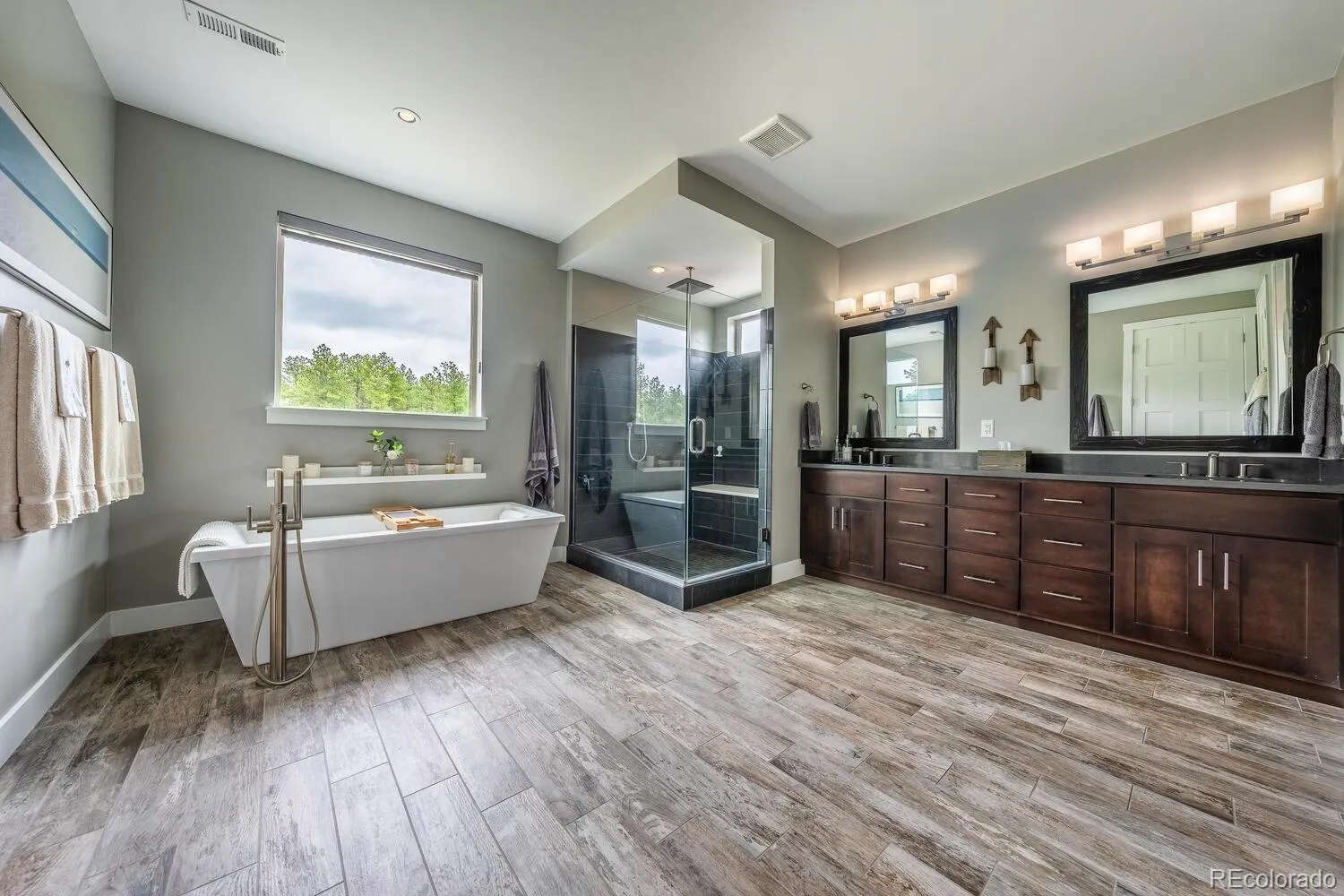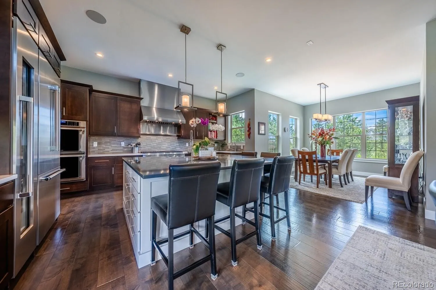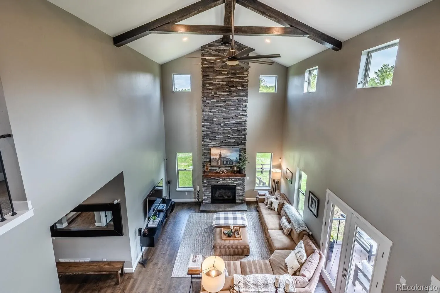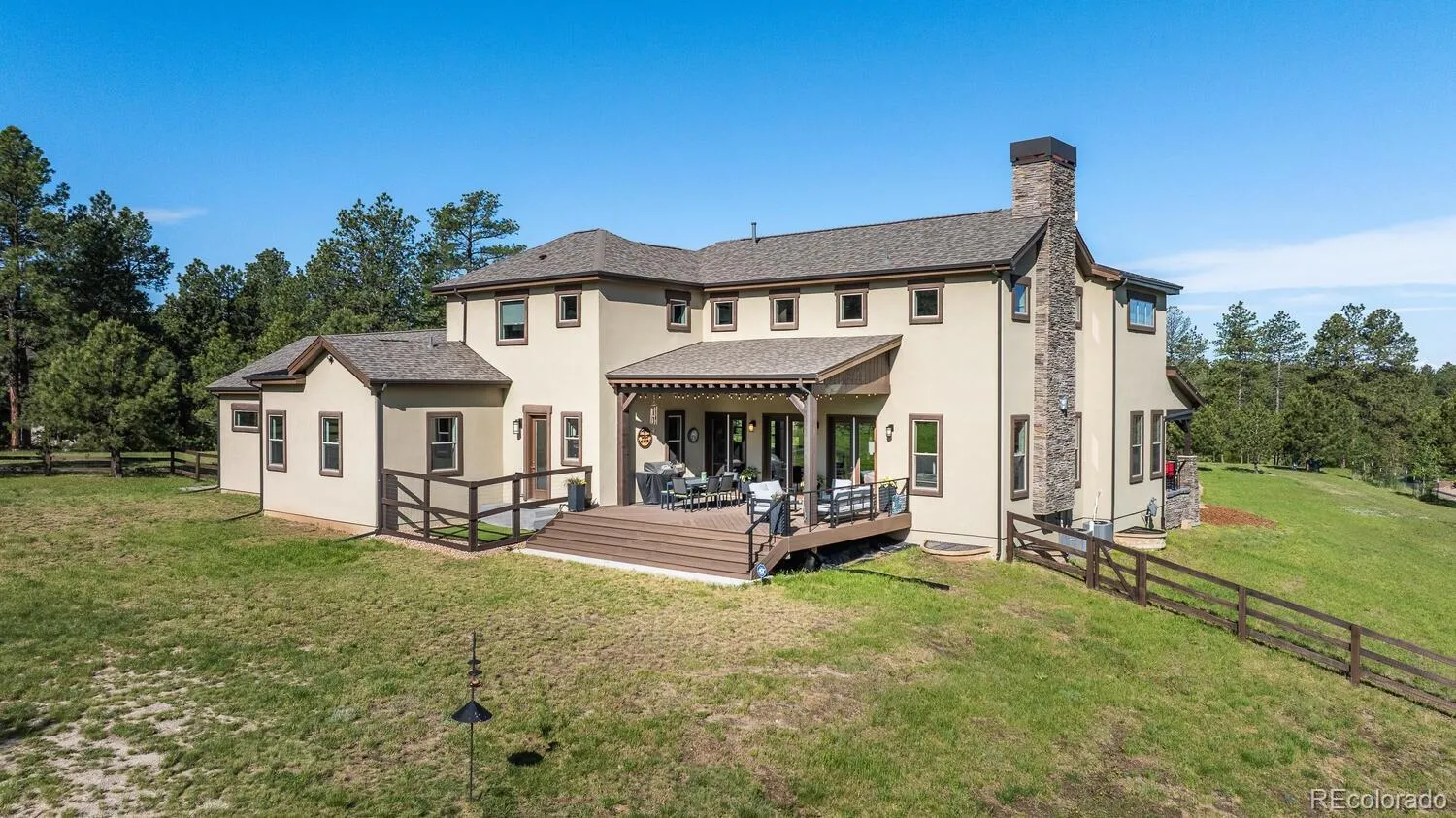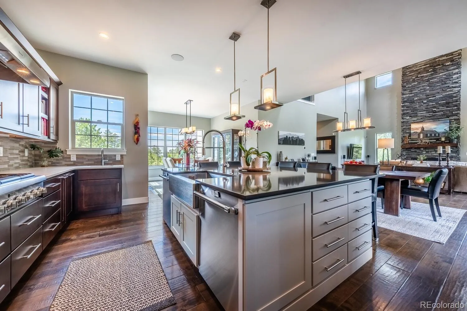 Located in an exclusive, serene, gated community, this custom-built home sits on 3.92 acres and offers luxury living in a peaceful, wooded setting surrounded by majestic ponderosa pines and breathtaking mountain views. The chef’s kitchen isa culinary dream, outfitted with premium Thermador appliances—including a built-in refrigerator, TWO dishwashers, a 6-burner gas cooktop with hood, a prep-sink, and a 54-bottle wine refrigerator. A custom walk-in pantry provides ample storage. The open great room features soaring 23-foot vaulted ceilings with real wood decorative beams and a floor-to-ceiling stone fireplace, creating a warm and inviting ambiance. Enjoy music throughout the home featuring built-in speakers in the kitchen, back deck, and front porch. Designed for comfort, style, and function, this residence includes a newer roof and gutters, a spacious new deck perfect for entertaining, and an extra-large 1,000 sq ft garage with a fully equipped workshop featuring a workbench and potting bench. Additional highlights include 3 sets of French doors that open to the outdoors, creating a seamless indoor-outdoor living experience. A private fenced yard with a separate fenced dog run. Inside has a library loft, and a dedicated office with a Murphy bookcase add to the home’s appeal. The spacious master suite boasts a luxurious bathroom with a stand-alone tub. The home also features a partially finished basement with two bedrooms, a ¾ bathroom, and a family room—plus a large unfinished area ideal for storage or future expansion. This meticulously maintained home offers the perfect blend of charm and modern convenience—a true must-see!
