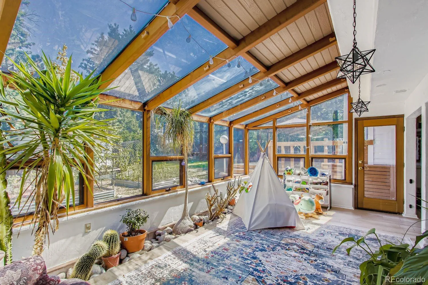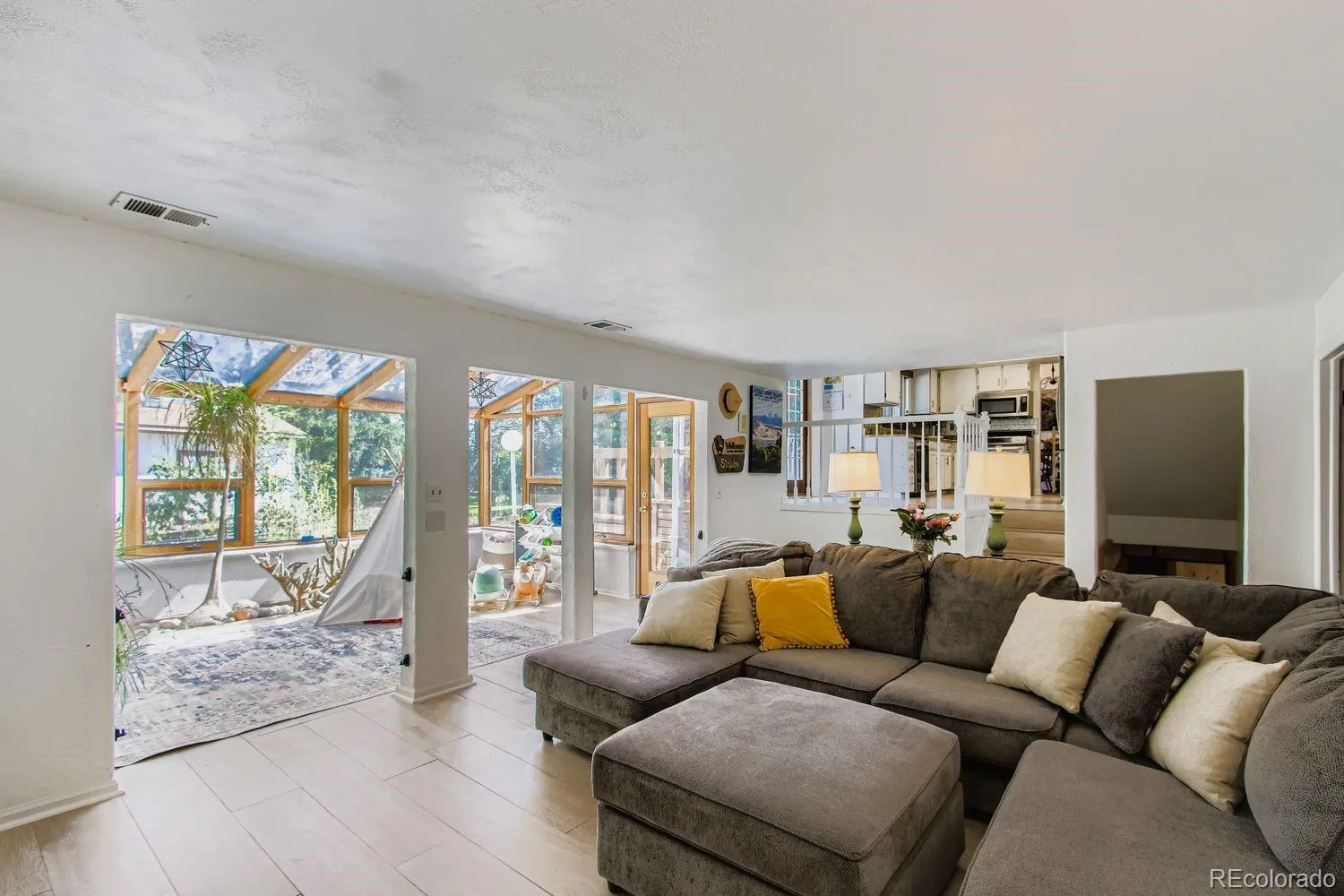 Welcome to a home that blends timeless charm with modern comfort in the heart of Littleton. From the moment you arrive, the curb appeal is undeniable. A manicured lawn, thoughtful landscaping, stone driveway, and welcoming front porch with a pergola frame the brick façade and classic shutters, setting the stage for the warmth inside. Step through the front door into a bright and inviting space where vaulted ceilings create an airy feel and natural light highlights the details throughout. The main living areas are designed for both style and practicality, featuring new ceramic wood-look tile that offers the beauty of hardwood with easy maintenance. A brick accent wall surrounds the wood-burning fireplace in the family room, the perfect spot to gather on a chilly Colorado evening. Just beyond, the enclosed sunroom extends the living space, a sun-filled retreat where plants thrive and mornings begin with coffee in peace. The kitchen combines function and flair with granite countertops and stainless steel appliances. Upstairs, the primary suite is a haven all its own. Extra-large in size and an en-suite bathroom with a soaking tub made for unwinding at the end of the day plus separate shower. Additional bedrooms provide versatility for family, guests, or a home office. The finished basement expands the possibilities even further, offering space for a media room, exercise area, or creative studio. Out back, a private oasis awaits. The fully fenced yard is designed for both relaxation and play, with a spacious deck for summer barbecues, multiple raised garden beds for homegrown produce, sheds for storage, and a concrete patio perfect for a fire pit or outdoor lounge. All of this comes with the bonus of being in the Jefferson County School District, home to highly rated schools including nearby Chatfield High School. With a two-car attached garage and a location close to parks, shopping, and trails, this home offers not just a place to live, but a lifestyle to embrace.