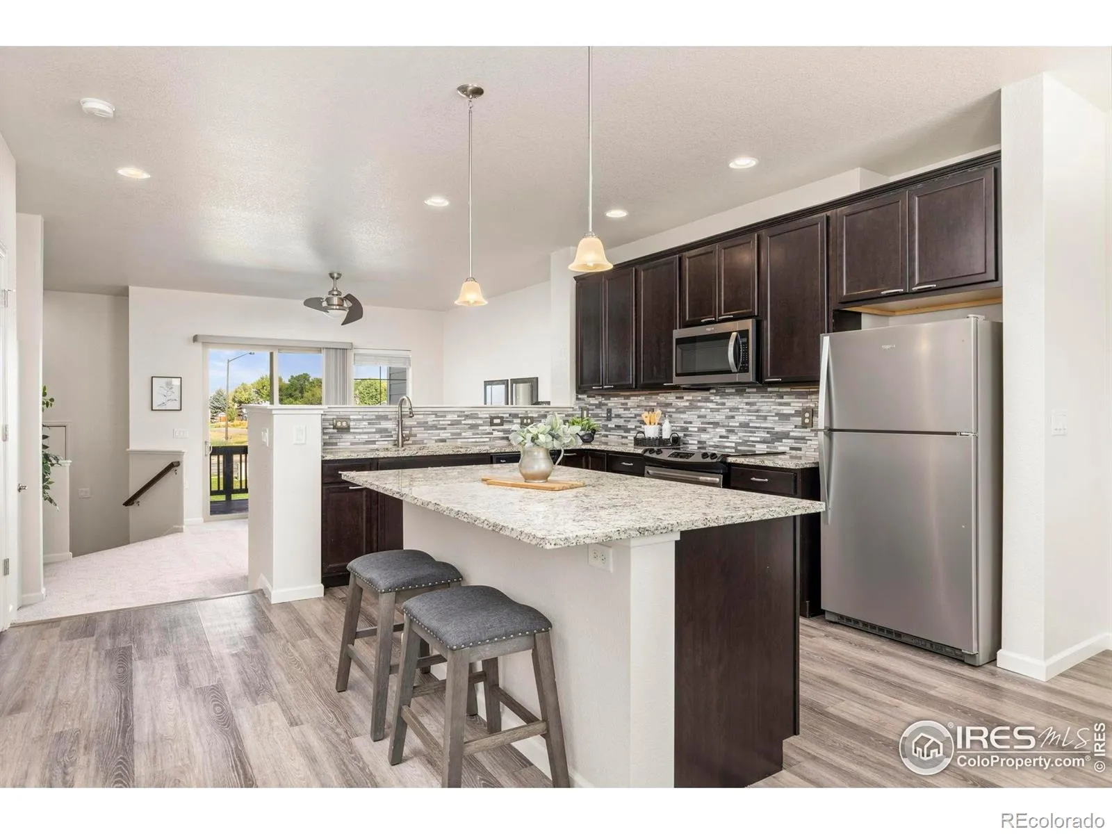 **Seller is offering a credit towards an interest rate buy down with an acceptable offer.** This view is a MUST SEE! Lock and Leave townhome with unobstructed mountain and water views in desirable Lakes at Centerra. An open floor plan with 3 bedrooms, 2.5 baths, a large primary suite with views, a spa-like tiled showered and large walk-in closet. Upgrades galore, with quartz countertops, LVP flooring, upgraded cabinets accented by SS appliances, a kitchen island with additional seating, smart thermostat, all new carpet and interior paint throughout. Spacious covered deck off the living room, perfect for entertaining or to take in the beautiful views and picturesque sunsets. Tons of storage and a convenient mud room off the spacious 3-car garage which provides plenty of room for a workshop and all of your toys. All appliances included (washer and dryer too), 1 year home warranty included for your peace of mind. High quality construction by Boulder Creek Builders with over 1 foot firewall separation within connecting walls for reduced sound and fire mitigation. Walk to High Plains K-8 School. The Lakes at Centerra features two shimmering lakes, miles of trails, a great neighborhood school, The lake club – a place to swim and socialize, Lake access to non-motorized water activities, a Community Wildlife Habitat. Close to shopping, dining, great entertainment and easy access to I-25. This one won’t last, schedule your private showing today!
