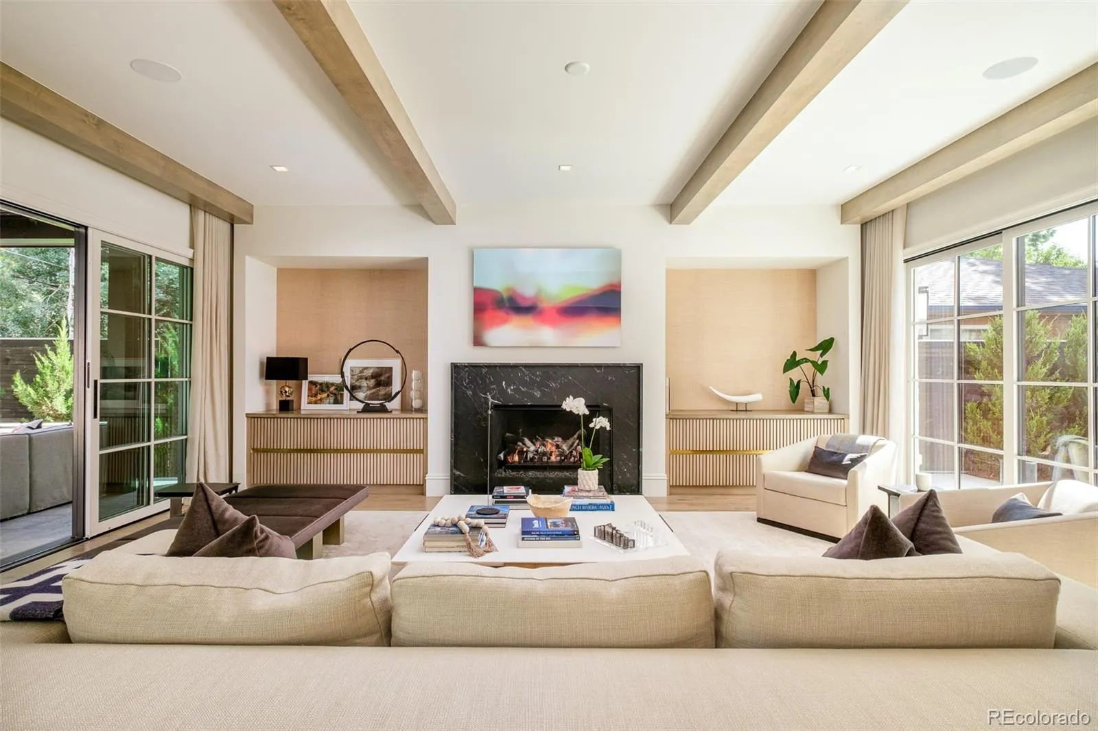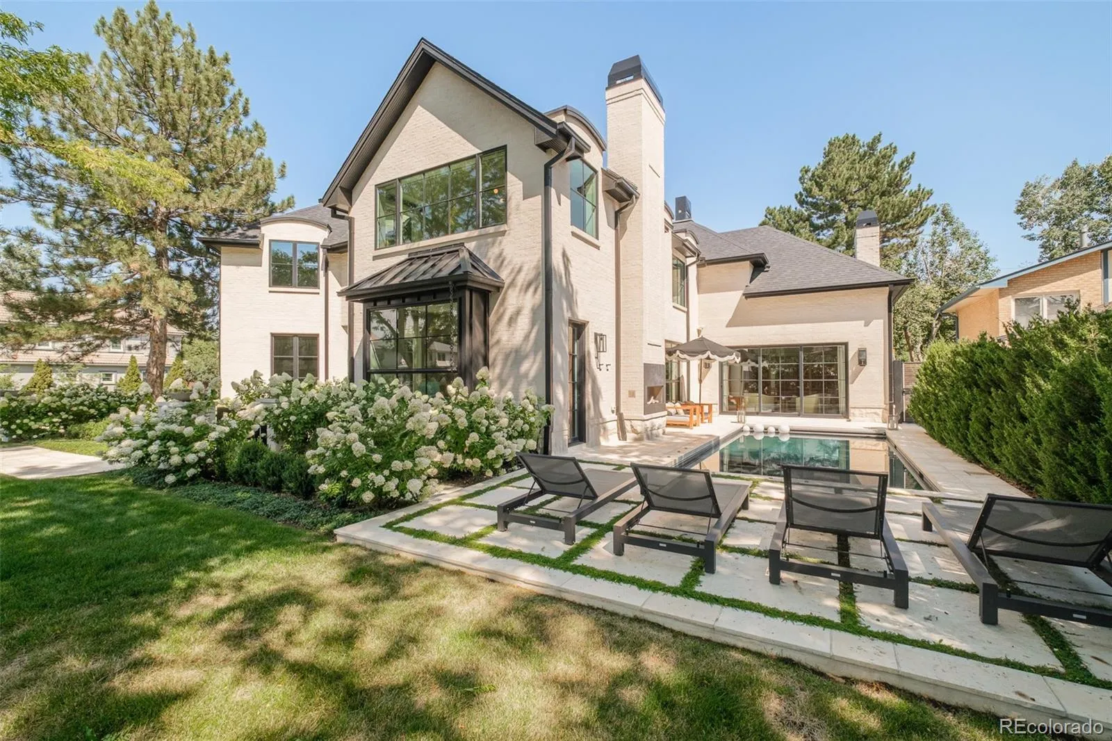 A rare jewel in the heart of Hilltop, this masterfully reimagined estate pairs timeless sophistication with the pinnacle of modern innovation. Completed in 2022 with a full-scale renovation, the residence rests on a private corner lot, enveloped by curated gardens and hydrangea-lined turf by Elevate by Design. Every space has been thoughtfully envisioned by DD Interiors, showcasing exquisite craftsmanship, bespoke finishes, and a seamless harmony between indoor and outdoor living. Designed for grand-scale entertaining and intimate gatherings alike, the open-concept interiors flow effortlessly from a showpiece kitchen — boasting an oversized island, butler’s pantry with Miele coffee station, dual dishwashers, and Vogo cabinetry — to a luminous living area where sophistication meets ease. Six ensuite bedrooms include a primary sanctuary with a steam shower, dual rain heads, heated floors, and Lutron-controlled shades. Retreat to the lower level to discover where luxury amenities abound — including a wine room, acoustical theatre with world-class AV, fitness studio with infrared heat, and in-cabinet television. Intelligent systems by Harrison Home elevate convenience with fully integrated AV, lighting, climate, and security throughout. Walls of sliding glass dissolve to reveal a private oasis — a covered, heated pool with spa, an expansive terrace with fire features, and a fully equipped outdoor kitchen complete with pizza oven, smoker, dual burners, and beverage center. A three-car garage, double laundry, and designer details at every turn complete this extraordinary retreat. A residence of distinction, this home embodies the essence of elevated Cherry Creek living — where artistry, innovation, and luxury converge.