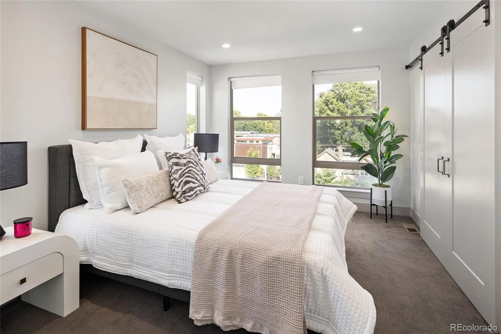 The third level is dedicated to a spacious primary suite, complete with ample closet space and a beautifully appointed en-suite bathroom, offering a tranquil escape at the end of the day. From there, head up to the rooftop deck where you’ll enjoy stunning 360-degree views of the city skyline and mountains, an ideal setting for relaxing or entertaining.