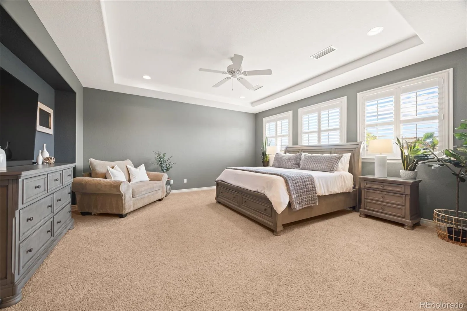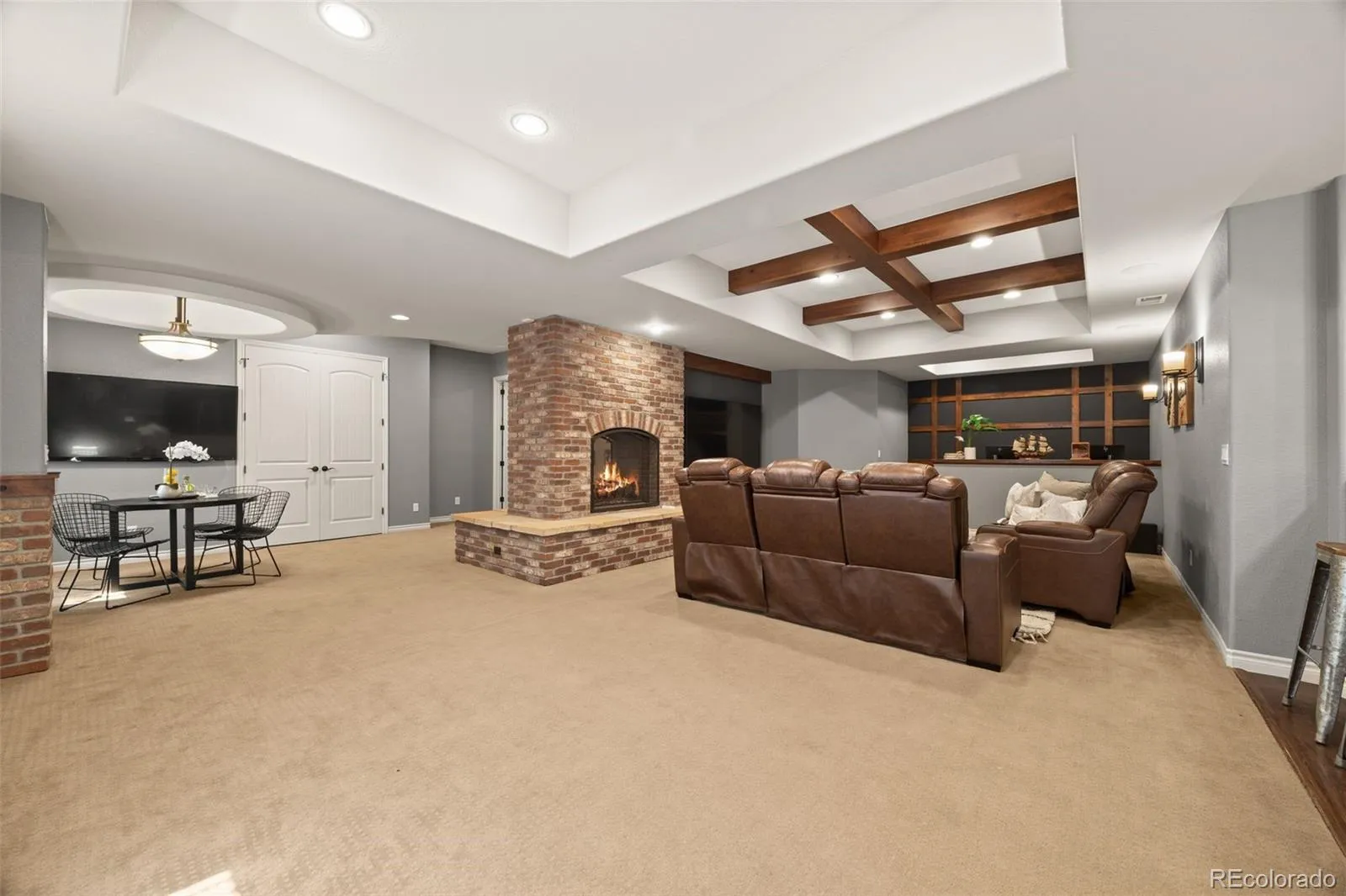 REFINISHED main level WOOD FLOORS & addition of wood floors in the office! Welcome to this beautifully appointed 5-bedroom, 6-bathroom home nestled in a quiet Highlands Ranch cul-de-sac. Elegance meets functionality, main level bedroom with en-suite bath, dining room & chef’s kitchen featuring a gas range, warming drawer, double ovens, two dishwashers, a spacious walk-in pantry, extra island storage & a generous butler’s pantry with appliance closet. The formal dining room is enhanced by a wood-beamed ceiling & a striking two-story brick accent wall, leading upstairs to 4 additional bedrooms. The primary suite has dual walk-in closets, a spa-style shower with dual shower heads. Secondary bedrooms include one bedroom with its own en-suite bath & two additional bedrooms sharing a Jack-and-Jill bath & private access to the upper sitting deck with mountain views. The finished basement is perfect for entertaining, complete with a wet bar & double-sided brick fireplace. A tucked-away pocket office adds both convenience and privacy. Throughout the home, plantation shutters, rich wood accents, & premium finishes bring warmth & character. Step outside to enjoy a wraparound patio with a built-in grill, outdoor kitchen, and TV for year-round gatherings. Additional features include dual water heaters, dual-zone heating & cooling, automatic window shades in the main living room and kitchen, a Halo water system, furnace with humidifier, main-level laundry with sink, a three-car garage, newly painted exterior, & custom Jellyfish lighting to create the perfect ambiance in every season. This home seamlessly blends luxury, comfort, & convenience in one perfect package. The Backcountry neighborhood hosts amazing events for residents all year long…the golf cart friendly neighborhood amenities include a clubhouse, Campus Lounge for full service dining, Lost Coffee shop, fitness center, parks and miles of trails for walking, hiking & biking. Live & love the Backcountry Lifestyle!