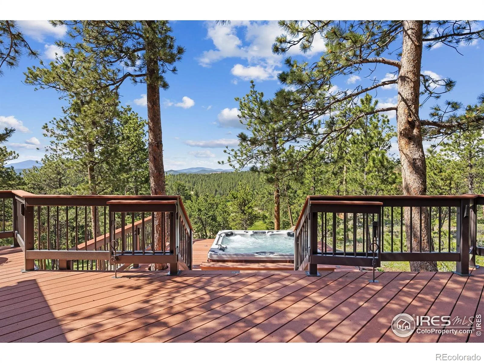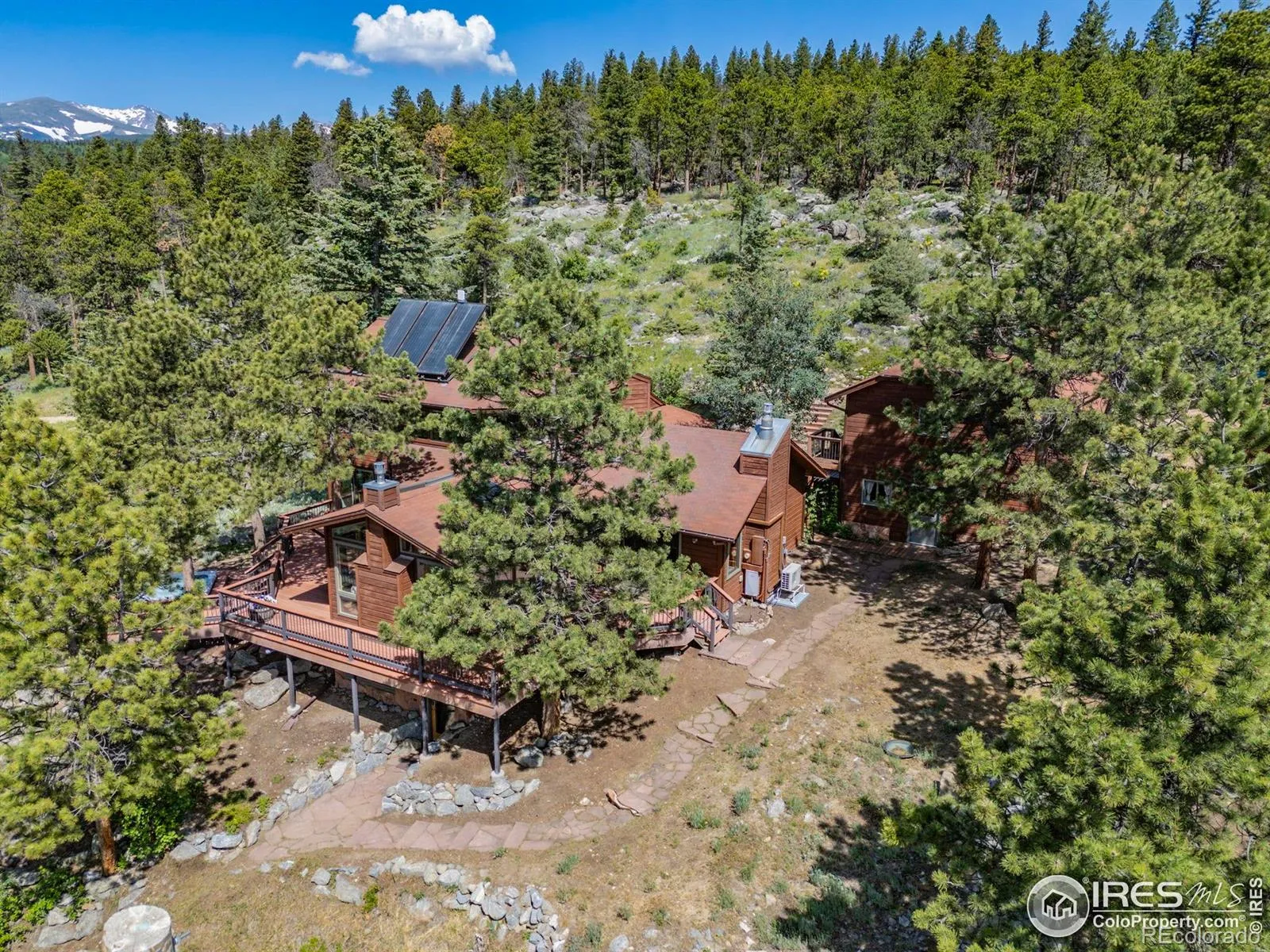 Elegant Mountain Estate with Panoramic Views – only 14 miles from Boulder! Perched at the end of a private road and bordering pristine National Forest, this exceptional custom estate combines rare seclusion with refined mountain luxury. Bathed in full southern exposure, the home is surrounded by wildflower meadows, dramatic granite outcroppings and sweeping vistas that stretch from James Peak to Eldora Ski Resort. Inside, architectural elegance meets timeless comfort. Vaulted ceilings, post and beam accents, skylights and walls of glass frame the views while filling the home with natural light. The gourmet kitchen is a chef’s dream-granite counters, a one-of-a-kind natural flagstone backsplash, professional-grade stainless appliances, a dedicated coffee bar and generous seating invite both intimate mornings and grand entertaining. The adjoining sunroom, finished in flagstone with a cozy gas fireplace, offers a year-round retreat where nature feels just an arm’s length away. The main-floor primary suite is a sanctuary of its own, complete with a gas fireplace, spa-like bath and walk-in closet. Upstairs, a loft, two spacious guest bedrooms and a stylishly updated bath provide both comfort and privacy for visitors. Additional amenities include two versatile bonus rooms, an oversized two-car garage with a fully equipped workshop, additional storage spaces and a whole-house generator that can seamlessly power most of the home for peace of mind. Outdoor living is unparalleled: a wraparound deck for sun-soaked afternoons, a hot tub for starlit nights and endless trails that begin right at your doorstep. All of this is just 14 scenic miles from Boulder, offering effortless access to world-class dining, shopping and culture-while still enjoying the serenity of your own private mountain retreat.