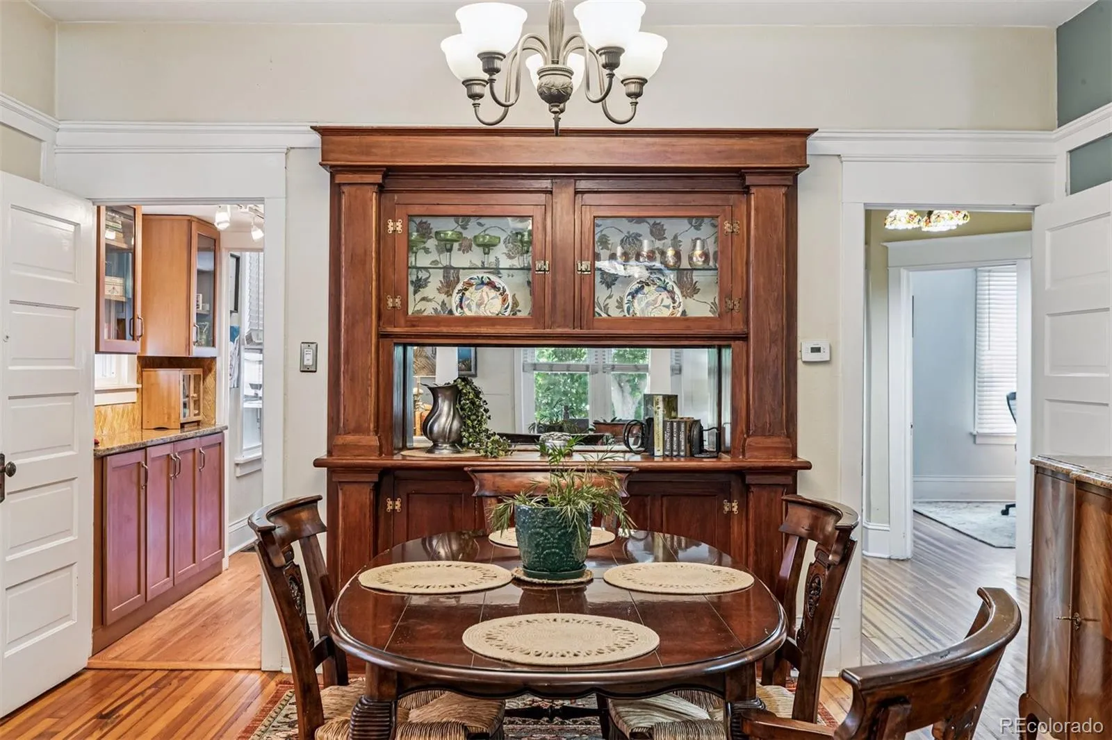This beautifully updated bungalow blends timeless character with modern comforts in a super quiet neighborhood perfect for peaceful nights and calm walks. The main level features hardwood floors, a cozy living room with a decorative fireplace and recessed lighting, a formal dining room with original built-in hutch, and a stylish kitchen with granite countertops, Shaker cabinets, stainless steel appliances (new refrigerator and oven/range in 2024, new microwave in 2024). Two bedrooms and a full bath complete this level.