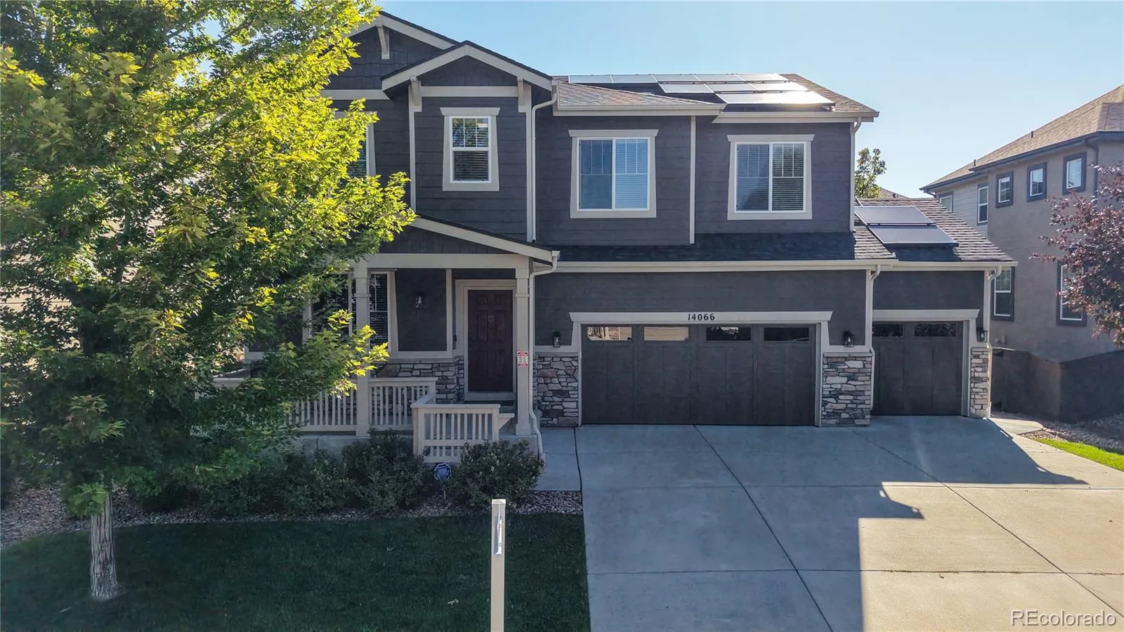 Set in the desirable Fallbrook Farms, 14066 Fillmore Drive offers a beautifully maintained home with spacious living space featuring not only 5 bedrooms and 3.5 bathrooms but also a large loft space upstairs and large rec room in the basement. Solar system is owned and included in the sale giving you a huge energy cost savings for years to come! Living room could be easily converted to an office by the front door. Additionally, a huge rec room in the basement perfect for a big gathering! Kitchen is open to great room and dining room full of lights and features modern stainless-steel appliances, ample cabinetry, sleek countertops, and a central island perfect for casual meals or entertaining. The family room provides a cozy yet open gathering space, anchored by a fireplace that adds charm and comfort. Primary bedroom with on-suite 5-piece bath, a large walk-in closet and a spa-like soaking tub, and a separate shower. Additional bedrooms are thoughtfully sized to accommodate family, guests, or home office needs, while secondary bathrooms and a convenient laundry room add everyday practicality. The finished basement offers flexibility for a media room, fitness space, or playroom, ensuring the home adapts to a variety of lifestyles. Outside, a fenced backyard with a patio provides the ideal setting for outdoor dining, gardening, or simply enjoying Colorado evenings. Mature landscaping enhances both beauty and privacy. The location adds significant appeal, a beautiful community park with playground and walking/bicycle trail system is around the corner to soak in unobstructed mountain views. Nearby attractions such as Trail Winds Recreation Center, Northern Light Little League Ball Park, Marshall Lake, and the expansive Trail Winds Park and Open Space offering endless opportunities outdoors. Recreation, shopping, dining, and services are conveniently located at The Orchard Town Center, while Topgolf, Chicken & Pickle, Thorncreek Golf Course and Costco are nearby.