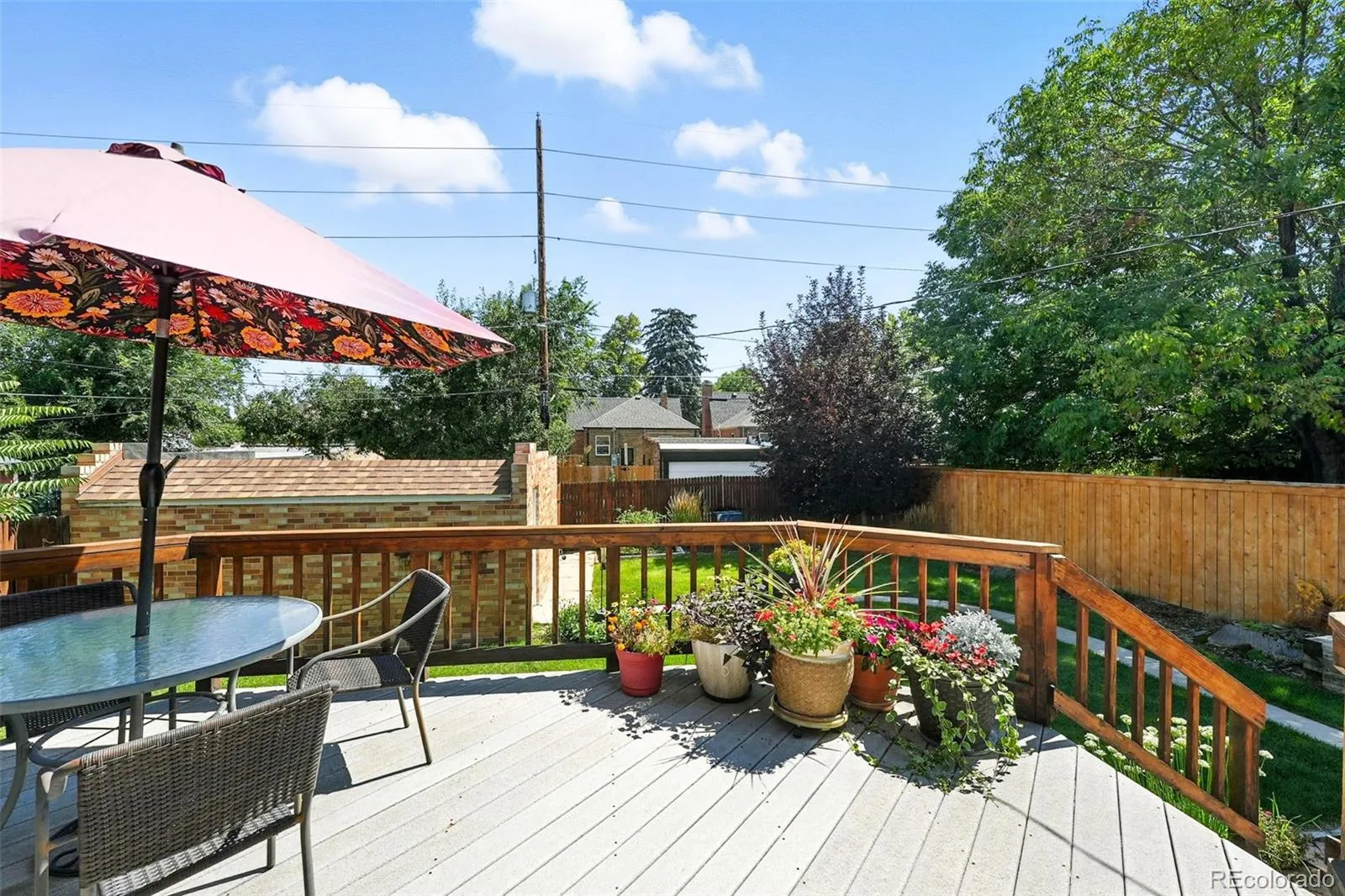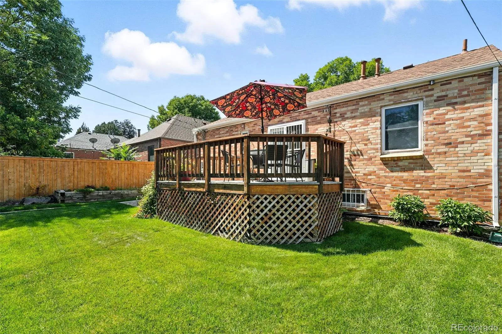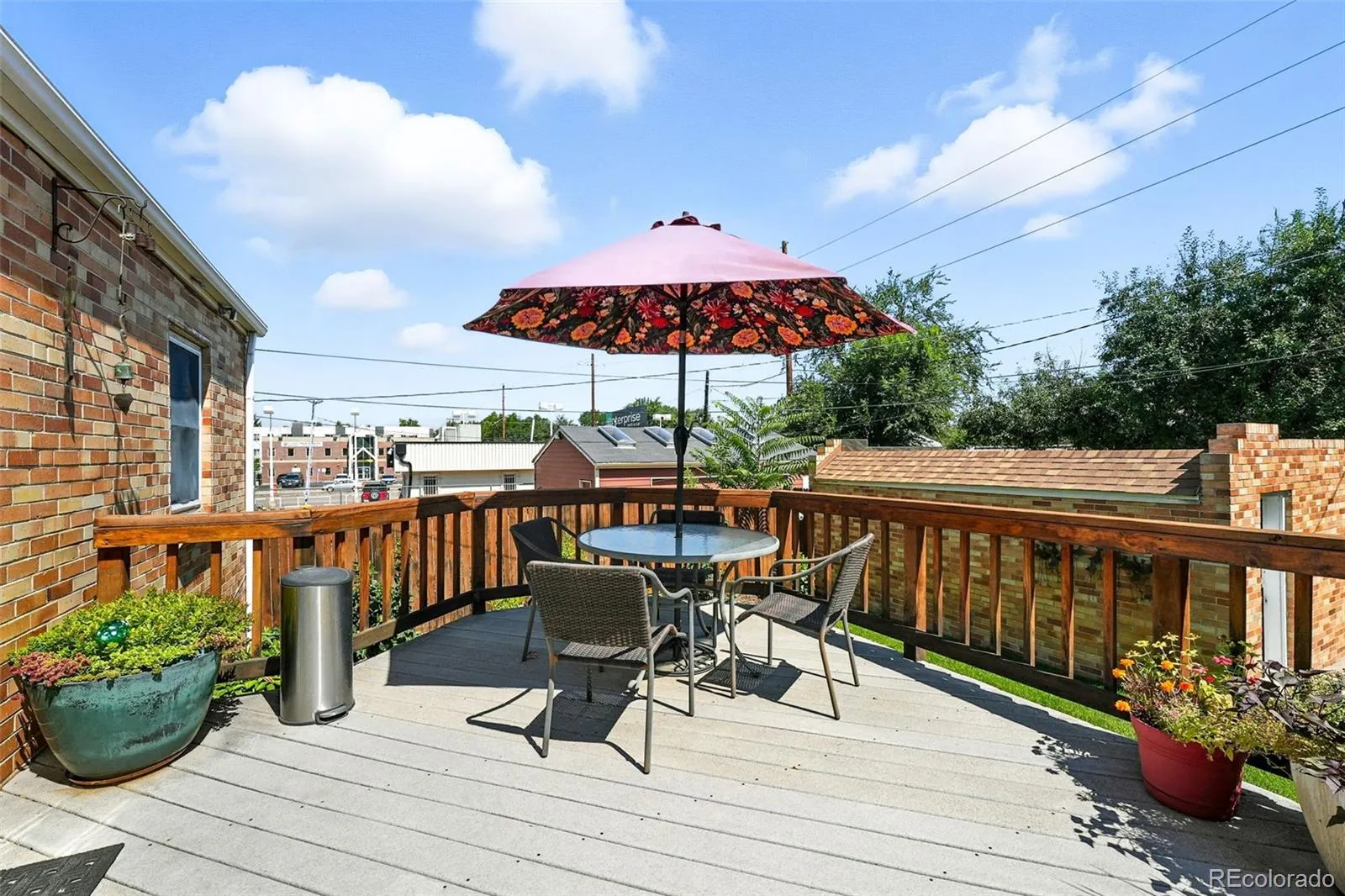 Welcome home to this beautiful brick 4 bedroom, 2 bathroom home on a quiet, mature tree lined street. This is a great HOUSE HACKING opportunity where this address provides TWO separate living spaces to offer some income to offset your mortgage, if you decided to. You simply won’t find another home quite like this one, with its character, amazing yard, 2 car detached garage, and the potential to have separate living, both very spacious and functional! You can live in one and rent the other either as a short/mid/long term rental! OR you can just have two fully functioning spaces both with kitchens, perfect for entertaining on either level. This home has it all from the moment you walk up and see the landscaping, amazing green grass and flowers both front/back yards, to the enclosed front porch, great for sipping coffee and having plants. When you walk in to the main home, your eyes will be drawn to the beautiful hardwood flooring throughout the upper level, light and bright windows, and great space. There is amazing blue, unique tile back splash that truly makes the kitchen pop! The bay kitchen window lets in a lot of natural light, perfect for growing your fresh herbs for cooking. The upper level of the home has 2 large bedrooms, 1 full bath, a beautiful brick fireplace, a large dining room off of the kitchen and a nice sized living room complete with a walk-out to the beautiful deck, perfect for relaxing and entertaining. All of the main systems have been upgraded, including a new roof (’24), new furnace, A/C and water heater (’21). There are TWO sets of washers/dryers! The basement has 2 bedrooms, a kitchen complete with a stove, refrigerator, kitchen sink a large amount of counter space. This really is a one-of-a-kind set up and in a great location. The opportunities are endless, given it’s proximity to not only 9th and CO/Mayfair but also the Colfax corridor, which offers lots of amazing restaurants, shopping, movie theatre, grocery stores and concert venues! T