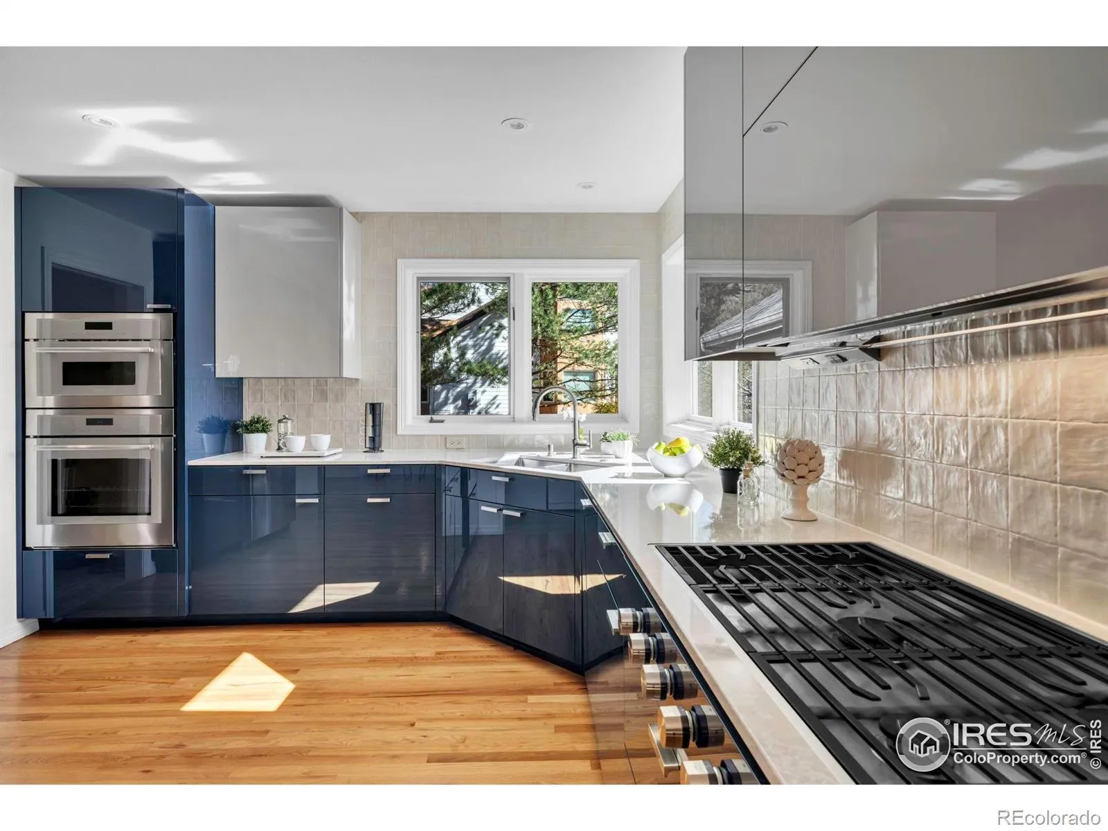 This pristine, spacious North Boulder two-story blends classic design with modern updates, featuring a brand-new kitchen with high-end appliances, a custom pantry, and an eat-in area that connects seamlessly to the sunken living room and formal dining room. Beautiful wood floors, custom finishes, a formal living area and a bright private office complete this functional main level layout. Upstairs are four generous bedrooms and three remodeled baths, including a primary suite with a designer spa-like five-piece bath, and a large walk-in closet. The finished basement is filled with natural light from egress windows and offers its own bedroom area, full bath, and flexible living space. Additional highlights include a three-car garage with epoxy floors and beautiful windows and built in storage, newer composite decking and fencing, and a large fenced yard on a desirable corner lot with mature trees. Thoughtful landscaping and custom deck railings complete this residence that captures the essence of North Boulder living.
