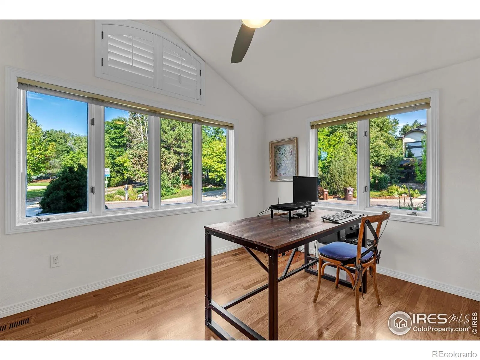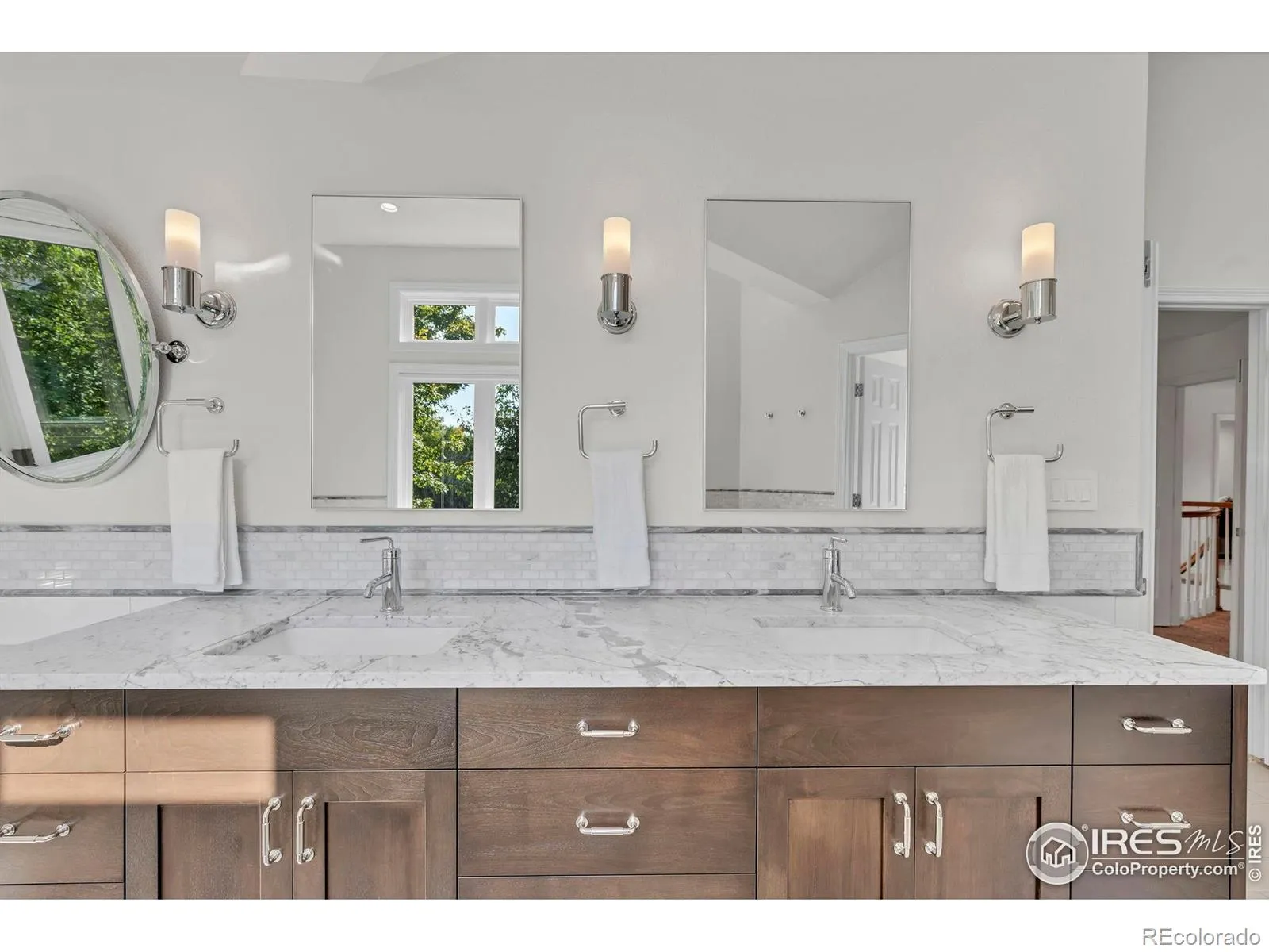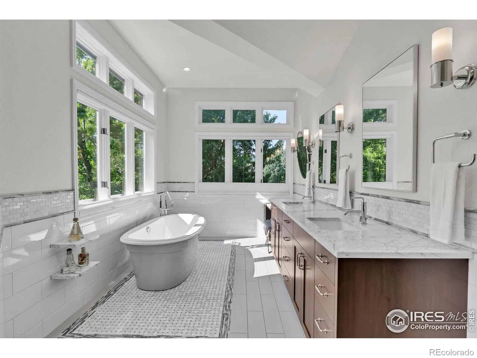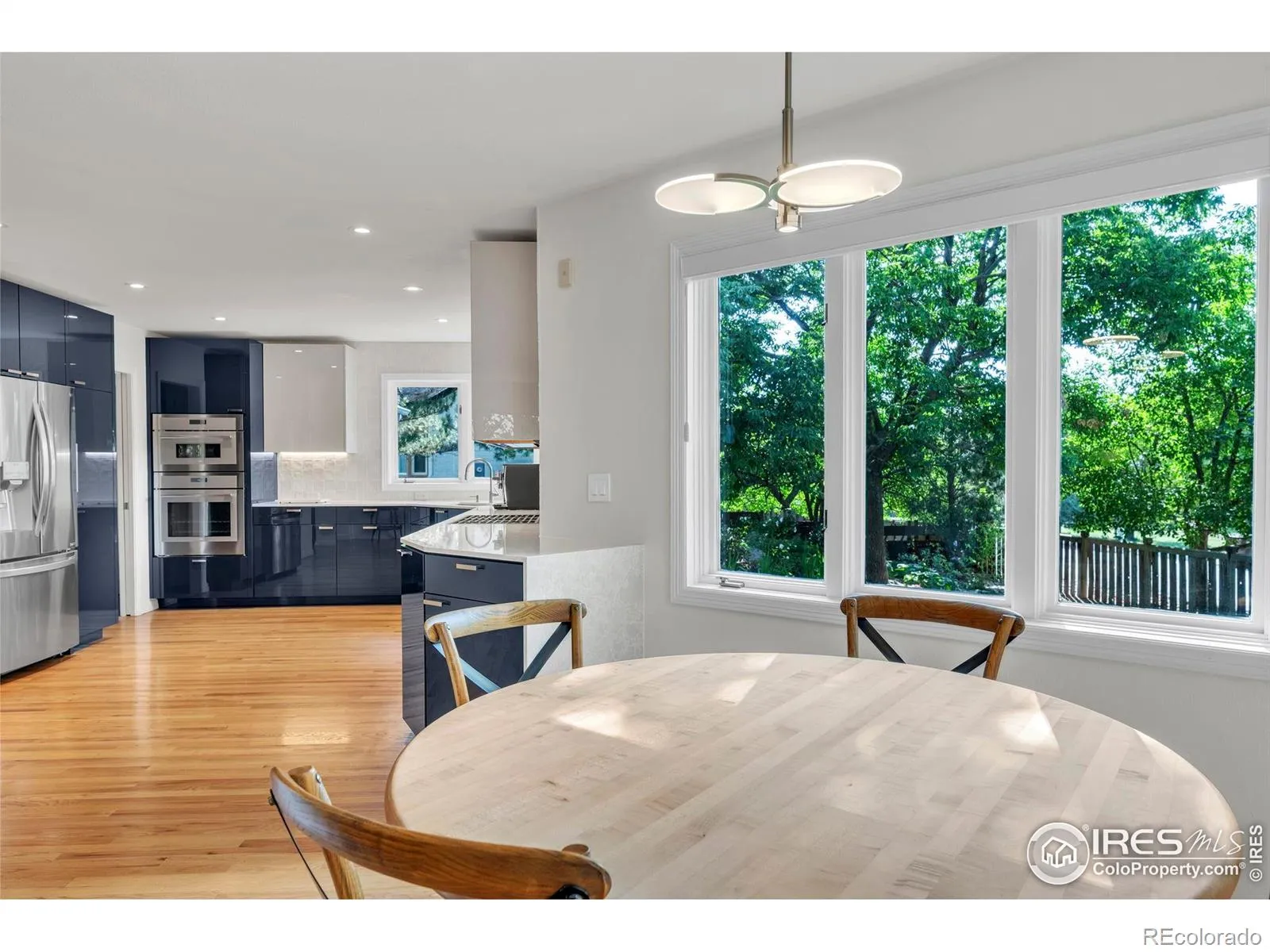 This pristine, spacious North Boulder two-story blends classic design with modern updates, featuring a brand-new kitchen with high-end appliances, a custom pantry, and an eat-in area that connects seamlessly to the sunken living room and formal dining room. Beautiful wood floors, custom finishes, a formal living area and a bright private office complete this functional main level layout. Upstairs are four generous bedrooms and three remodeled baths, including a primary suite with a designer spa-like five-piece bath, and a large walk-in closet. The finished basement is filled with natural light from egress windows and offers its own bedroom area, full bath, and flexible living space. Additional highlights include a three-car garage with epoxy floors and beautiful windows and built in storage, newer composite decking and fencing, and a large fenced yard on a desirable corner lot with mature trees. Thoughtful landscaping and custom deck railings complete this residence that captures the essence of North Boulder living.