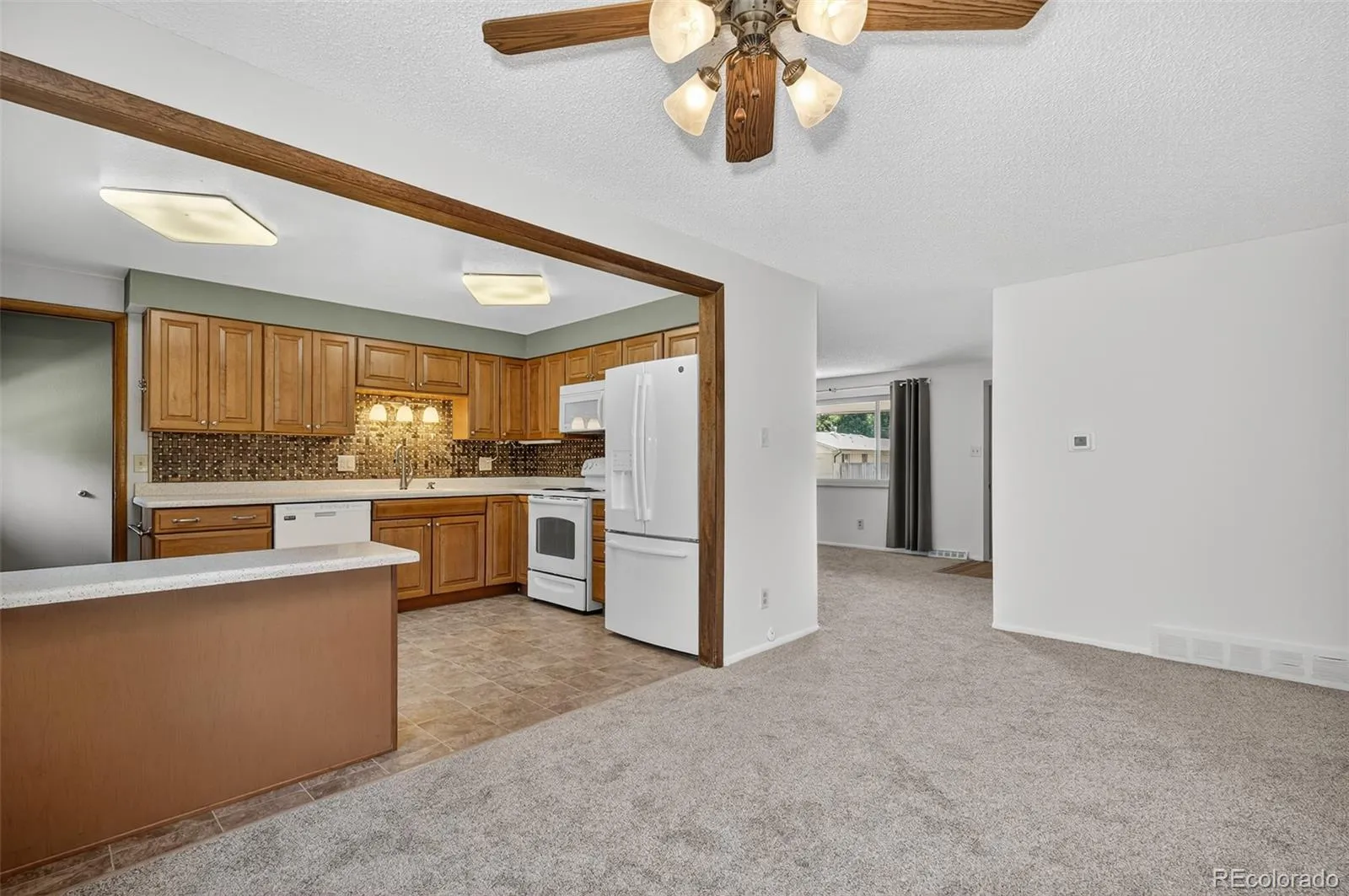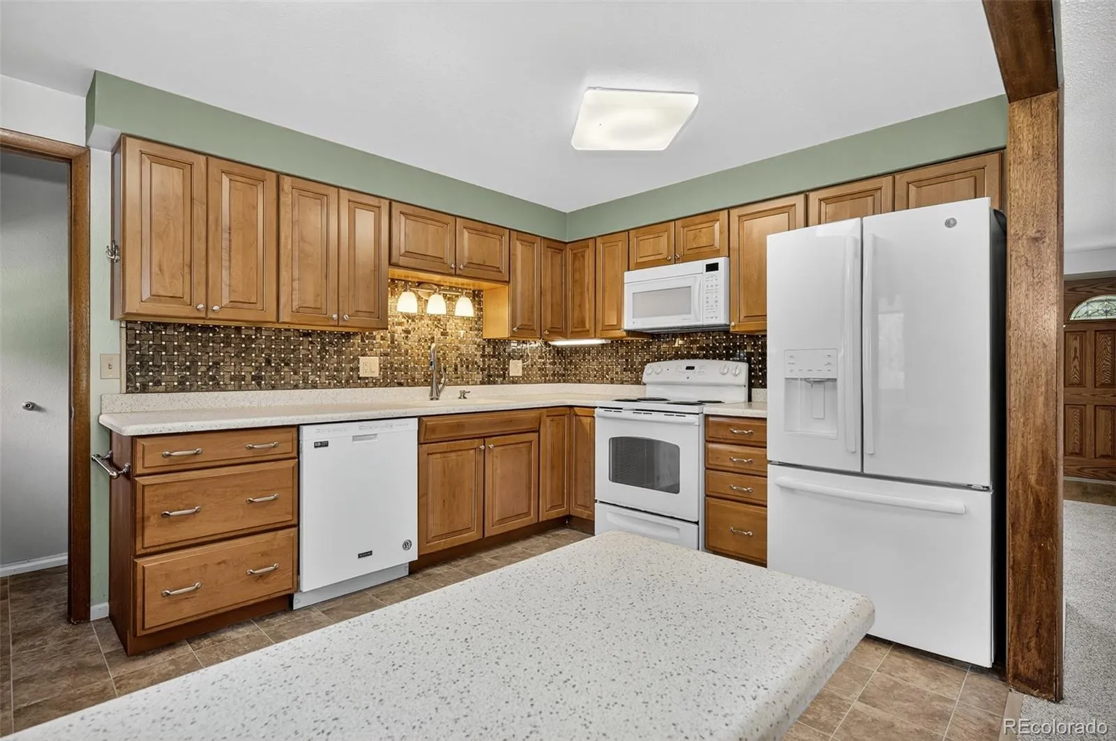 The open layout offers lots of living space. The kitchen features wood cabinets, soft close drawers, microwave, oven and refrigerator. The countertops are solid surface for easy cleaning. Spacious family room with three bedrooms on the main floor with two bathrooms. Don’t miss the **large backyard** is perfect for outdoor enjoyment with **storage sheds, a sprinkler system in the front and back, and room for gardening, a true gardener’s delight! Centrally located near Arvada, you’ll enjoy convenient access to parks, recreational areas, shopping, and more. Don’t miss the opportunity to make this well-maintained and spacious home yours. Notables, newer furnace, electrical panel, hot water heater, new smoke/carbon monoxide detectors, new carpet and paint this year, new roof.