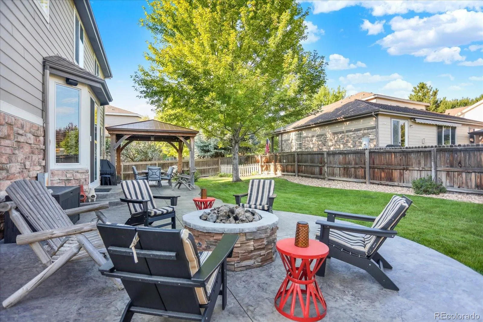 Imagine summer evenings in your backyard oasis— your friends gathered under the cozy gazebo, music flowing through the outdoor speakers, kids laughing around the natural gas fire pit, and dinner sizzling on your in line natural gas Weber grill. With lush landscaping, a spacious patio, and views of the community park, every night feels like a getaway.
