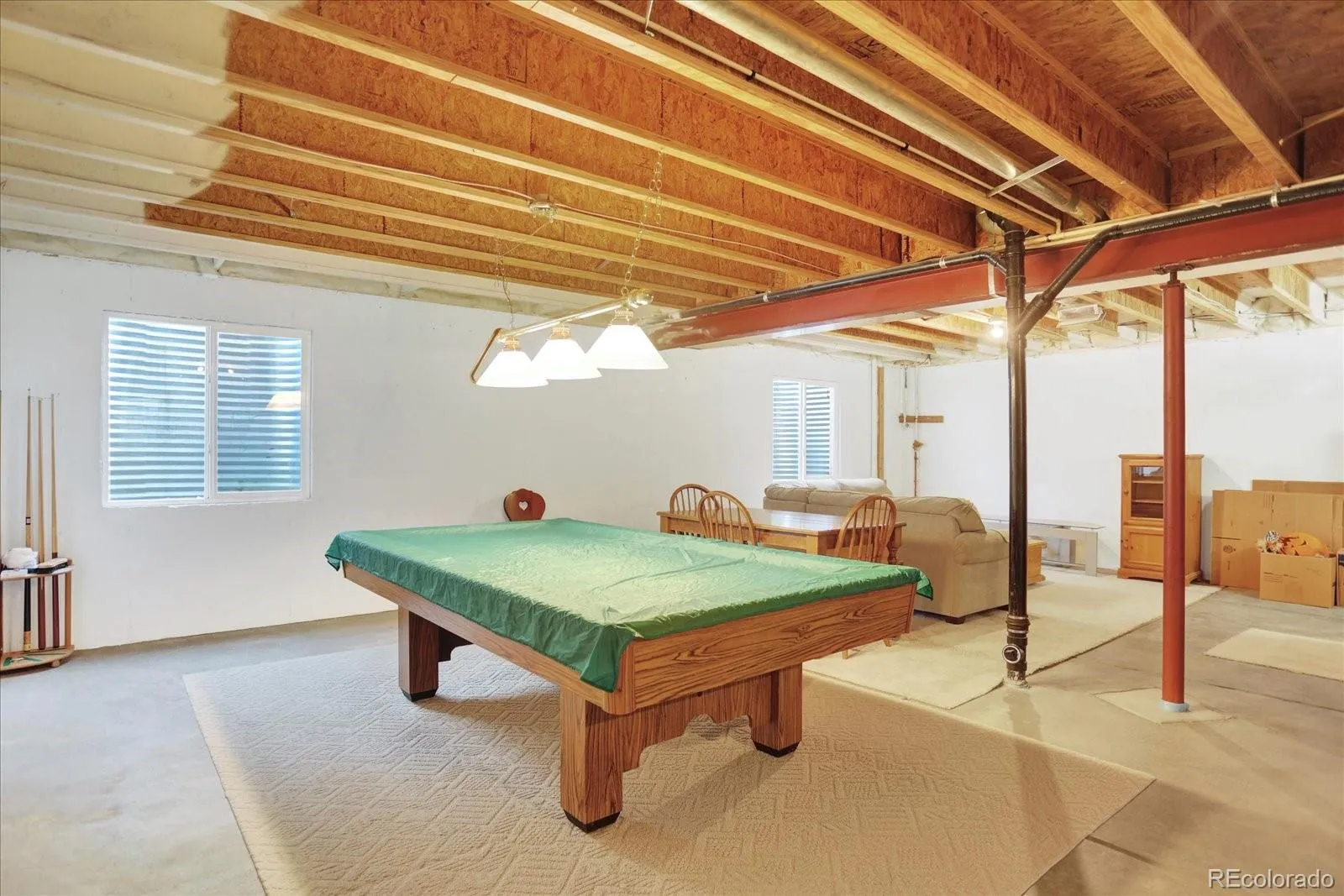 Upstairs, you can retreat to four bedrooms and a grand loft that overlooks the living room—perfect for family movie nights or a home office. Downstairs, a massive unfinished basement offers endless possibilities and a pool table is ready for game night.
