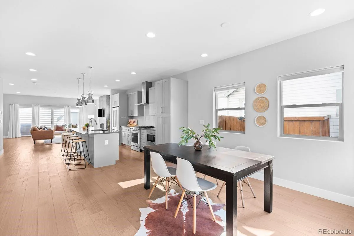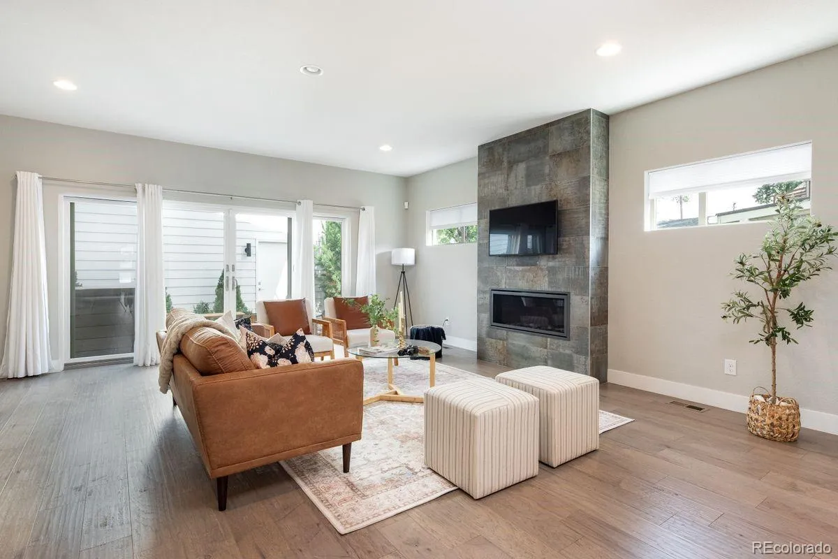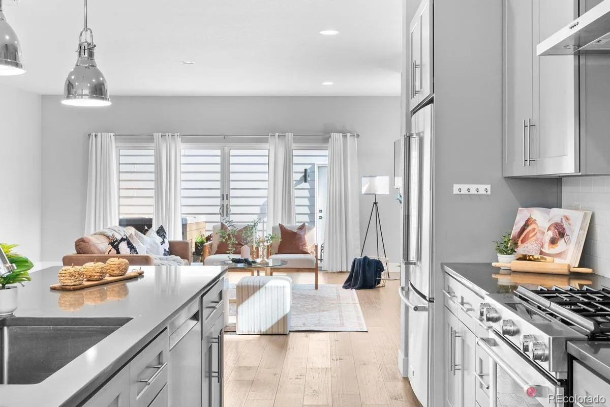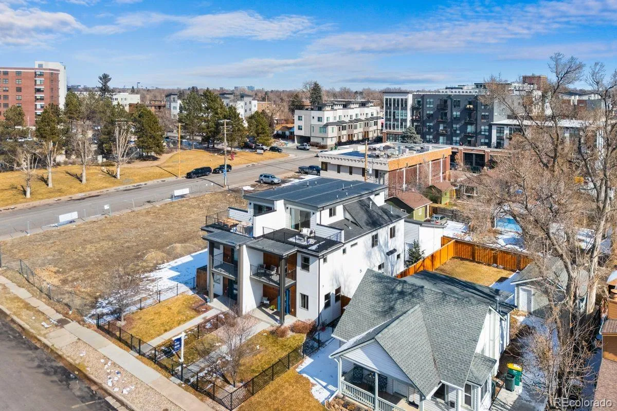 SoBo living redefined—modern, elegant, and perfectly located. This stunning attached home features 4 bedrooms, 4 bathrooms, and more than 2,300 square feet of beautifully finished living space spread across three levels. Perfectly positioned within walking distance to trendy restaurants, lively bars, Swedish and Craig Hospitals, and the Light Rail, it offers the ideal blend of urban convenience and sophisticated style. Step inside to an open, light-filled floor plan with soaring 9-foot ceilings, wide-plank engineered hardwood floors, quartz countertops, Italian tile, and a sleek wide-format gas fireplace. The custom chef’s kitchen is a showstopper with premium KitchenAid appliances, a 5-burner gas range, and an oversized island—an entertainer’s dream. Upstairs, you’ll find three generously sized bedrooms, including a luxurious primary suite complete with a spacious walk-in closet, spa-inspired shower, and private covered deck. A fully furnished laundry room adds ease and functionality on this level. The rooftop deck is the crown jewel, showcasing breathtaking mountain views, a loft area, wet bar, half bath, and a flexible additional room—ideal for a fourth bedroom, home office, or creative retreat. Other highlights include dual furnaces and A/C units, expansive sliding doors opening to a private patio and backyard with hot tub, and a large 2-car garage. A 929-square-foot unfinished basement offers endless potential for customization. As the southern unit, this home enjoys maximum natural light throughout the day. Take the full tour and video at www.3522SouthOgden.com. Don’t miss this rare opportunity to own a modern masterpiece in one of Denver’s most sought-after neighborhoods!