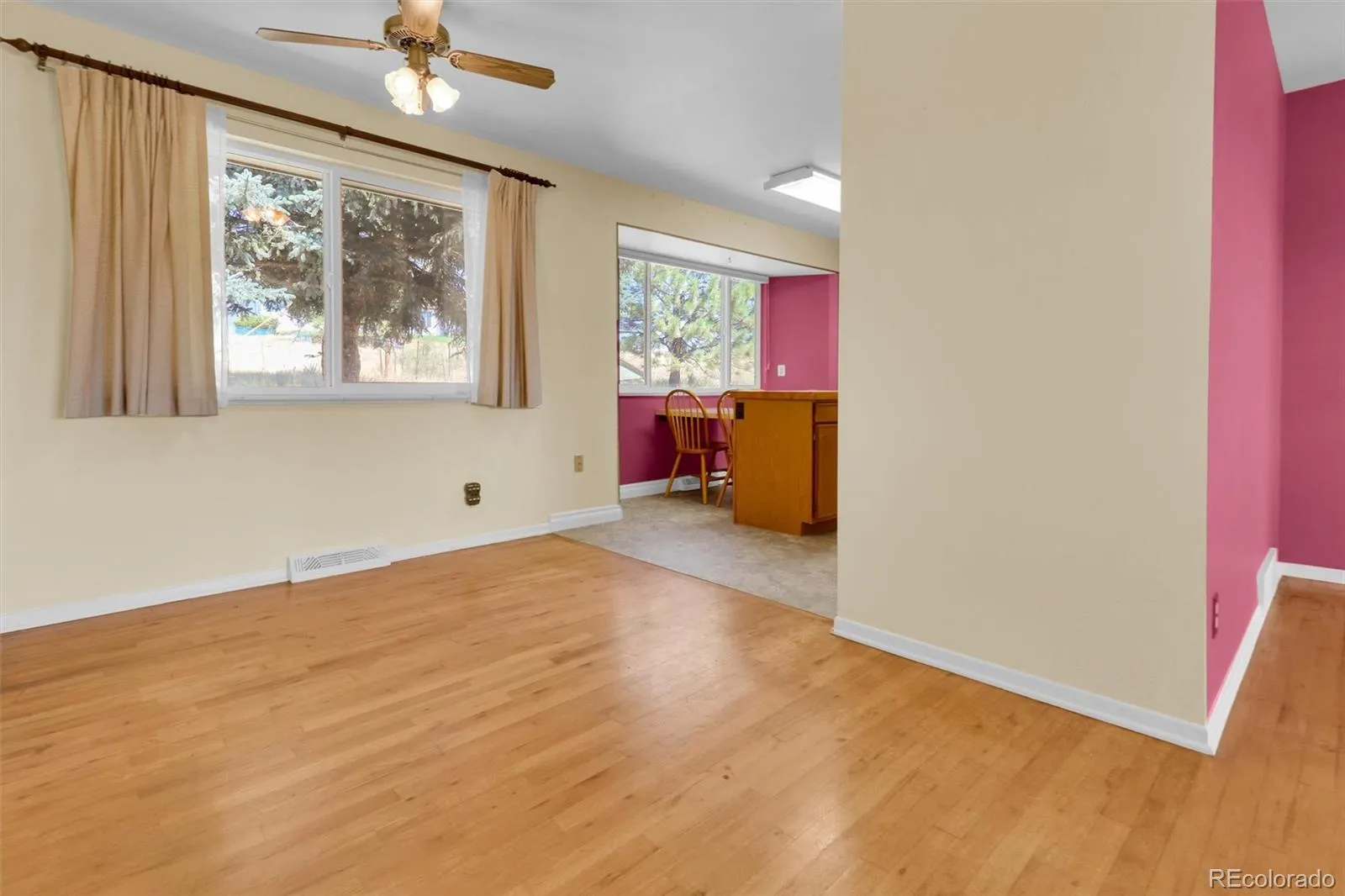 Inside, the home offers a thoughtful layout designed for both everyday living and entertaining. The inviting family room features a cozy wood-burning fireplace, perfect for gathering on cool Colorado evenings. A separate living room and dining room provide flexibility and space for hosting, while the eat-in kitchen offers a warm, casual setting for daily meals with views of the surrounding property. A private study on the lower level could also serve as a 4th bedroom, home office, or guest space—tailored to your lifestyle needs.