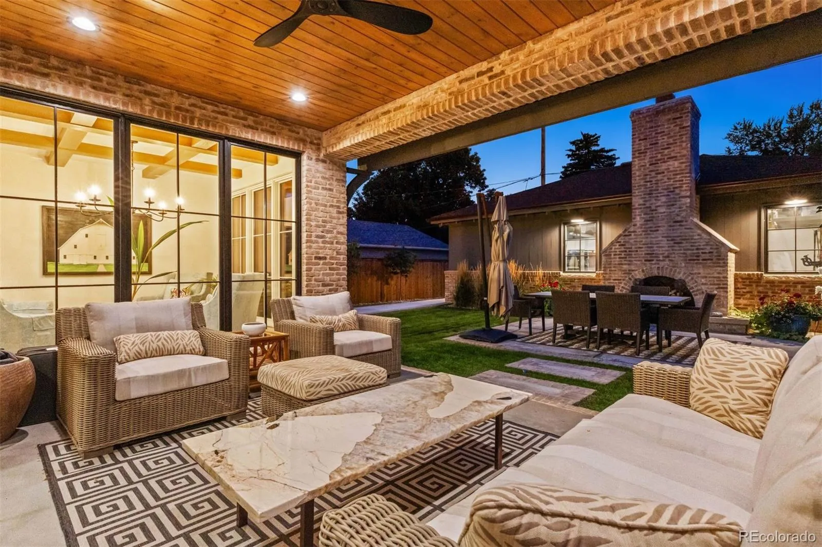 The finished lower level with soaring ceilings adds space for leisure and wellness, including a full bar, game and family rooms, gym, guest suite, and storage. The lot itself is designed for entertaining with a covered patio, additional brick patio with gas fireplace, and an oversized three-car garage. With premium finishes, exceptional outdoor living, and a sought-after location near Denver’s top schools and parks, this home defines elevated Observatory Park living.