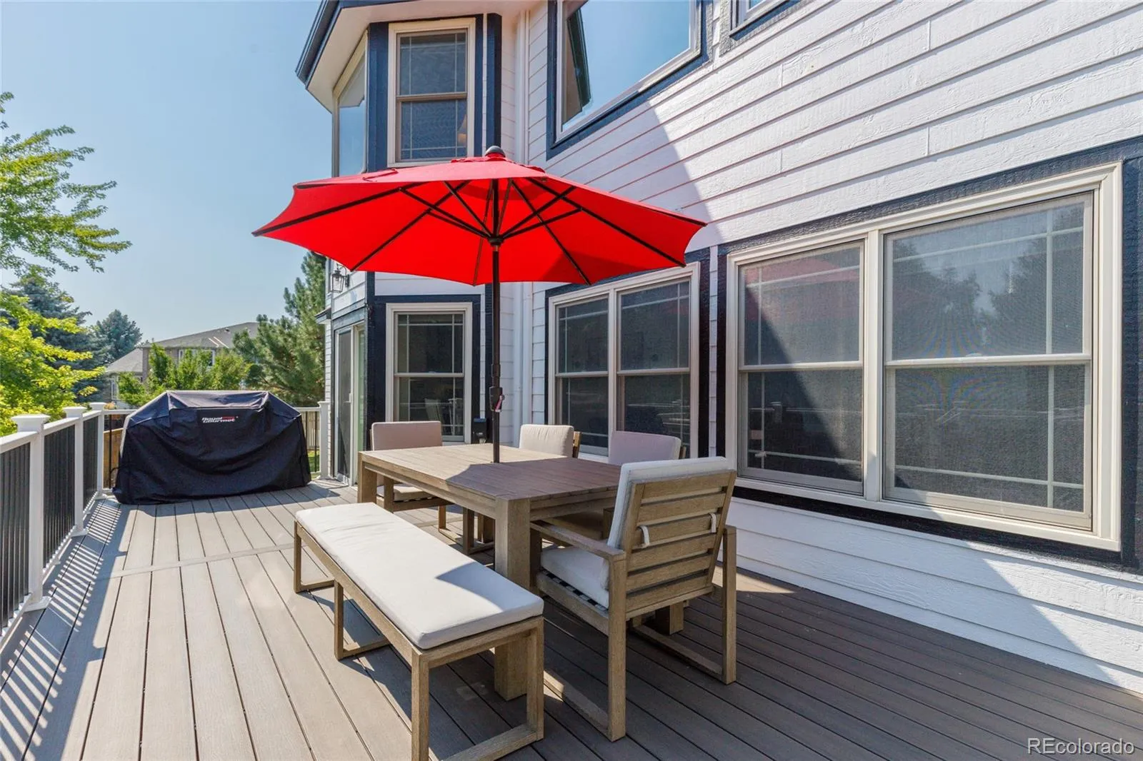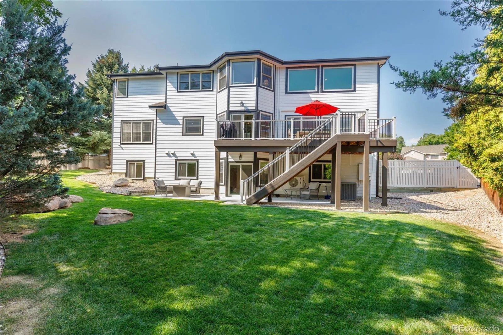 Exceptional Luxury Living in Country Estates. Welcome to 583 Redstone Drive, a stunning 5-bed, 5-bath residence perfectly positioned on a spacious corner lot in the desirable Country Estates subdivision. Boasting an unparalleled location just 15 miles from both downtown Denver and Boulder, this home offers the ideal blend of serene living and urban convenience, all within the acclaimed Boulder Valley School District. Step inside nearly 4800 finished square feet to discover a beautifully updated open floor plan flooded with natural light. The heart of the home is the chef’s kitchen, fully remodeled with quartz countertops, a gas stove, and new lighting. Every detail has been considered, from the fresh interior and exterior paint to the new white oak hardwood floors, remodeled staircase, updated surrounding tile of the fireplace, new Hanson windows with new front door and Anderson sliding glass doors and screens on the back deck and basement walkout. The primary suite is a true retreat, featuring a luxurious bathroom with heated floors, a 6-foot soaking tub, a walk-in shower, and anti-fog mirrors. Enjoy ultimate comfort with a supplemental A/C unit serving the primary and family room, plus a newer furnace and water heater. Outside, your private oasis awaits with a brand-new deck and a professionally landscaped yard featuring a new exterior patio with sensor lighting. The expansive lot includes a circular driveway and a 3-car sideload garage. This move-in-ready masterpiece truly has it all with plenty of recreational opportunities including the Eagle Trace Golf course and plenty of walking and bike riding trails that feature the Lake Link trail and Country Estates Park with basketball, roller hockey, play area for kids and baseball and soccer fields.