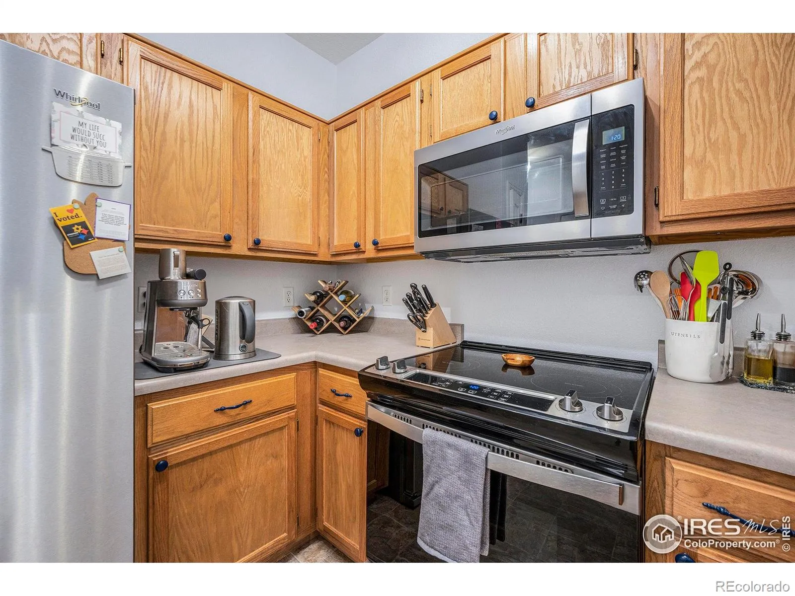 Enjoy the privacy and comfort of one of Fort Collins’ most desirable condominium communities! This move-in ready condo is filled with modern updates, fresh paint, and thoughtful touches throughout. The bright and spacious living room is flooded with natural light and opens to a sunny, south-facing balcony-perfect for year-round relaxation. The updated kitchen features 2023 appliances, hardwood cabinets, and plenty of counter space. Both bedrooms include large closets, with the primary easily accommodating a king bed plus furniture. A versatile second bedroom or office adds flexibility to the layout. Major systems have already been taken care of with a new furnace and A/C in 2024 and a newer roof in 2020, giving you peace of mind for years to come. Located in the clubhouse building, you’ll have direct access to fantastic amenities right outside your door, including a fitness center, clubhouse, and newly updated pool (2025), year-round spa/hot tub (installed November 2024), community gardens, and upcoming EV charging stations. Garage spaces are also available for rent. Beyond the community, you’ll love the easy access to Fossil Creek Park, scenic trails, shopping, dining, and the MAX Transit South Station for quick trips downtown or to CSU. With a top-rated school district and endless conveniences nearby, this condo offers a perfect blend of comfort, convenience, and low-maintenance living in the heart of Fort Collins.