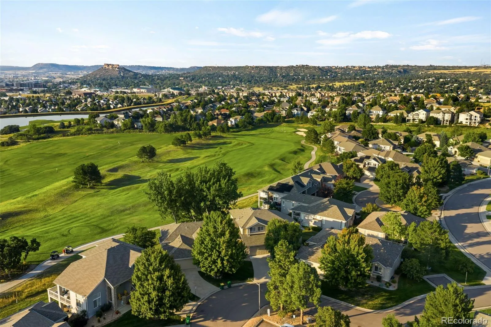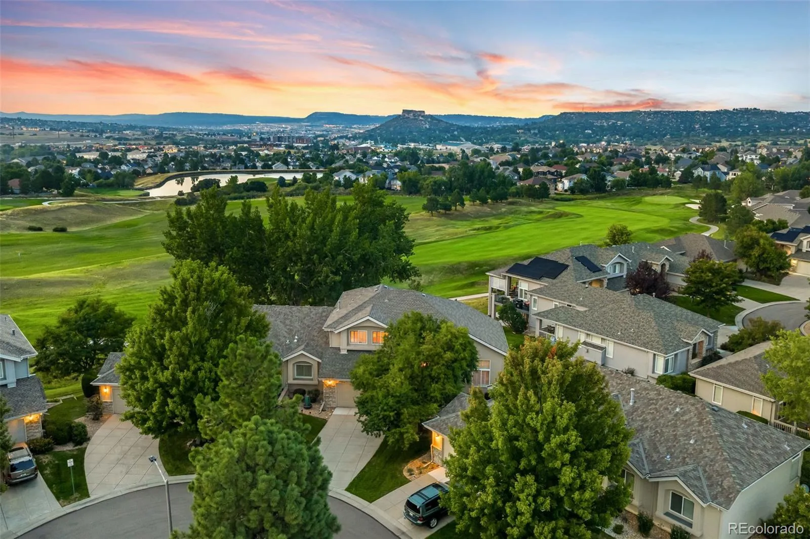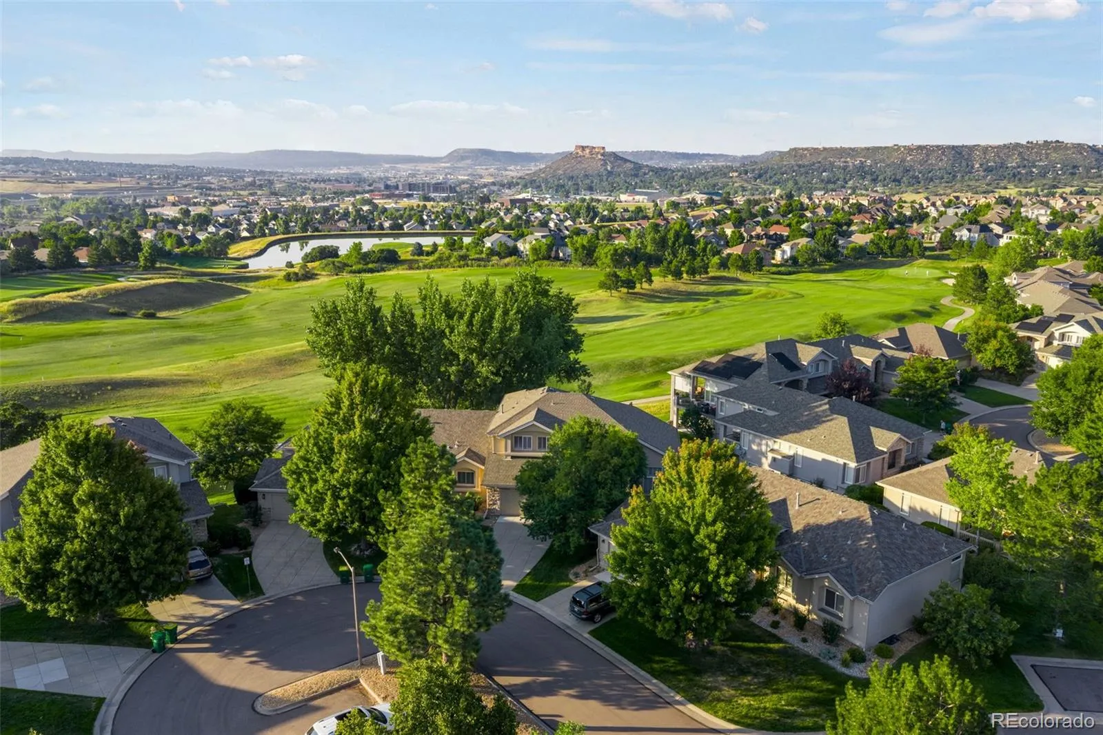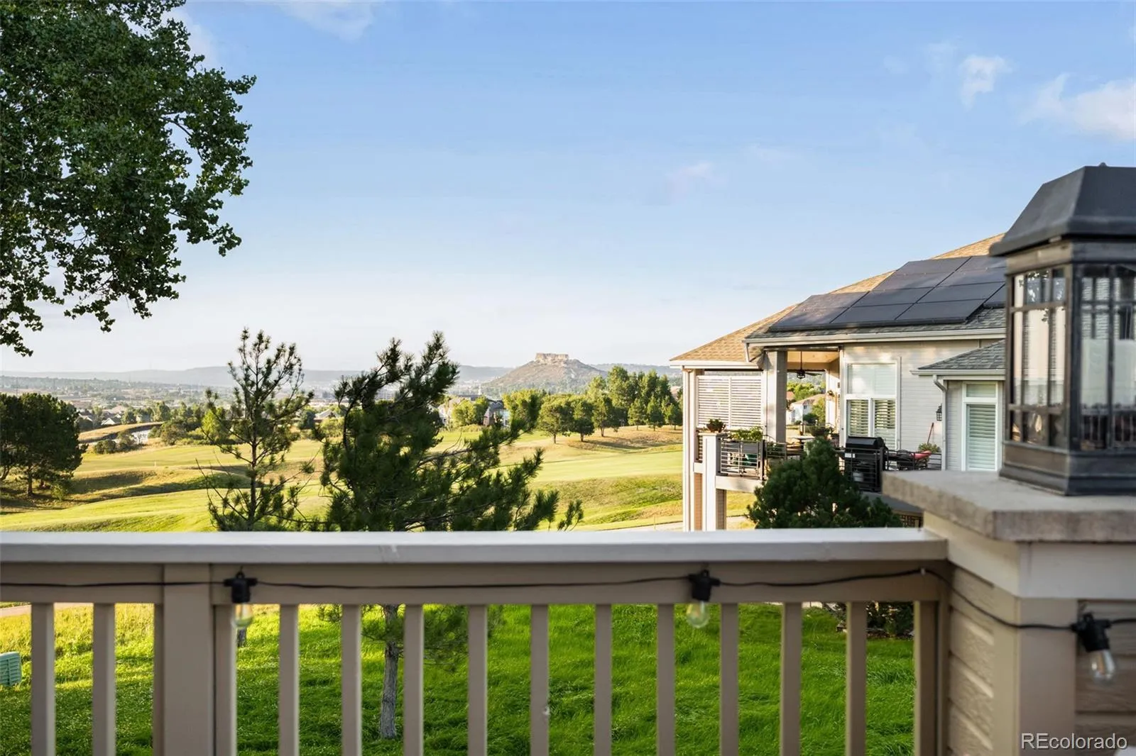 Perfectly positioned on the 10th tee box of Plum Creek Golf Course, this beautiful home offers some of the most sought-after views in Castle Rock. From the moment you enter, you are greeted by sweeping vistas of the course, the town, and the iconic Castle Rock formation that defines the community. Expansive windows and a spacious back deck perfectly frame the scenery, creating a backdrop that feels like a work of art. Whether you’re entertaining friends, sharing a family meal, or sipping your morning coffee, the views here are truly unmatched. Inside, the home is designed for both comfort and style. Soaring windows with custom shutters bring in natural light and showcase the views from nearly every room. The walkout basement makes indoor-outdoor living seamless, placing you steps from the fairway. Guests will love their private lower-level suite with a bedroom, bathroom, and patio access—an ideal retreat where they can enjoy coffee while watching golfers tee off. With four bedrooms and four bathrooms, there’s room for everyone. The home features two inviting family rooms, a custom wet bar, wood cabinetry, granite countertops, and fresh paint throughout. Mature trees surround the property, creating a sense of seclusion and privacy despite the golf course setting. The lifestyle here is just as impressive as the home itself. The newly built Plum Creek Golf Club and renovated event center are right down the road, offering a celebrated new chef, live music, and a welcoming community atmosphere. You’ll also be close to Castle Rock’s best dining, shopping, and seasonal concerts. Plus, with I-25 only eight minutes away, commuting to Denver or Colorado Springs is simple and convenient. This home is more than a place to live—it’s a retreat, an entertainer’s dream, and a front-row seat to the very best of Castle Rock. Welcome to golf course living at its finest.
