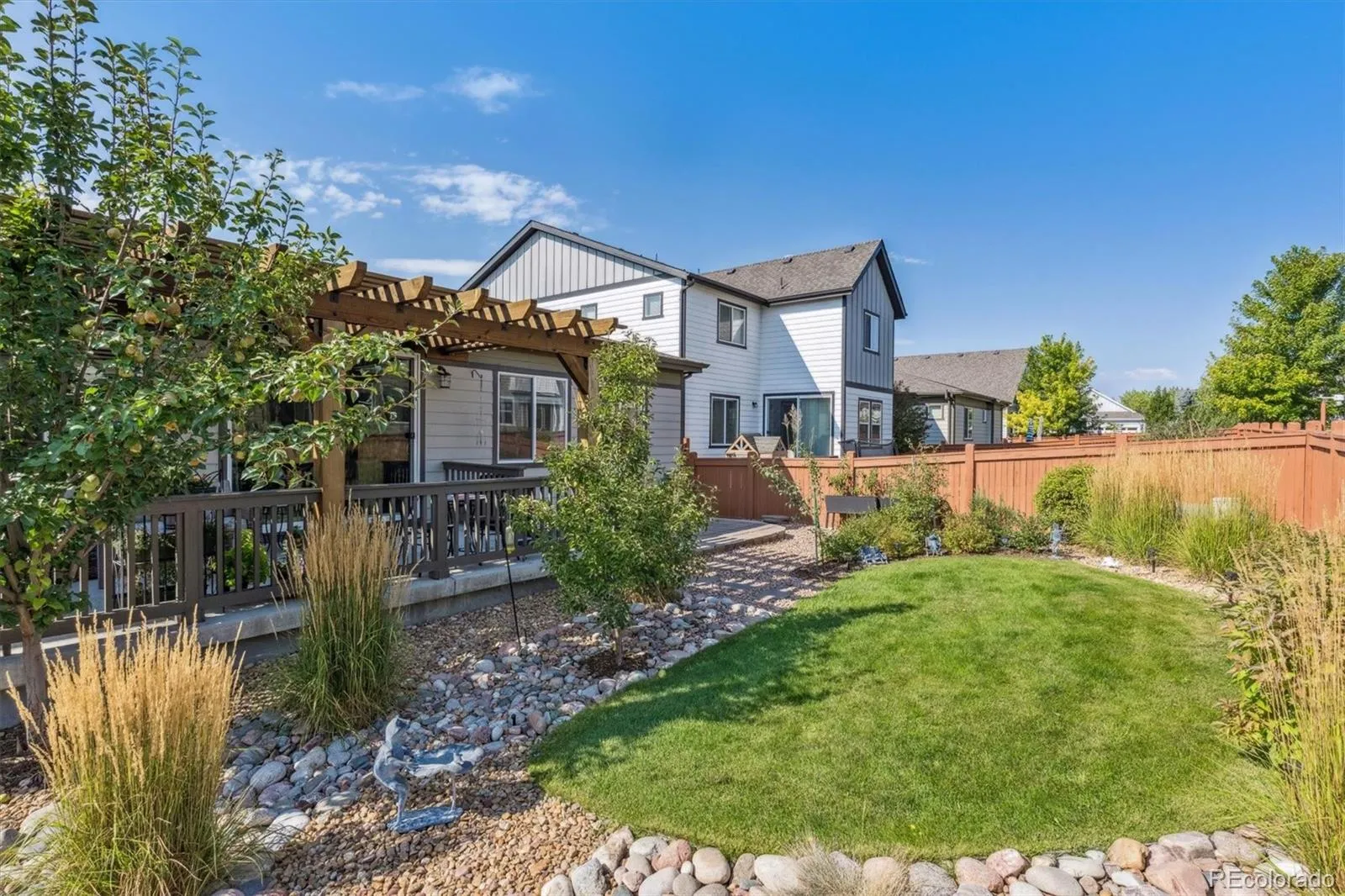 Step into this bright and spacious 2 bed, 2 bath with home office, ranch style home featuring lots of natural light throughout. The open-concept kitchen is equipped with granite countertops, white cabinets, stainless steel appliances, an island, a pantry, and is open to dining & living area. Ideal for cooking and entertaining. The cozy living room features high ceilings with a fan & light and access to the back patio via a large slider, perfect for indoor-outdoor living. Conveniently located laundry room with access to the primary bedroom closet and hallway. The spacious primary suite includes big windows, a ceiling fan, and an ensuite bath. Primary bath features double sinks, a walk in glass shower, a toilet room, and the spacious walk in closet. There’s an additional bedroom and office with full hall bath off the main hallway, sure to keep your guests feeling welcomed! The large unfinished basement is bright and open with great potential. Enjoy your beautiful custom landscaped fenced backyard with new pergola! Live close to great schools, parks, trails, palisades park amphitheater, and many more! You’re a short drive to Top Golf, Children’s Hospital North, and the Orchard Town Shopping Center. Stellar access to Downtown Lafayette, Downtown Louisville, with easy commute off I-25 & more. This thoughtfully designed home combines comfort and style, making it a perfect fit for everyday living and memorable gatherings. You won’t want to miss this one! Come see today!
