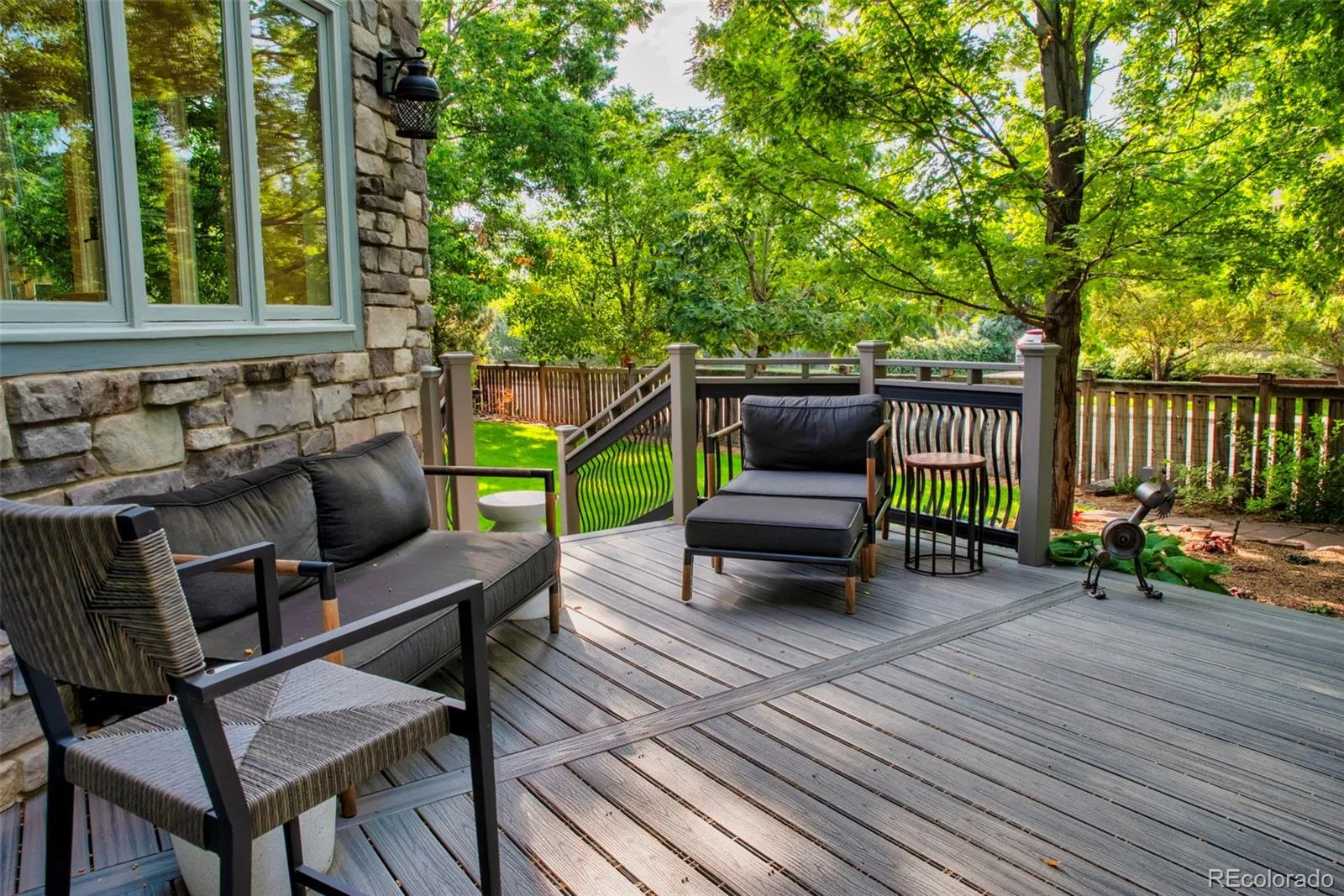 This pristine, spacious North Boulder two-story blends classic design with modern updates, featuring a brand-new kitchen with high-end appliances, a custom pantry, and an eat-in area that connects seamlessly to the sunken living room and formal dining room. Beautiful wood floors, custom finishes, a formal living area and a bright private office complete this functional main level layout. Upstairs are four generous bedrooms and three remodeled baths, including a primary suite with a designer spa-like five-piece bath, and a large walk-in closet. The finished basement is filled with natural light from egress windows and offers its own bedroom area, full bath, and flexible living space. Additional highlights include a three-car garage with epoxy floors and beautiful windows and built in storage, newer composite decking and fencing, and a large fenced yard on a desirable corner lot with mature trees. Thoughtful landscaping and custom deck railings complete this residence that captures the essence of North Boulder living.
