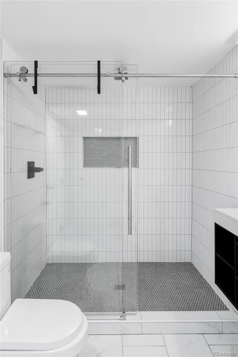 Inside, the open-concept main level features a brand-new gourmet kitchen with a waterfall island, all-new appliances, and bright, airy living and dining spaces. Two spacious bedrooms and two beautifully tiled baths — including a master suite — complete the upstairs.