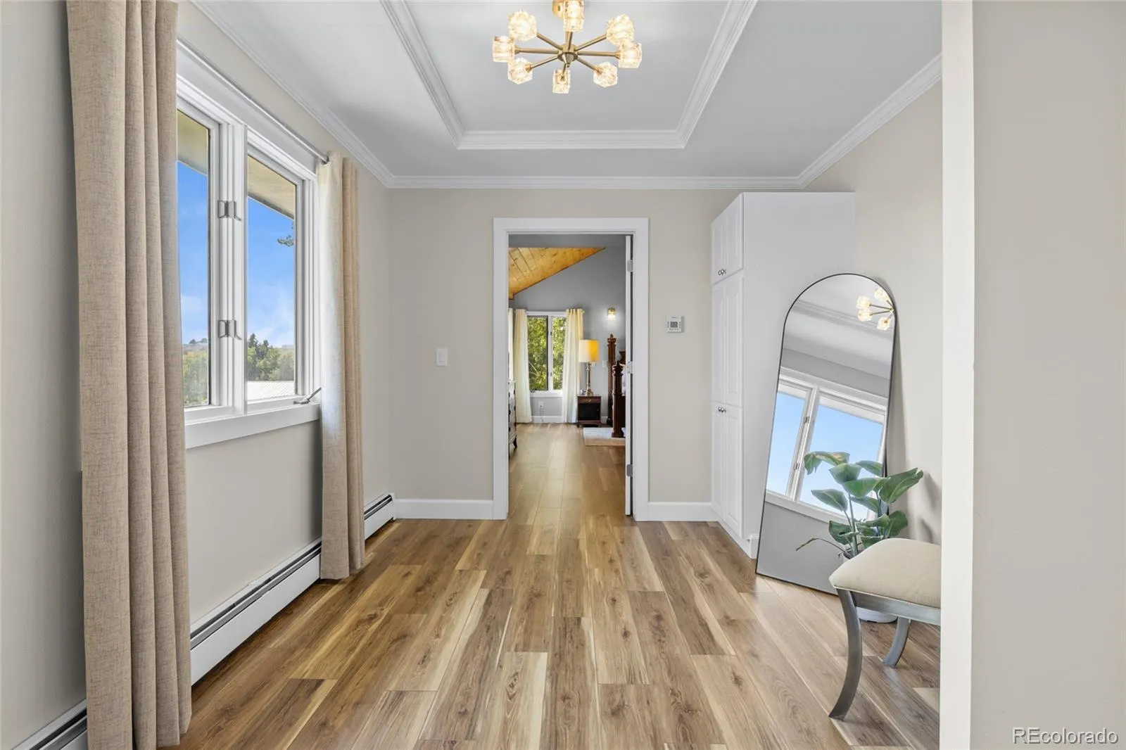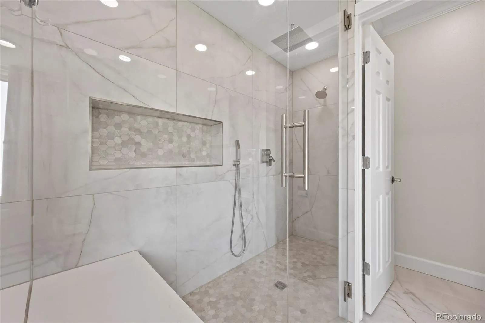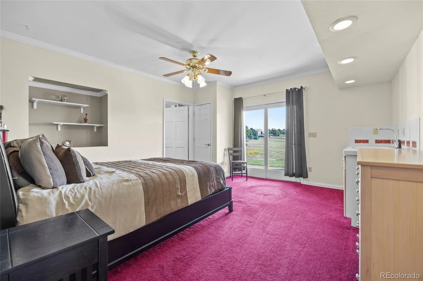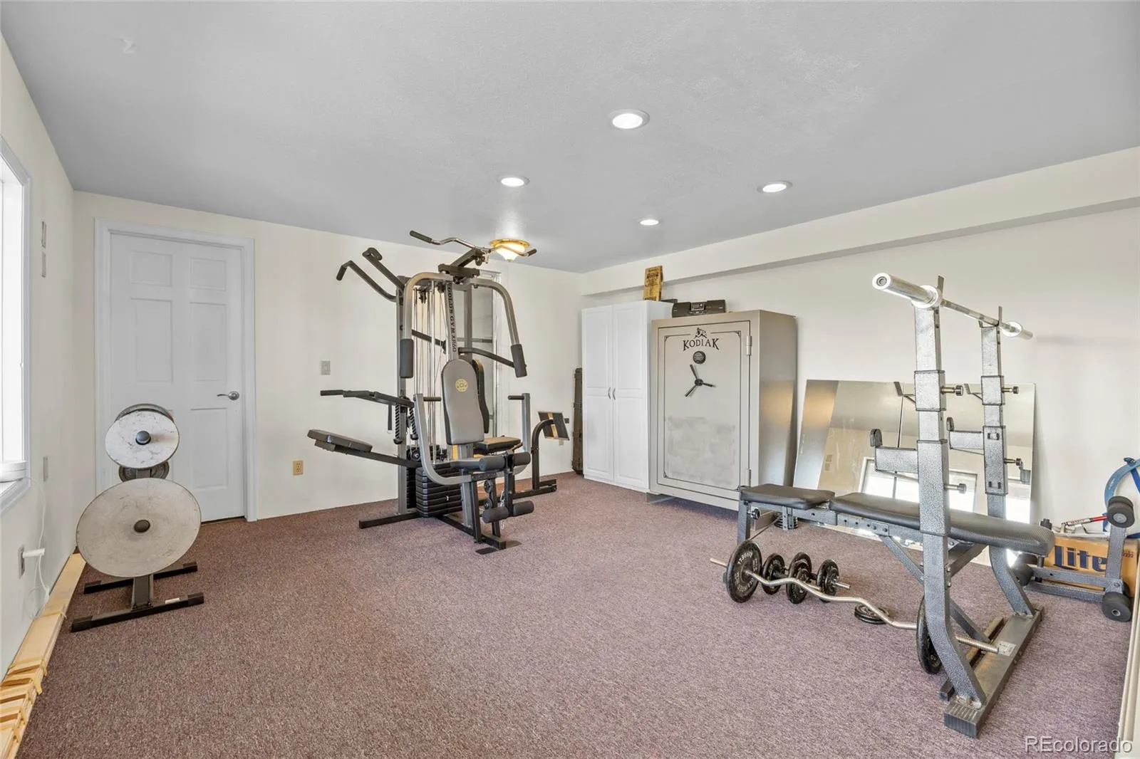The gourmet kitchen features granite counters, a gas range, and double smart ovens, opening into living and dining spaces designed for both hosting and everyday ease. Storage is abundant throughout the home—including a perfect space for wine aging or canning enthusiasts to store homemade goods. After a workout, unwind in the basement shower room (with potential to convert to a steam room), or step onto the wrap-around porch to soak in sweeping Colorado views.