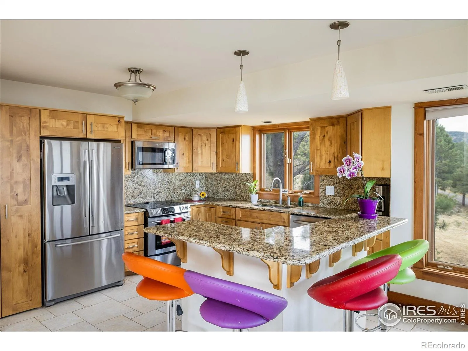 $20,000 Seller-provided credit offered to a buyer for closing costs and pre-paids! COLORADO DREAMING: Enjoy a majestic 180 degree view of sunrise, moonrise, and sparkly city lights, with uninterrupted scenery stretching across the mountains, plains and Boulder Reservoir – often accompanied by hummingbirds, deer, and foxes. This retreat-style home is only 10 minutes to Broadway in the sought-after Boulder Heights community and offers a breathtaking vantage point designed to maximize light and flow blending comfortable everyday living with thoughtful updates throughout. The main level invites you in with dramatic vaulted ceilings, walls of windows, and skylights that flood the space with sunshine. A dual-sided fireplace warms both the living and dining areas, while radiant-heated tile floors add comfort. The kitchen combines modern style and function with a generous island, wood cabinetry, stainless appliances, and a pantry. From here, step out to the expansive deck to grill, gather with friends, or simply take in the scenery. Upstairs, the primary suite serves as a true retreat with vaulted ceilings, skylights, and a private balcony to frame the views, while the spa-like bath has been fully reimagined with a soaking tub, oversized shower, and custom dual vanity. Two additional vaulted bedrooms share a full bath, providing plenty of space for family or guests. The lower level adds flexibility for a media room, home office, gym, or creative studio, complete with radiant-heated wood flooring. Practical amenities include an oversized two-car garage with storage, extra driveway parking, backup generator, county-maintained road access and BVSD bus service. Enjoy both peace of mind and the quintessential mountain lifestyle-just minutes from downtown Boulder. All offers considered.