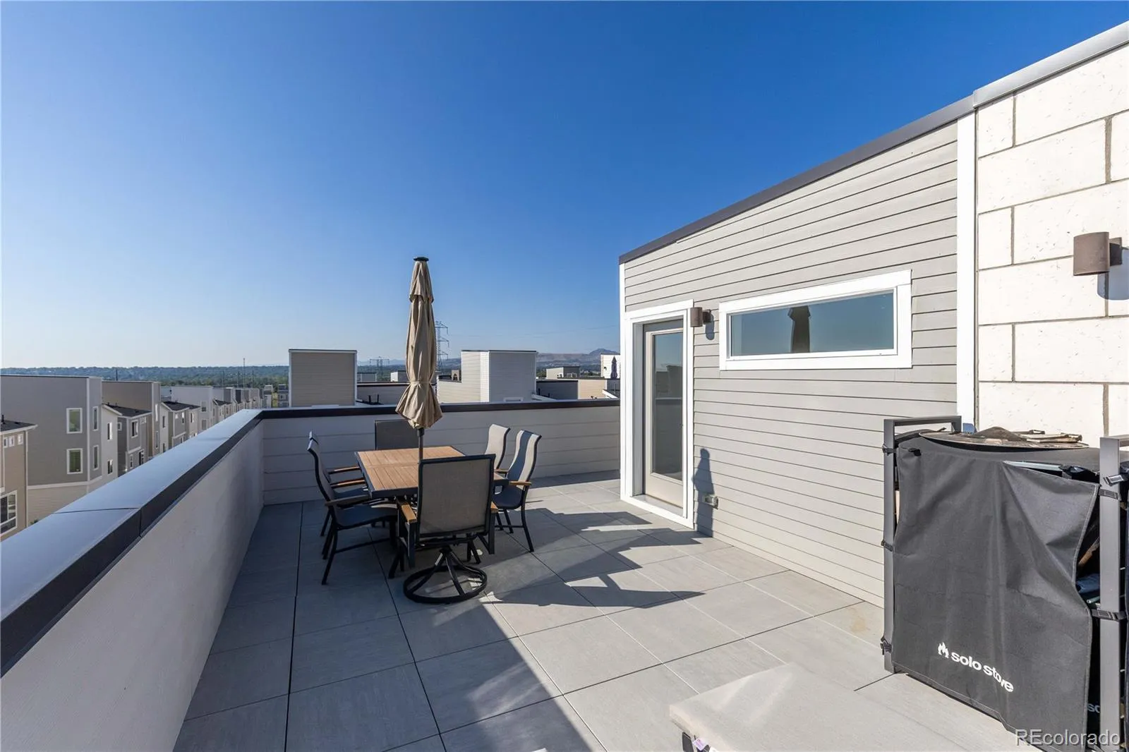 The top level is a true highlight: an expansive rooftop terrace with breathtaking panoramic mountain views, the ideal spot to relax or entertain while soaking up the Colorado sunshine. This home stands out with thoughtful upgrades throughout, including blackout custom-fit blinds in the primary and guest bedrooms, tankless water heater with copper piping, and a premium $8,500 appliance package with a high-end refrigerator, washer, and dryer—all included. The unique floor plan features an XL kitchen and a spacious primary bathroom, offering a layout that goes beyond the standard models.