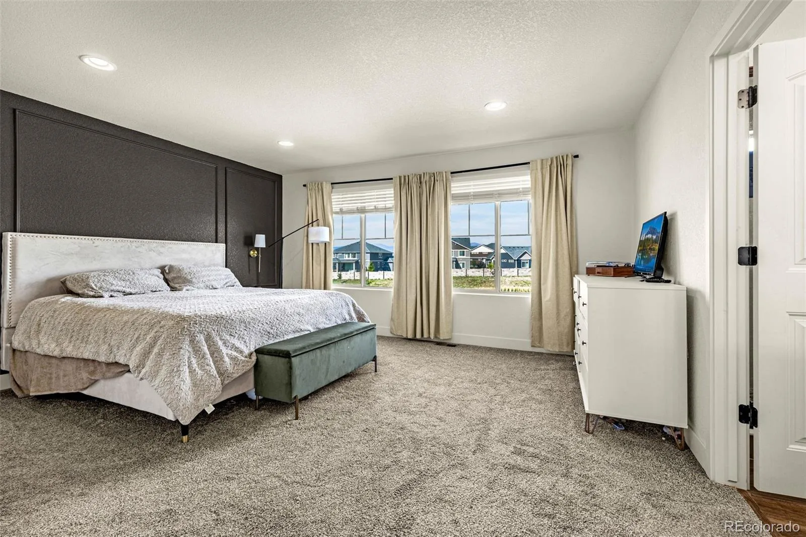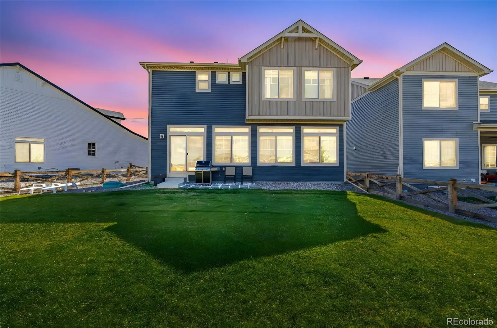 Welcome to this beautiful better than new model home featuring 3,298 total square feet of thoughtfully designed living space. From the inviting covered front porch to the tasteful stone-clad exterior, this home makes a lasting first impression with timeless curb appeal. Perfectly situated just off Woodmen Road and Banning Lewis Parkway, it offers both comfort and convenience with direct access to one of Colorado Springs’ most desirable master-planned communities. The open-concept main level showcases luxury vinyl plank flooring, oversized windows that fill the home with natural light, and a spacious living room that flows seamlessly into the dining area and gourmet kitchen. The chef’s kitchen boasts stainless steel appliances, custom cabinetry, quartz countertops, and a large center island—perfect for family gatherings and entertaining guests. Upstairs, the private primary suite provides a true retreat with a spa-inspired bath, dual sinks, and a walk-in closet. Two additional bedrooms, a full bathroom, a versatile loft space, and a conveniently located laundry room complete the upper level. On the main floor, a dedicated home office or playroom adds flexibility, while the unfinished basement offers room to grow. Step outside to enjoy a low-maintenance yard ideal for play, relaxation, or summer barbecues. Living in Banning Lewis Ranch means access to award-winning schools, acres of parks, miles of scenic trails, community pools, playgrounds, and a state-of-the-art recreation center. This home is move-in ready and designed with today’s modern family in mind, offering the perfect blend of style, function, and location. Hurry this home will not last long!