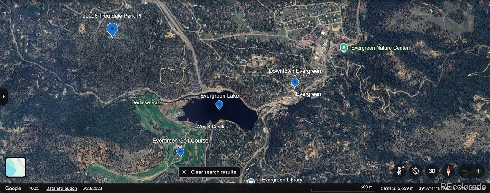 This elegant Evergreen patio home with main-floor master suite provides a very rare combination of easy, luxurious mountain living walking distance to town. It’s literally a walk in the park to Bear Creek, Evergreen Lake and Downtown Evergreen with restaurants, shops and entertainment. Your backyard is Dedisse Park and hundreds of acres of protected open space. Walk right out your door to explore a vast network of hiking and biking trails, row or paddle on Evergreen Lake, golf at the acclaimed Evergreen Golf Course, fish in Bear Creek, or shop and dine Downtown. While the exterior is framed by towering pines, aspen groves and rock outcroppings, the interior is defined by vaulted ceilings, wood beams and trim, hardwood floors, an open floor plan, walls of windows, exquisite finishes and artistic styling throughout. The just completed tiered stone patio provides 800 sq ft of luxury outdoor living space with built-in gas fire pit, fountain, outdoor kitchen, landscaping and sprinkler system. Additionally, two large decks on the main and walk-out levels overlook the park. If you’ve never heard the elk bugle (or even if you have), you’re in for a treat as you soak in the hot tub or gather with family and friends around the fire pit. This house is an entertainer’s dream inside and out. The newly remodeled kitchen includes Bosch appliances, leathered and live edge granite counters, hammered copper farm sink, rustic wood backsplash and artisan glass cabinet faces. Features such as heated tile floors, a steam shower and heated bathtub dial up the luxurious comforts of this home. The improvements don’t stop there, this home has new: Class 4 hail resistant roof, furnace, central air, hot water heater, refinished hardwood floors and smart security cameras. Everyone who visits this home is bedazzled by its special charm. There’s nothing to do but settle in and enjoy the very special lifestyle this property offers.
