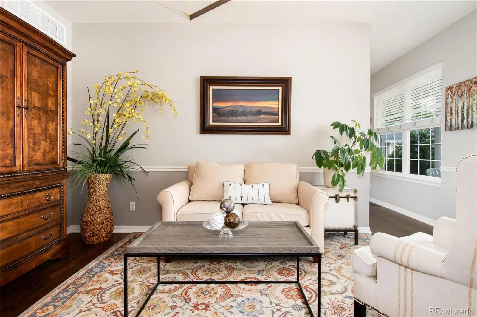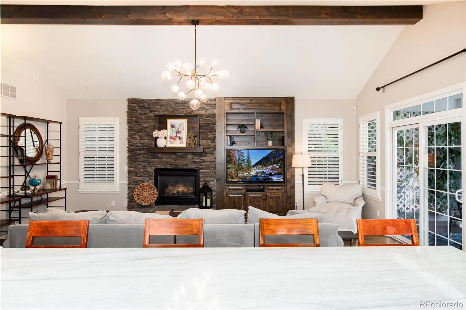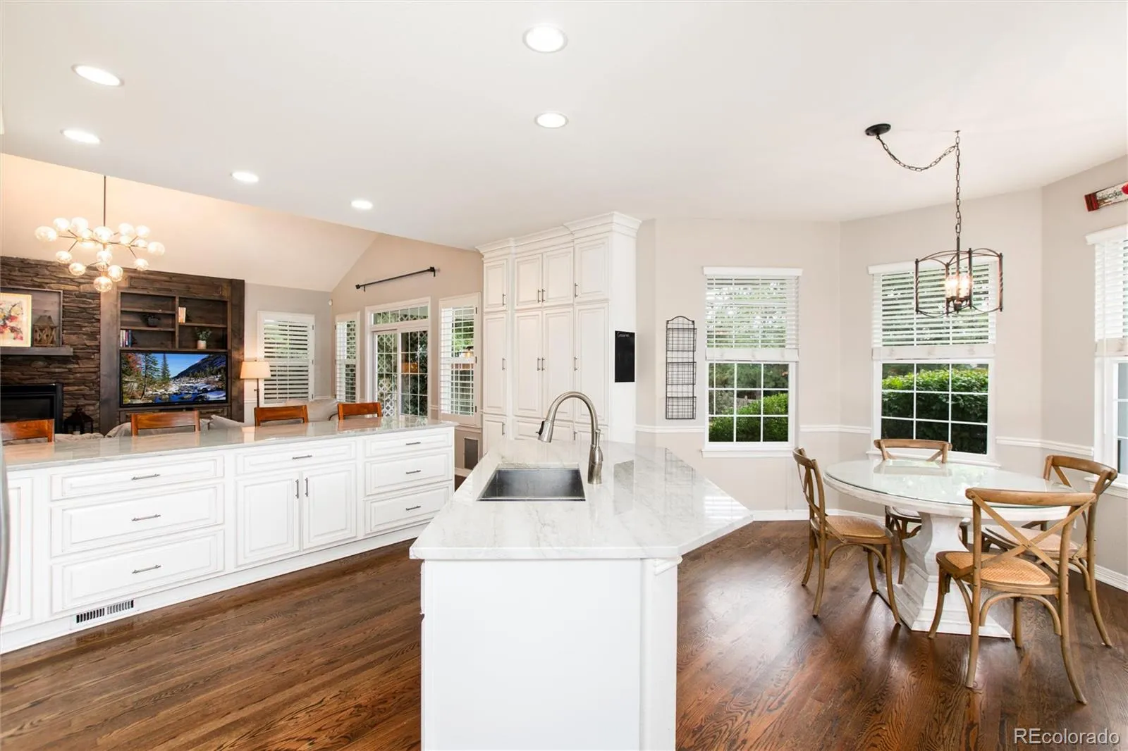 This beautiful home lives like a ranch. Main floor Primary bedroom. This home is offering an ideal blend of style, comfort, and functionality in the highly desired Howarth Farm within The Hamlet at Columbine. Situated on a quiet cul-de-sac, this gorgeous community and charming curb appeal welcome you home. The main floor features a stunning updated primary suite with a large custom walk-in closet, abundant natural light, and a beautifully remodeled five-piece bath. The versatile second bedroom on the main floor is perfect as a home office or workout space, with a convenient three-quarter bath just outside the door. The chef’s kitchen is fully updated with stainless steel appliances, a spacious island, and ample cabinet storage, flowing seamlessly into an inviting family room. The family room boasts a gorgeous brick fireplace, built-ins, vaulted ceilings, and updated lighting, with direct access to the back patio—perfect for entertaining or relaxing. A bright and stylish dining room with updated lighting connects to the living room, creating an open and welcoming space for gatherings. The main-floor laundry room is thoughtfully located for convenience, adding to the functionality of this floor. Upstairs, you’ll find two additional bedrooms separated by a full bath and a spacious loft area that can be used as a playroom, office, or flex space to fit your lifestyle. The partial basement is unfinished and ready for you to make your own, offering lots of extra space and storage. Enjoy the outdoors with a wraparound covered porch, stamped concrete patio, and a tranquil water feature—perfect for entertaining or relaxing in your private backyard. This home offers a seamless combination of elegance, comfort, and versatility in one of Littleton’s most sought-after communities.