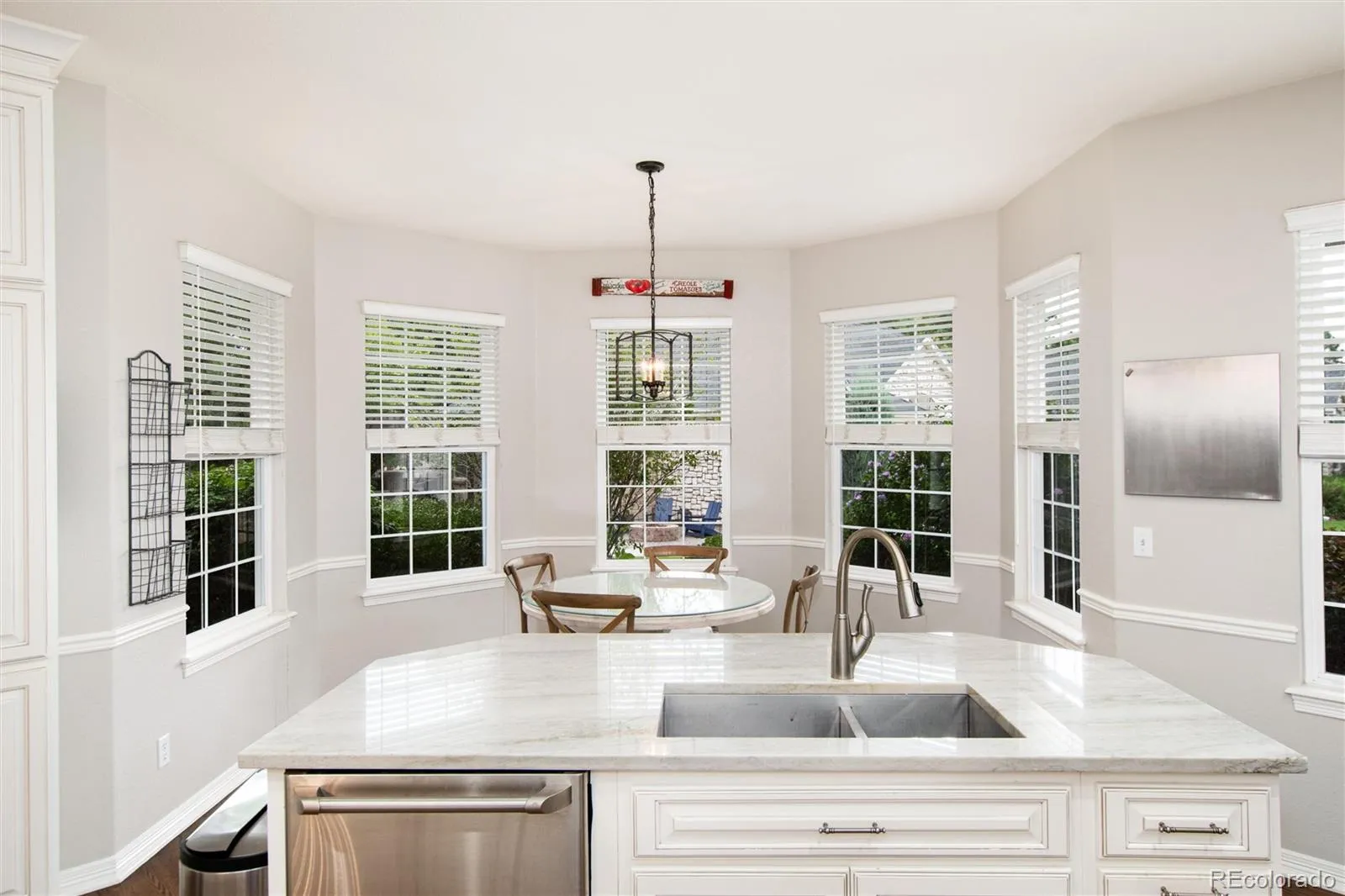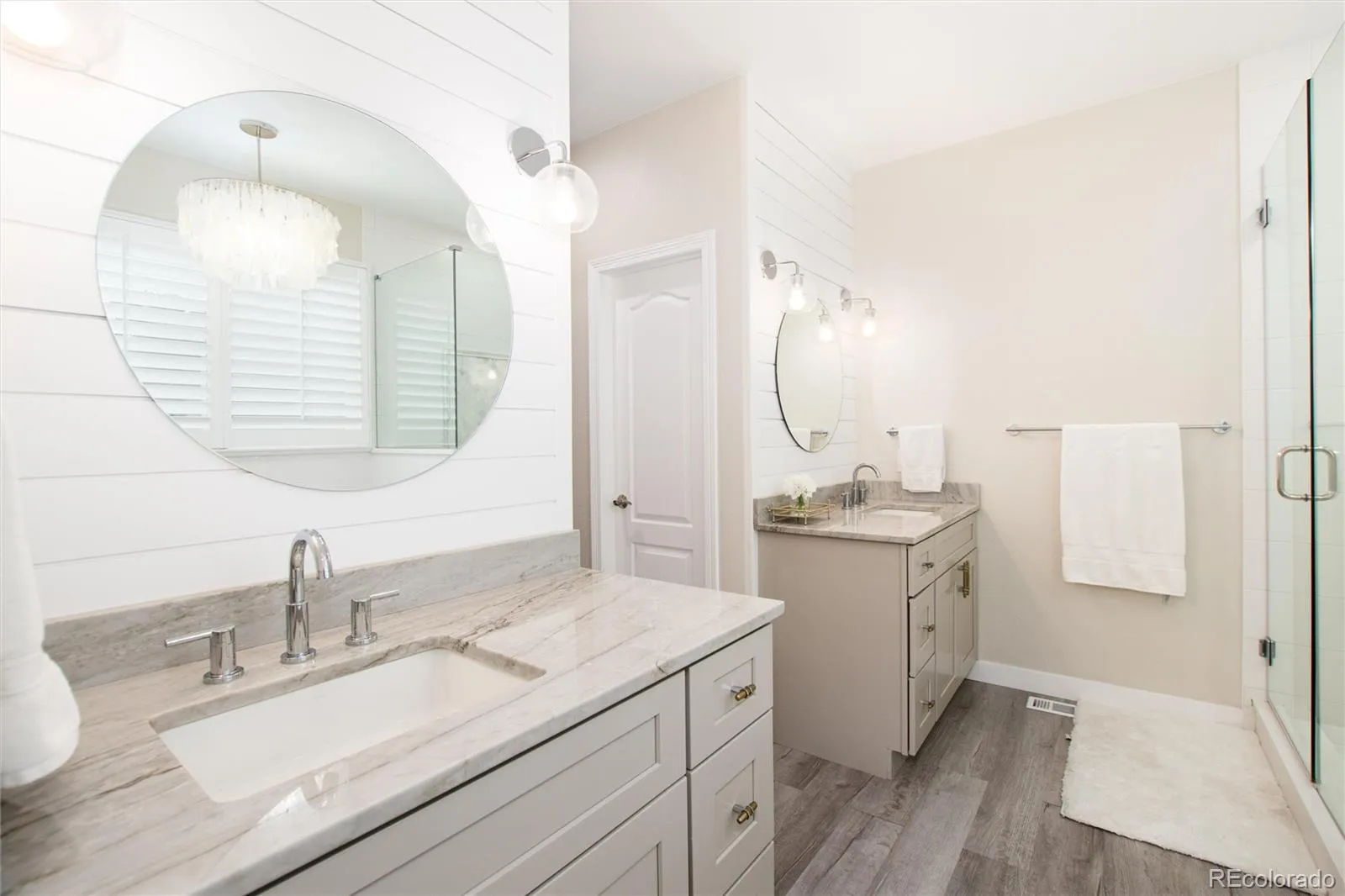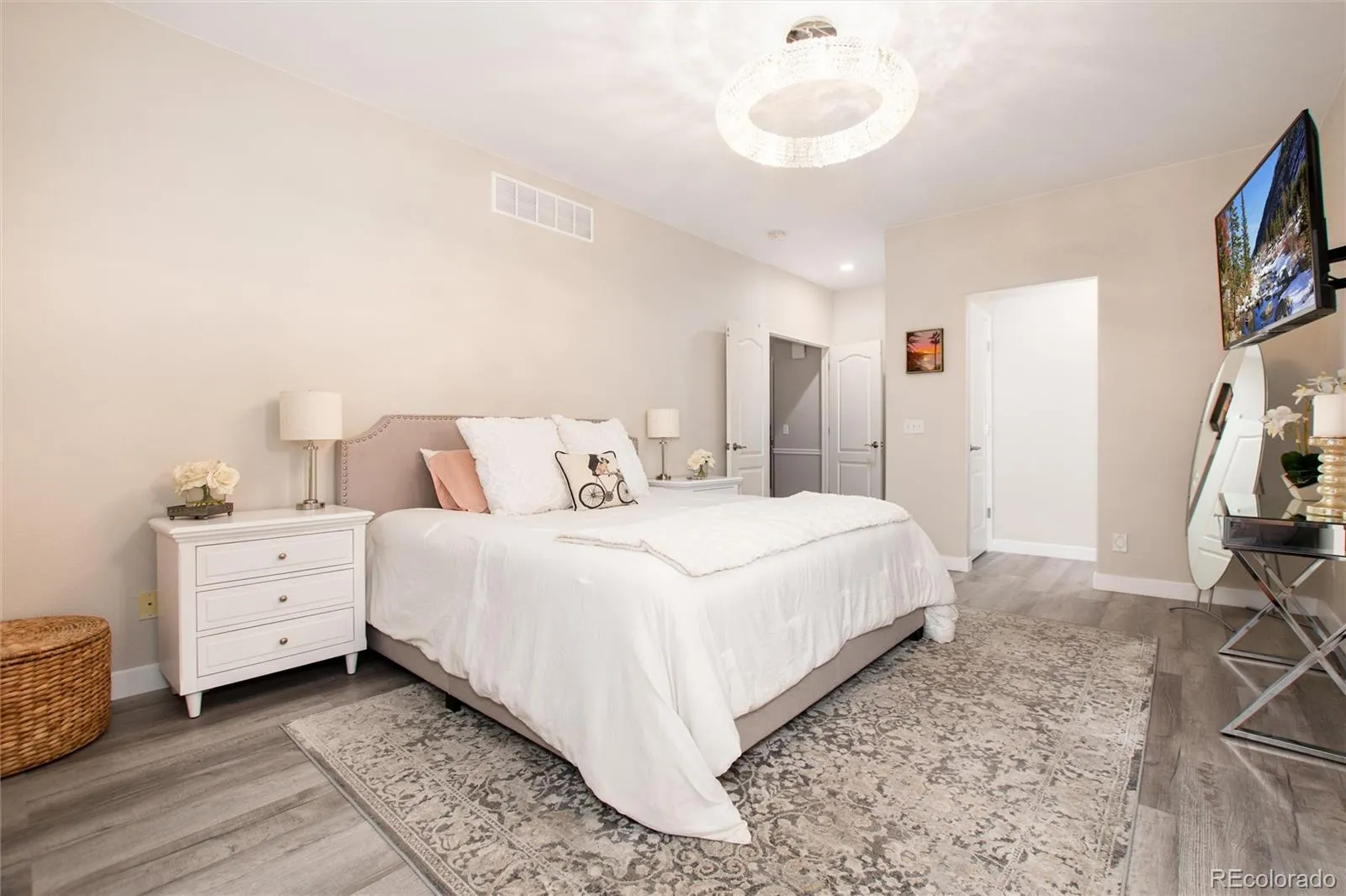 This beautiful home lives like a ranch. Main floor Primary bedroom. This home is offering an ideal blend of style, comfort, and functionality in the highly desired Howarth Farm within The Hamlet at Columbine. Situated on a quiet cul-de-sac, this gorgeous community and charming curb appeal welcome you home. The main floor features a stunning updated primary suite with a large custom walk-in closet, abundant natural light, and a beautifully remodeled five-piece bath. The versatile second bedroom on the main floor is perfect as a home office or workout space, with a convenient three-quarter bath just outside the door. The chef’s kitchen is fully updated with stainless steel appliances, a spacious island, and ample cabinet storage, flowing seamlessly into an inviting family room. The family room boasts a gorgeous brick fireplace, built-ins, vaulted ceilings, and updated lighting, with direct access to the back patio—perfect for entertaining or relaxing. A bright and stylish dining room with updated lighting connects to the living room, creating an open and welcoming space for gatherings. The main-floor laundry room is thoughtfully located for convenience, adding to the functionality of this floor. Upstairs, you’ll find two additional bedrooms separated by a full bath and a spacious loft area that can be used as a playroom, office, or flex space to fit your lifestyle. The partial basement is unfinished and ready for you to make your own, offering lots of extra space and storage. Enjoy the outdoors with a wraparound covered porch, stamped concrete patio, and a tranquil water feature—perfect for entertaining or relaxing in your private backyard. This home offers a seamless combination of elegance, comfort, and versatility in one of Littleton’s most sought-after communities.