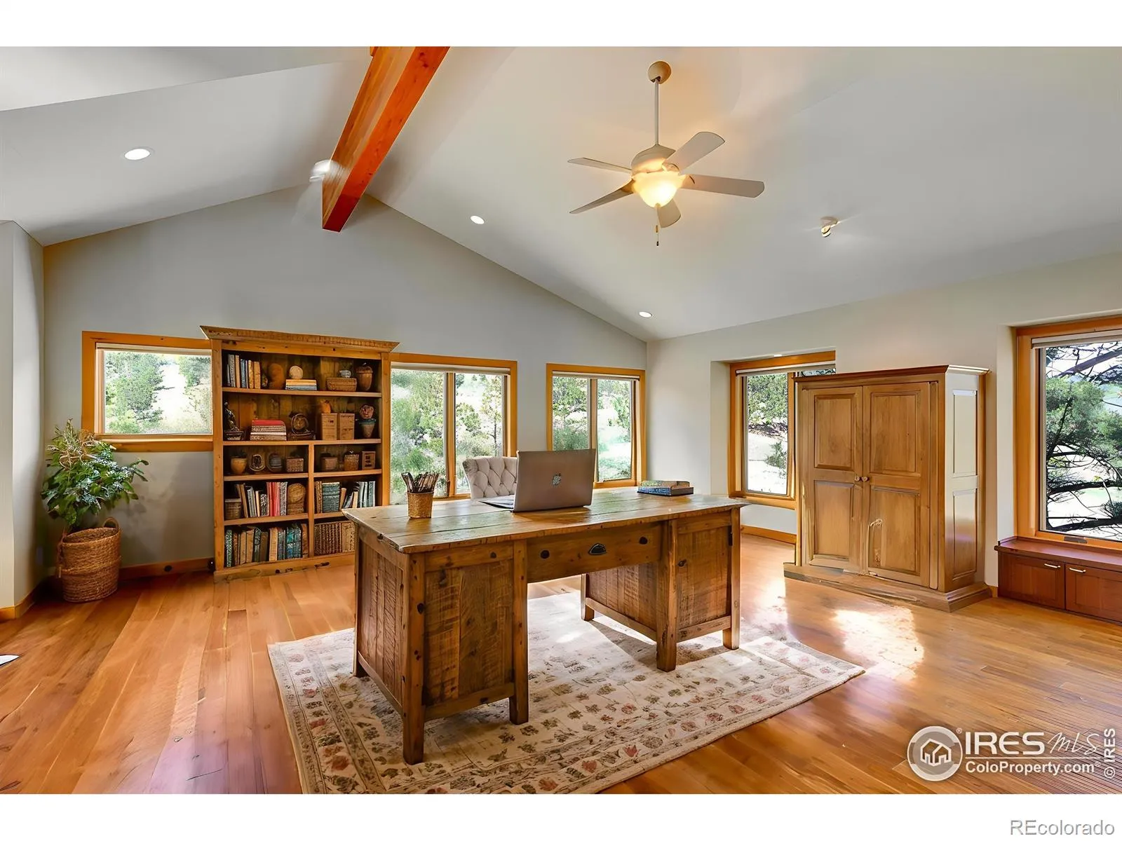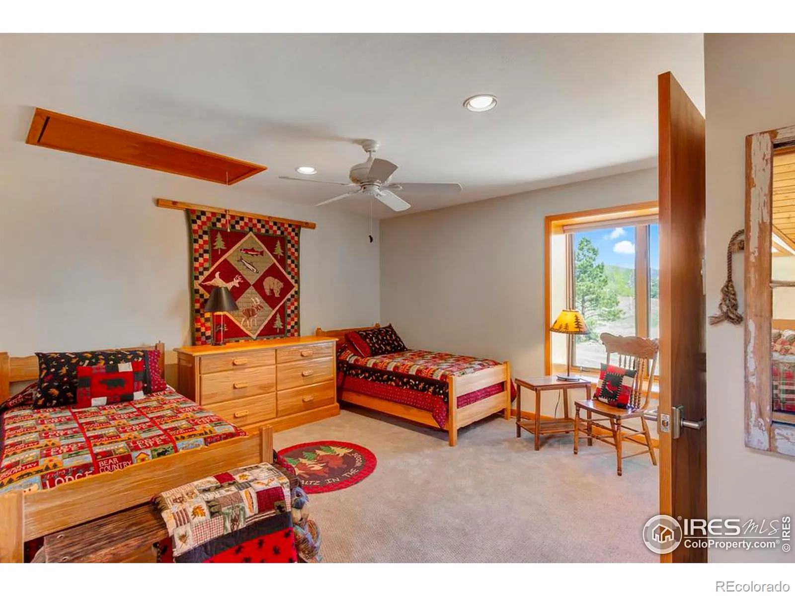 This stunning custom residence was built with a double-wall, envelope-style construction. It offers breathtaking mountain views and a range of luxury features. This is a rare opportunity to own a truly extraordinary property. The chef’s kitchen is complete with a dual-fuel range and oven, a Uline ice maker, and a spacious pantry. The wet bar with wine fridge elevates both daily living and special occasions. A moss rock gas fireplace, tongue and groove ceilings, and skylights warm the open concept living area. The home features multiple loft spaces, offering versatility for use as an art studio, reading nook, or additional workspace. The main level primary suite features a gas fireplace, direct access to the sunroom and south-facing composite deck, and oversized windows. A highlight of the suite is the custom-designed kitchen/coffee bar. The walk-in closet features a built-in organizational system. The adjoining five-piece bathroom is a work of art, featuring marble countertops, a jetted soaking tub, and Grohe fixtures throughout. The home offers two additional bedrooms upstairs. Bedroom 2 features a window seat, a walk-in closet, and a private three-quarter bath. Bedroom 3 also features its own three-quarter bathroom, providing added comfort and convenience. One of the true highlights of this home is the significant recreation or craft room, featuring engineered wood flooring and multiple closets. The main level laundry area is spacious, featuring a dedicated sink, ample counter space, and room for a second fridge. Outdoor spaces are an extension of the home’s charm. The composite deck is perfect for outdoor dining, while the sunroom offers a transitional space that can be enjoyed even on chilly days. The natural gas fire pit makes evening gatherings a pleasure. The passive solar design takes advantage of the Colorado sunshine. You’re just minutes from parks, trails, shopping, and essential services, yet far enough removed to enjoy the peace of nature.