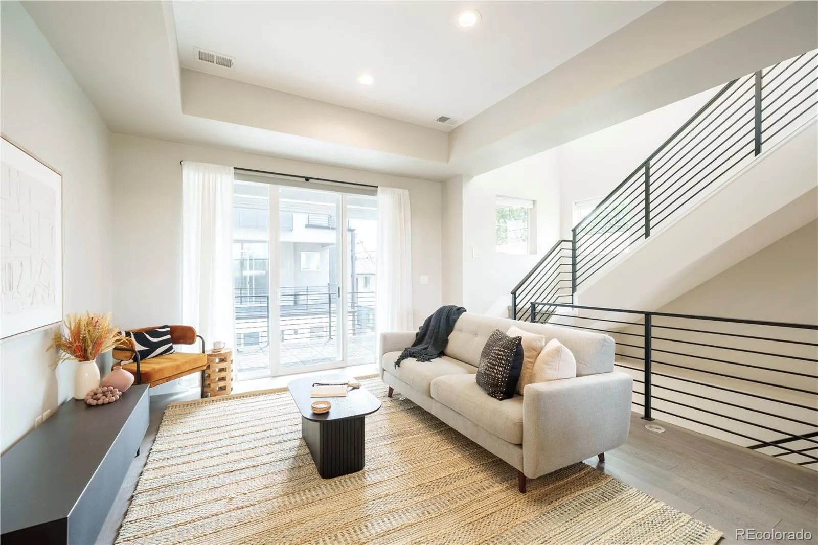 Tucked away literally next to the InterUrban Parkway Trail system connecting you to the Greater Denver Metropolitan area, this wide end unit townhome has expansive views of the mountains to the west, as well as to the north overlooking the park, community garden and the iconic Olde Town Arvada Water Tower. Welcome home to your perfectly situated 3 bed 4 bath home which sits a short bike ride to the best restaurants and entertainment as well as a quick commute to Denver, Lakewood or Golden. Or if you want to stay home and host, this place has it all, from a stone clad sunny patio off of the guest bedroom/office/gym, the covered deck off of the living room kitchen, or hang out and play games out of the oversized garage next to the park. All providing lots of space to entertain. If a chill day is what you are looking for, this place provides. The well appointed primary suite has all the space you would want for a relaxing experience with private balcony, walk in closet, en-suite bathroom and a laundry room. This modern and energy efficient property comes with elevated finishes with appliances from Frigidaire Gallery, bathroom fixtures from Kohler, Carrier HVAC and a Navien tankless water heater. If you travel a lot and want to make use of your property investment, this place allows short term and long term rentals giving you all the options as a homeowner and investor.