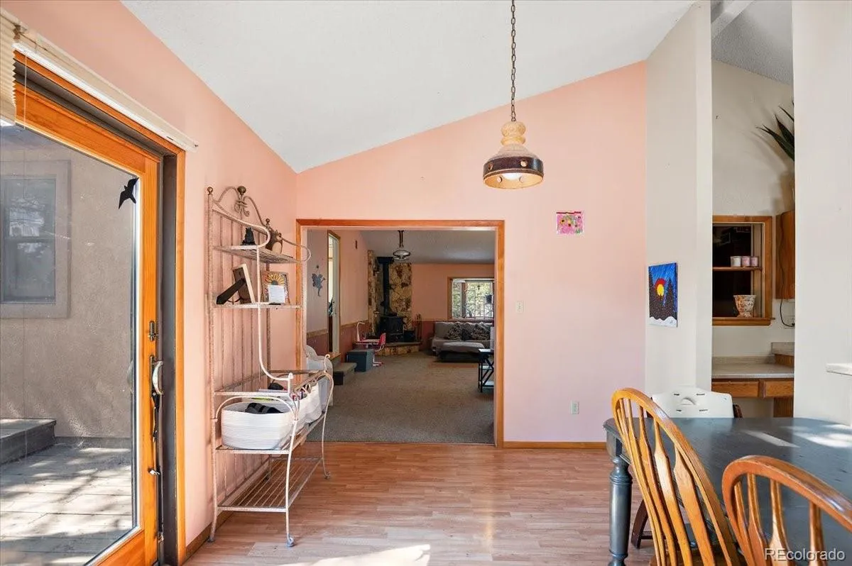 Discover this charming 3-bedroom, 2-bath retreat, perfectly nestled in the forest on nearly 7 private acres. Step inside to a welcoming great room featuring a cozy wood-burning stove and an open floor plan that flows seamlessly into the dining area overlooking the back patio and into the charming kitchen. Just off the kitchen is a bright office space, ideal for working from home.